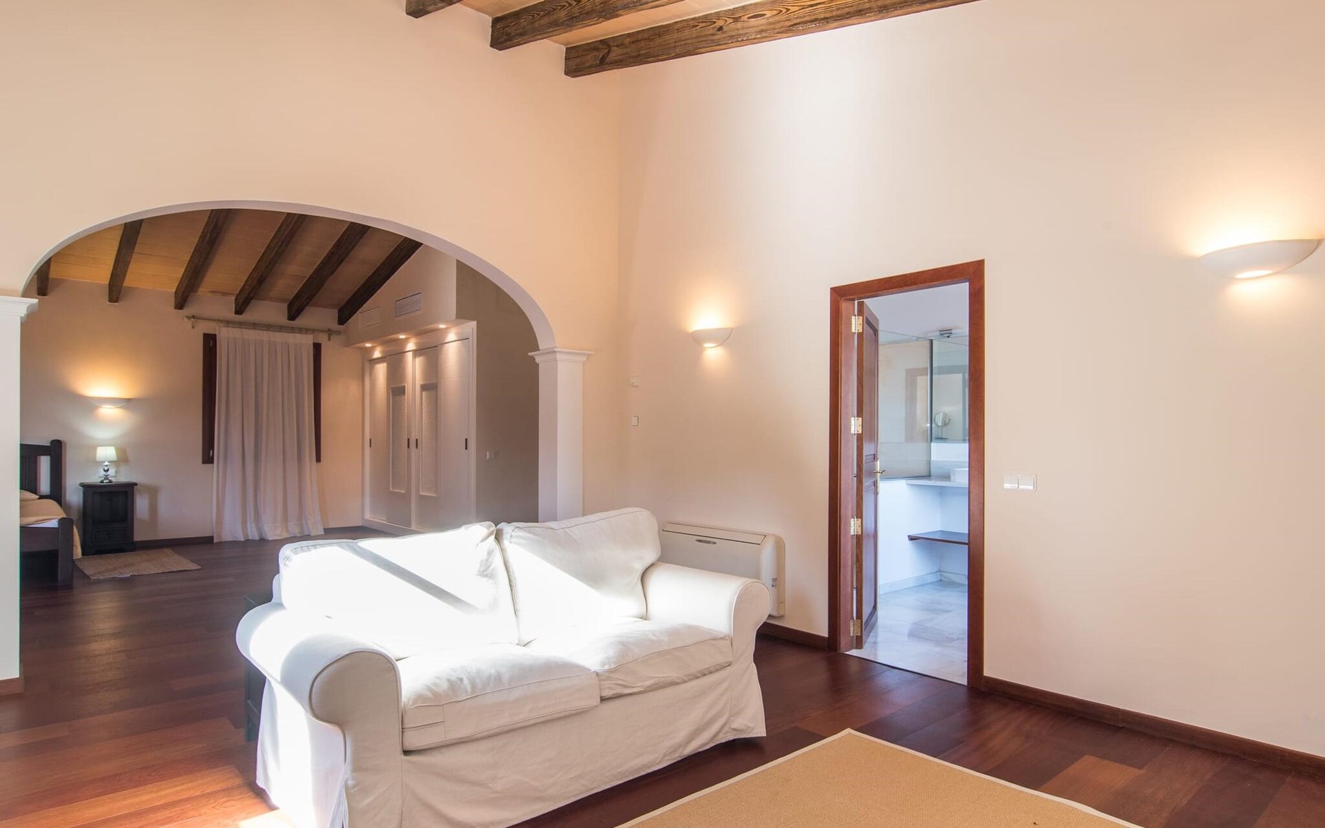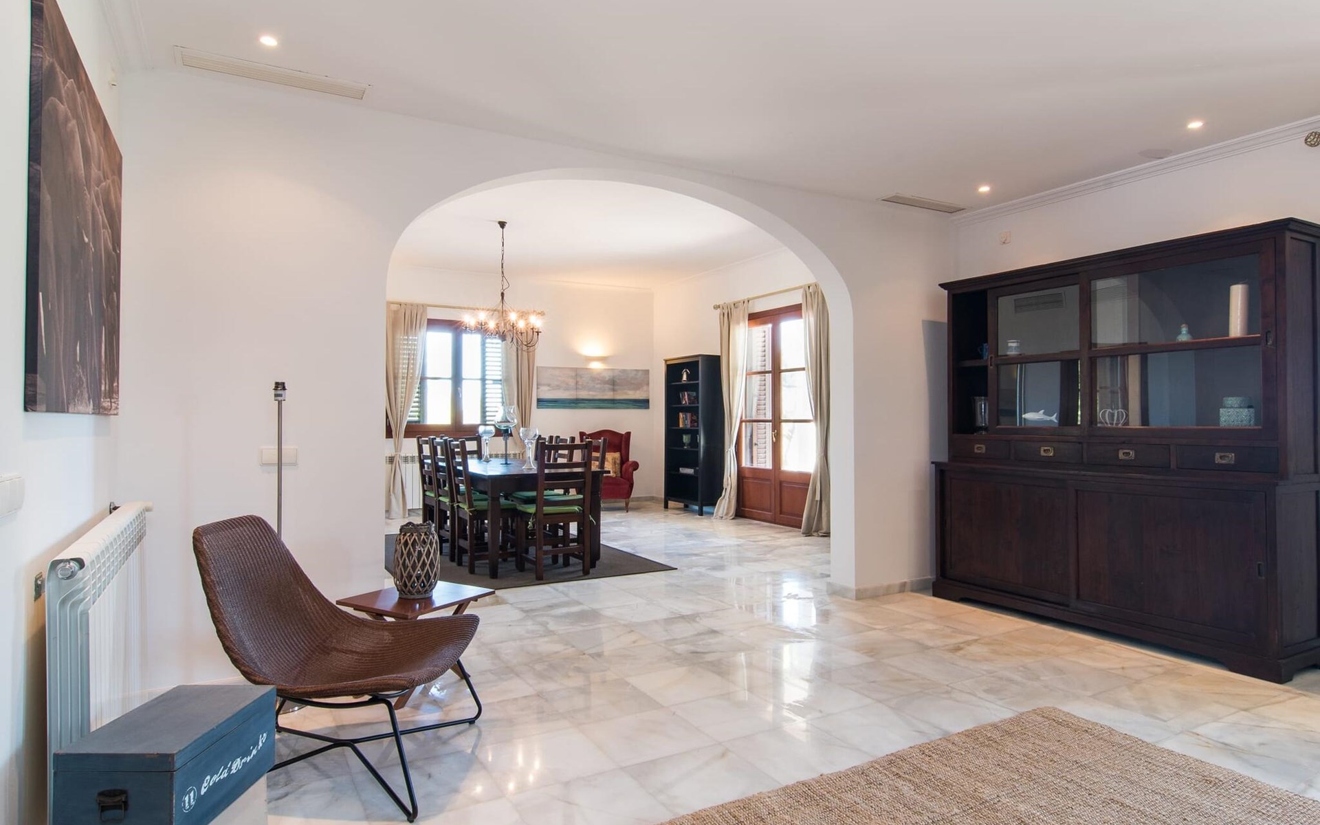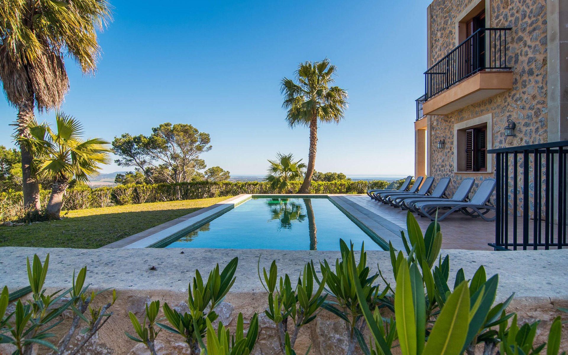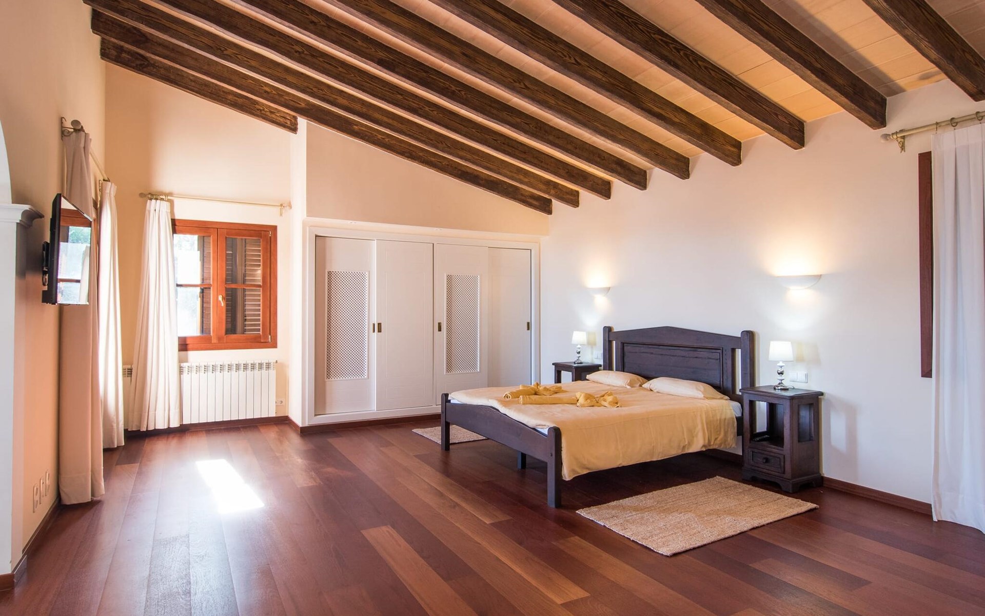 De blootgestelde, afgelegen locatie van de villa garandeert 100% privacy en onvergetelijke momenten in een zeer idyllische regio van Mallorca. Het gebouw in klassieke stijl ligt majestueus op een heuvel, omringd door een maquis van lavendel en bremstruiken, wilde olijfbomen, dennen en Aleppo dennen, rozemarijn en rotsrozen. Het milde mediterrane klimaat met zijn vele dagen zon heeft een landschap gecreëerd dat ongeëvenaard is in zijn schoonheid en gratie. Stedelijke flair kun je ervaren in de op een na grootste stad van Mallorca, Manacor: Bekend om zijn parelindustrie en met zijn historische adellijke huizen, heeft de stad nu zijn nogal industriële imago van zich afgeschud en verrast het bezoekers met smalle steegjes, mooie cafés, restaurants en boetiekjes. Vooral de wekelijkse markt ademt de typische Mallorcaanse levensstijl. De mooiste baaien en stranden aan de oostkust, zoals het adembenemende Cala Romantica, zijn niet ver weg met de auto. Daarnaast biedt de regio talloze wandelpaden, watersportmogelijkheden en talloze attracties - vrijwel alles wat je je maar kunt wensen voor een gevarieerde, uiterst ontspannen vakantie. De prachtige natuurstenen villa Dues ligt op een verhoogde positie in het mediterrane landschap ten zuiden van de stad Manacor. De open, afgelegen locatie garandeert 100% privacy en een weids, onbelemmerd uitzicht op de uitgestrekte, vruchtbare vlakte van Llevant. Er zijn geen directe buren: hier kun je genieten van luxe understatement buiten de gebaande toeristische paden. Je bent in een mum van tijd in de parelstad Manacor, waar je je dagelijkse boodschappen kunt doen of een van de vele restaurants kunt bezoeken.