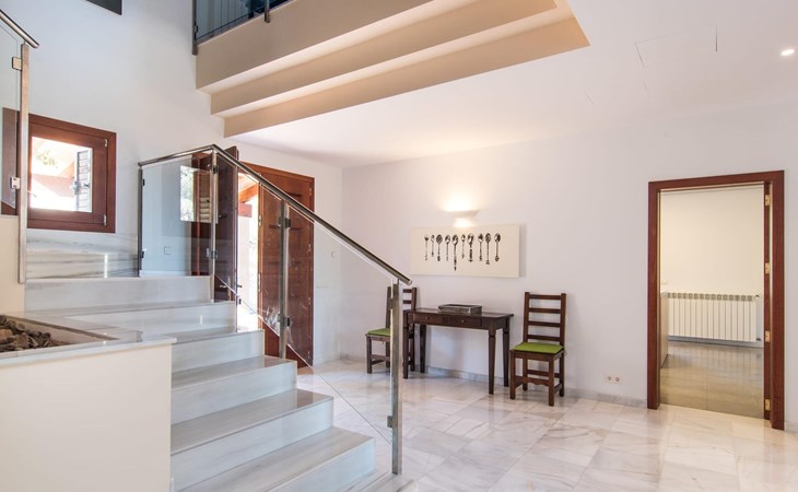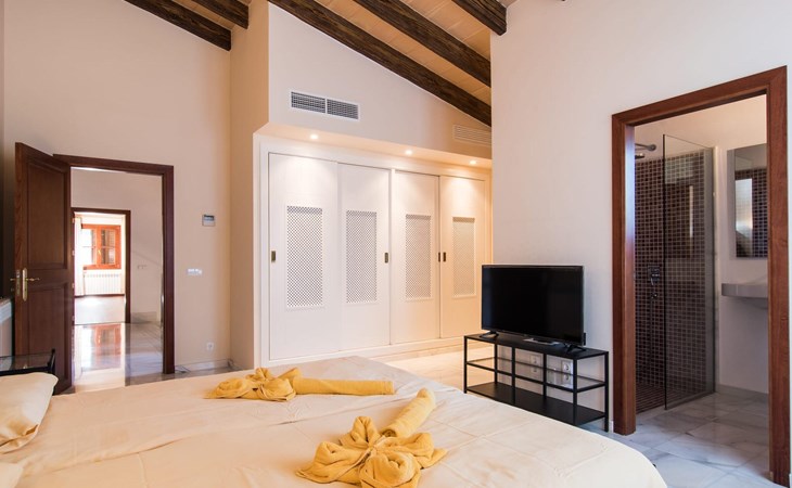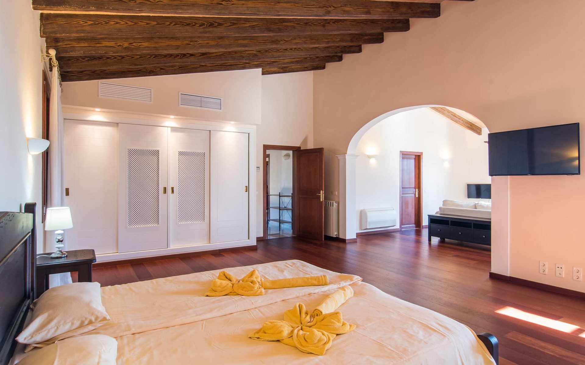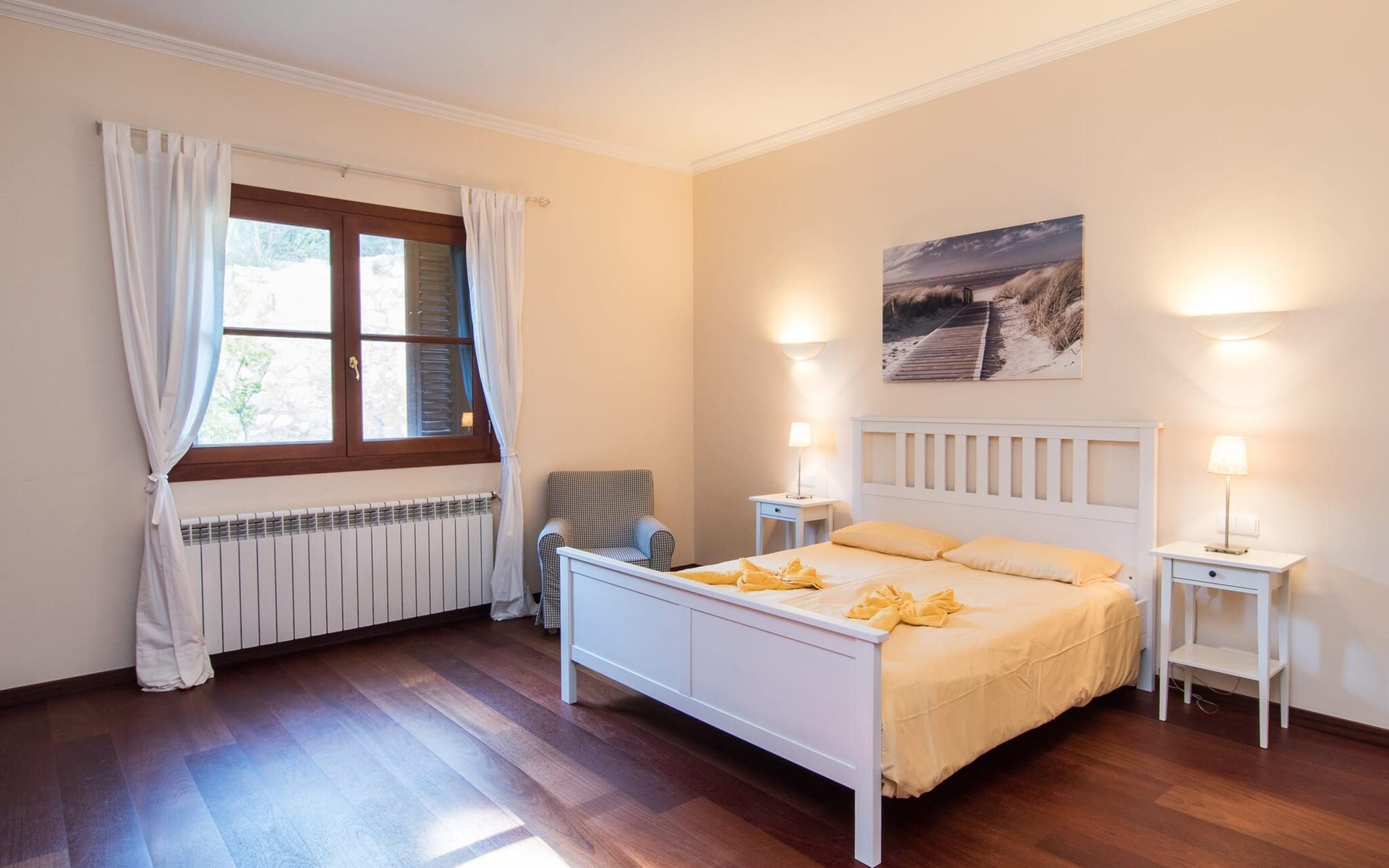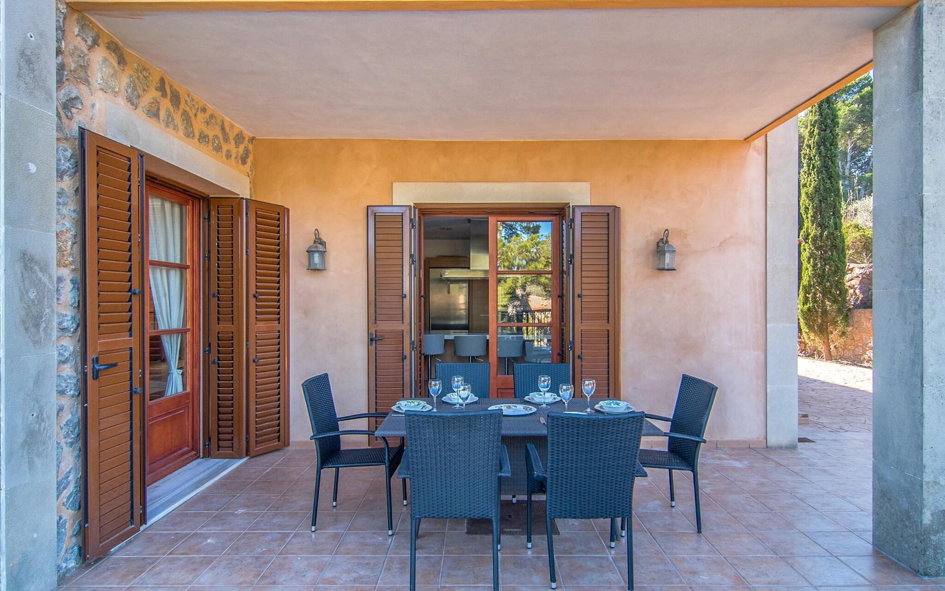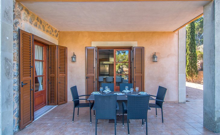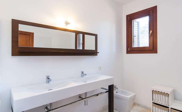 De blootgestelde, afgelegen locatie van de villa garandeert 100% privacy en onvergetelijke momenten in een zeer idyllische regio van Mallorca. Het gebouw in klassieke stijl ligt majestueus op een heuvel, omringd door een maquis van lavendel en bremstruiken, wilde olijfbomen, dennen en Aleppo dennen, rozemarijn en rotsrozen. Het milde mediterrane klimaat met zijn vele dagen zon heeft een landschap gecreëerd dat ongeëvenaard is in zijn schoonheid en gratie. Stedelijke flair kun je ervaren in de op een na grootste stad van Mallorca, Manacor: Bekend om zijn parelindustrie en met zijn historische adellijke huizen, heeft de stad nu zijn nogal industriële imago van zich afgeschud en verrast het bezoekers met smalle steegjes, mooie cafés, restaurants en boetiekjes. Vooral de wekelijkse markt ademt de typische Mallorcaanse levensstijl. De mooiste baaien en stranden aan de oostkust, zoals het adembenemende Cala Romantica, zijn niet ver weg met de auto. Daarnaast biedt de regio talloze wandelpaden, watersportmogelijkheden en talloze attracties - vrijwel alles wat je je maar kunt wensen voor een gevarieerde, uiterst ontspannen vakantie. De prachtige natuurstenen villa Dues ligt op een verhoogde positie in het mediterrane landschap ten zuiden van de stad Manacor. De open, afgelegen locatie garandeert 100% privacy en een weids, onbelemmerd uitzicht op de uitgestrekte, vruchtbare vlakte van Llevant. Er zijn geen directe buren: hier kun je genieten van luxe understatement buiten de gebaande toeristische paden. Je bent in een mum van tijd in de parelstad Manacor, waar je je dagelijkse boodschappen kunt doen of een van de vele restaurants kunt bezoeken.
