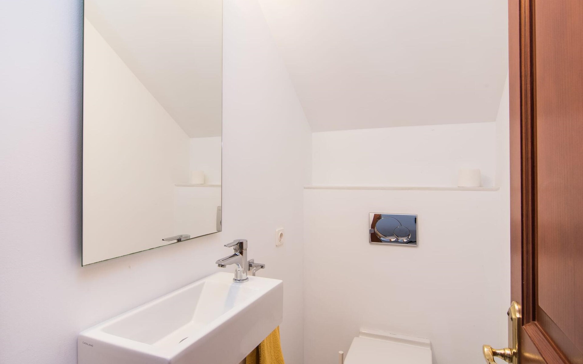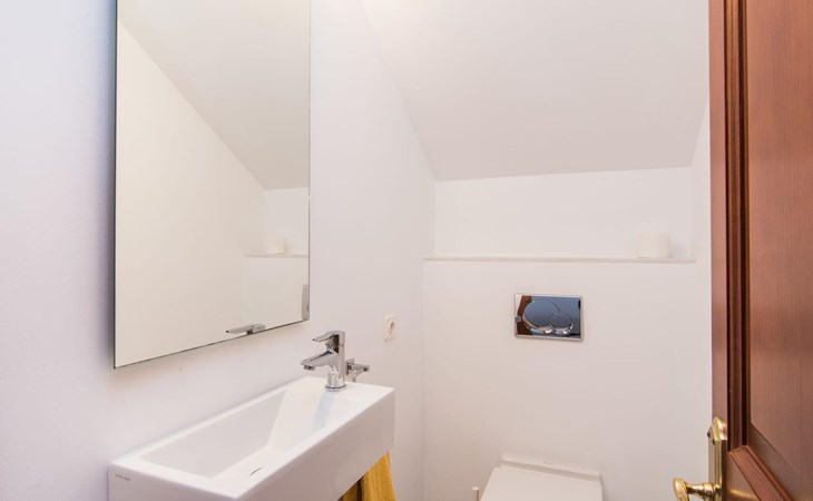 De 430 m² woonruimte is verdeeld over twee verdiepingen. Op de begane grond vind je de lichte woonkamer in lichte kleuren, een keuken, een gastentoilet en een slaapkamer met badkamer. Een eetkamer grenst aan de stijlvol ingerichte woonkamer met een hoekhaard en een groot bankstel. Vanaf hier heb je direct toegang tot de ultramoderne keuken met kookeiland, oven, magnetron en grote koelkast. Alle kamers hebben directe toegang tot de tuin. De moderne tweepersoonsslaapkamer heeft een eigen en-suite badkamer met een grote wastafel, boordevol natuurlijk licht. Boven vind je nog drie ruime slaapkamers, elk geschikt voor twee personen. Elke kamer is ingericht in warme kleuren, heeft een tweepersoonsbed en een eigen badkamer met een bad of inloopdouche. Houd je van koel 's nachts? Geen probleem, want je vakantiehuis is volledig voorzien van airconditioning; je kunt gewoon de gewenste omgevingstemperatuur in elke kamer instellen.