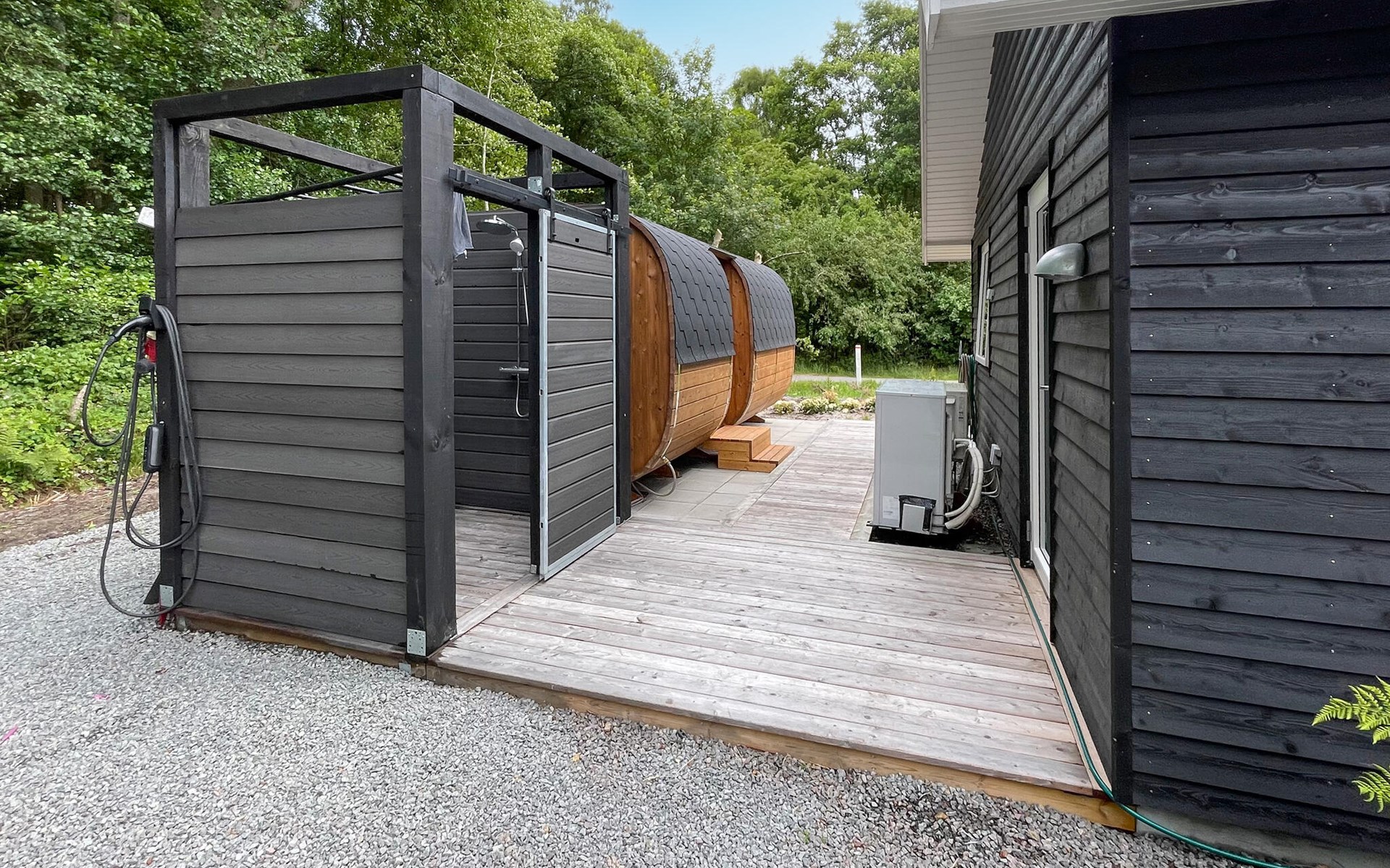 Het huis verwelkomt u op een ideale locatie voor een heerlijke vakantie aan zee met veel tijd op het nabijgelegen strand en het verkennen van het eiland, en als u van golf houdt, zijn er hier ook goede mogelijkheden. De kamers krijgen hun gezellige charme door de vele houten elementen, comfortabele meubels en een huiselijk modern interieur dat het gemakkelijk maakt om te ontspannen. De lichte woonruimte wordt al snel het centrum van gemeenschappelijke activiteiten, spelen, koken en ontspannen samen hier, grote ramen bieden een prachtig uitzicht op het bos.