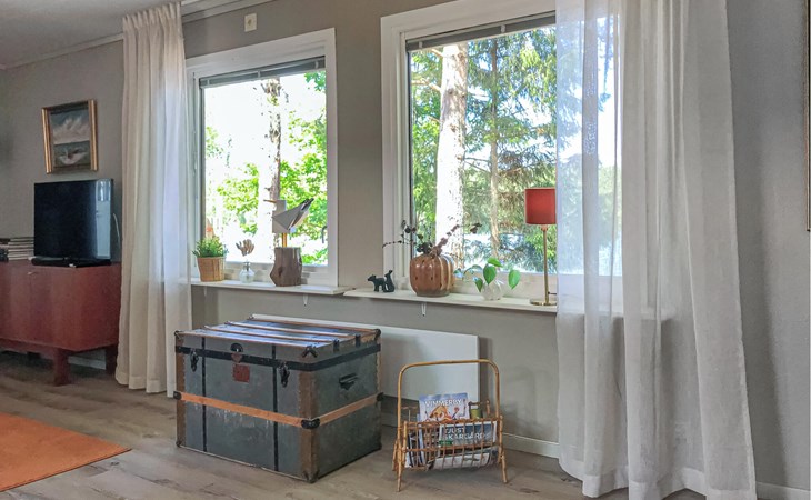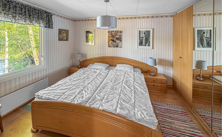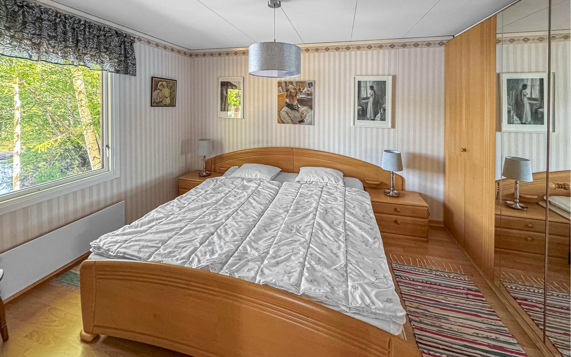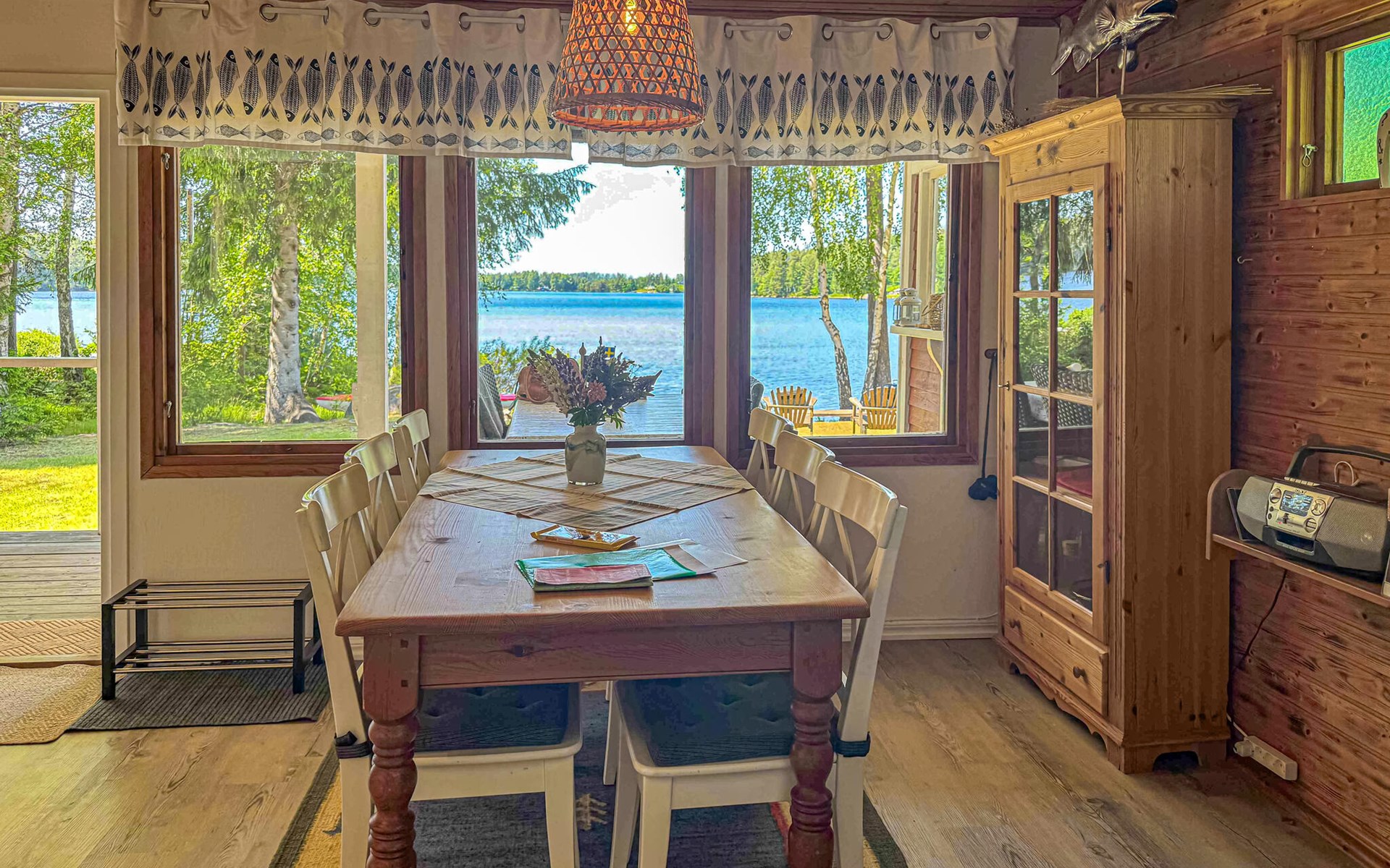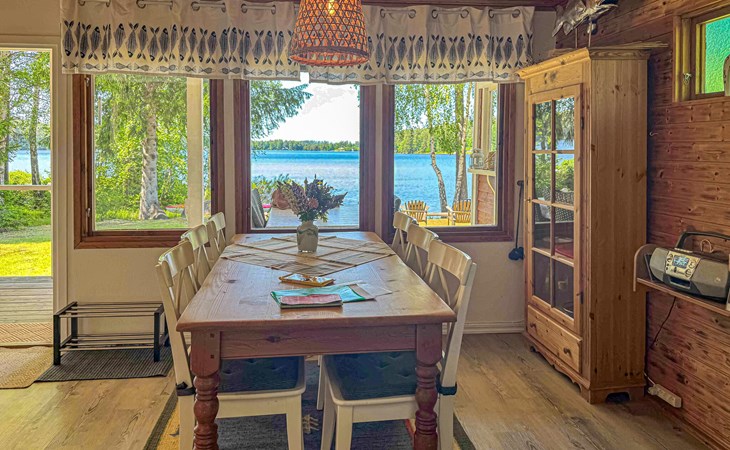 Je vakantiehuis heeft een fantastische ligging direct aan het meer en beschikt over een eigen aanlegsteiger, privéstrand en natuurterrein. Hier heb je totaal geen last van buren. De accommodatie heeft een gezellige, open keuken met veel daglicht. Als het 's avonds koud wordt, zorgt de open haard voor warmte en gezelligheid. Gebruik de ruime woonkamer voor familieactiviteiten en ontspan in de eigen sauna.