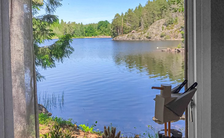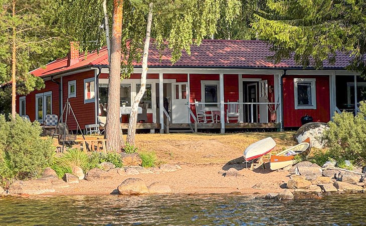 Kijk uit naar dit unieke vakantiehuis aan een meer in Småland.