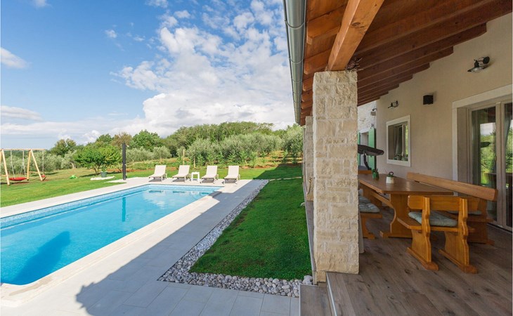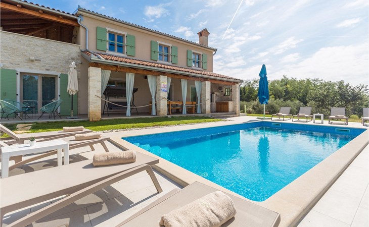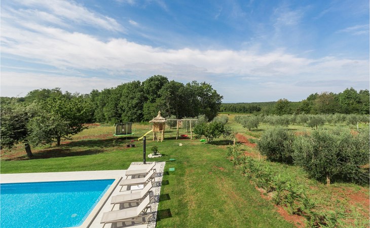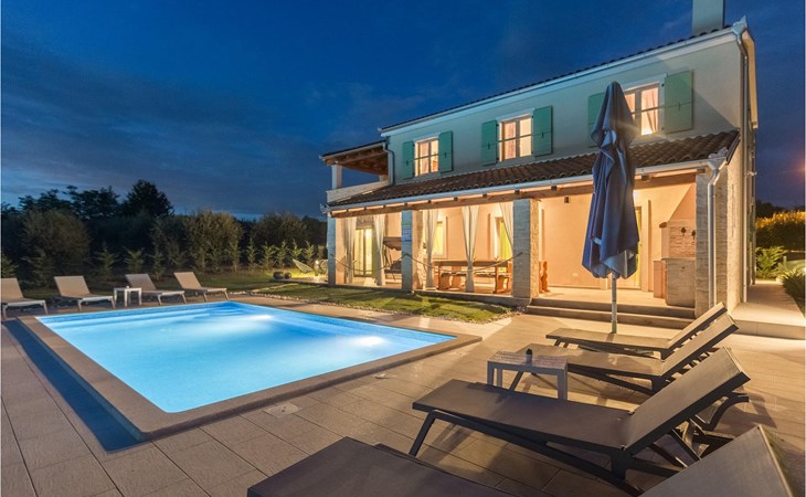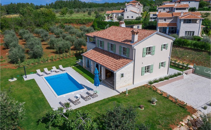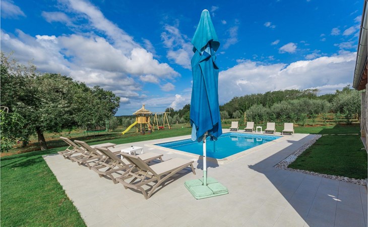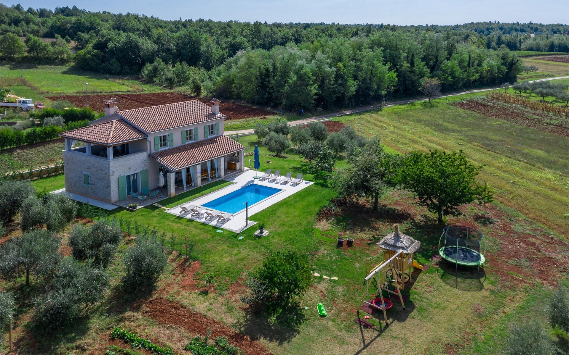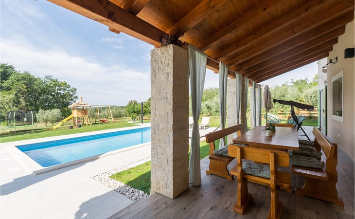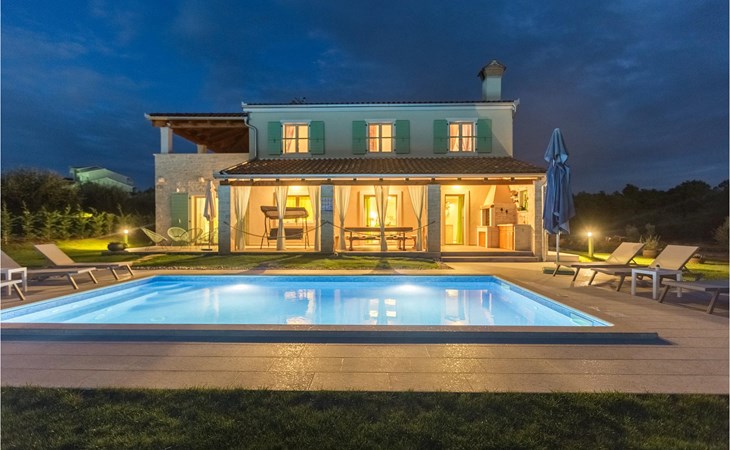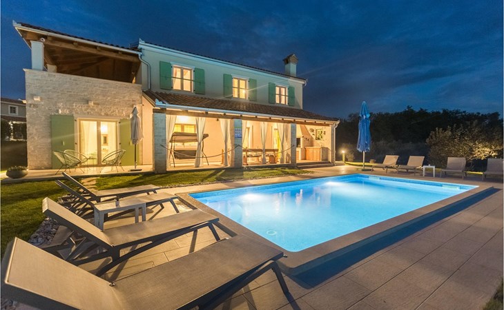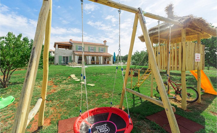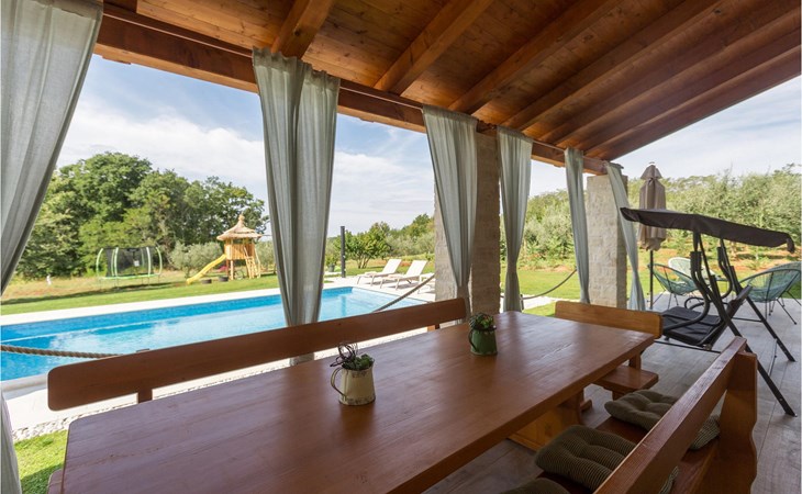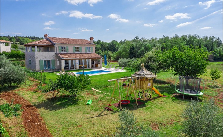 Ben je op zoek naar een gezellige villa op het schiereiland Istrië met genoeg ruimte voor maximaal 8 personen? Dan moet je zeker Villa Stella Polaris overwegen voor je komende vakantie. Als je de villa nadert, zul je de prachtige, ongerepte omgeving opmerken - perfect voor een ontspannen tijd weg van de drukte van de stad. Er is ook een olijfgaard op het terrein, wat de villa een typisch mediterrane flair geeft. Binnen in de villa heet de warm ingerichte begane grond je welkom in je vakantiehuis. De open ruimte, waaronder de keuken, eetkamer en woonkamer, met zijn liefdevol doordachte decoratie zal je liefde voor detail wekken. De volledig uitgeruste keuken is ontworpen in een moderne landhuisstijl en past bij de eethoek. In de woonkamer kun je het jezelf gemakkelijk maken op de bank en naar muziek luisteren of de tv aanzetten. Er is ook een open haard voor de koudere dagen. Naast het bovenstaande is er op de begane grond een slaapkamer met een eigen badkamer. Op de bovenverdieping is een slaapkamer in rustieke stijl. Deze heeft niet alleen een eigen badkamer, maar ook een ruim balkon met een zitje en een prachtig uitzicht. Twee andere slaapkamers met scheidbare tweepersoonsbedden delen een badkamer. Alle badkamers in de villa hebben een inloop regendouche. Op het terras kun je plaatsnemen op de romantische tuinschommel, in de loungehoek of in de eethoek buiten - dit laatste vooral als je liever in de frisse lucht eet. Je kunt je lekkernijen ook op het terras bereiden dankzij de zomerkeuken met stenen barbecue. Om optimaal te genieten, kun je gaan liggen op de ligstoelen naast het verfrissende zwembad en genieten van wat warme zonnestralen. De tuin heeft ook iets voor de kleintjes - hun eigen speeltuin en een trampoline. Beleef een ontspannen vakantie vol onvergetelijke momenten en boek nu Villa Stella PolarisIn het westelijke deel van Istrië, vlakbij Porec, ligt het kleine dorpje Visnjan. Wandel door de geplaveide straten van de oude stad en bewonder het historische erfgoed. Aarzel niet om de plaatselijke bevolking om een korte les over de geschiedenis van Visnjan te vragen - ze zullen je graag legendes over hun dorp vertellen. Terwijl je door het oude stadscentrum slentert of de streek rond Visnjan verkent, kom je traditionele herbergen tegen waar je Istrische delicatessen en kwaliteitswijnen kunt proeven. Sommige vallen onder de categorie agrotoerisme, wat betekent dat ze alleen hun eigen boerderijproducten aanbieden - daar eten is echt een bijzondere ervaring. Vergeet niet het beroemde observatorium te bezoeken. Laat je inspireren door gewoon naar de hemel te kijken en te genieten. Niet ver van Visnjan kun je ook de Baredine grot en de Zarecki krov waterval bezoeken - je zult versteld staan van het uitzicht. En mis natuurlijk niet de gelegenheid om twee van de populairste plaatsen aan de kust van Istrië te bezoeken - Porec en Novigrad. Daar kunt u genieten van een mooie, ontspannen dag aan het strand of een gezellige avond in de stadscentra.