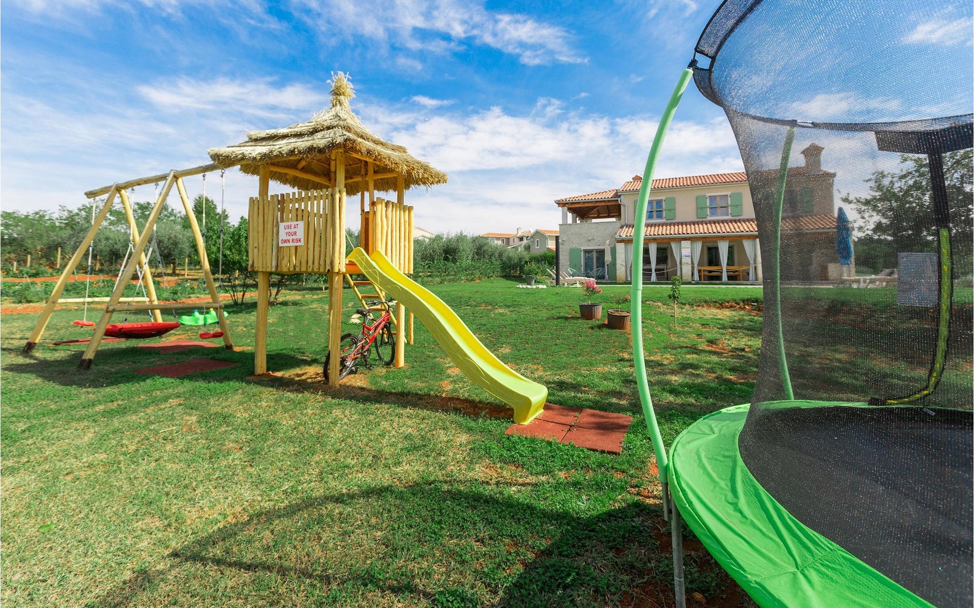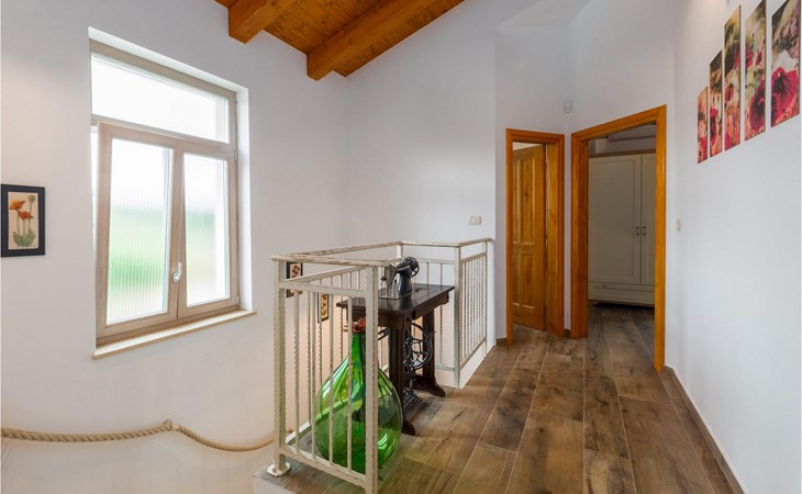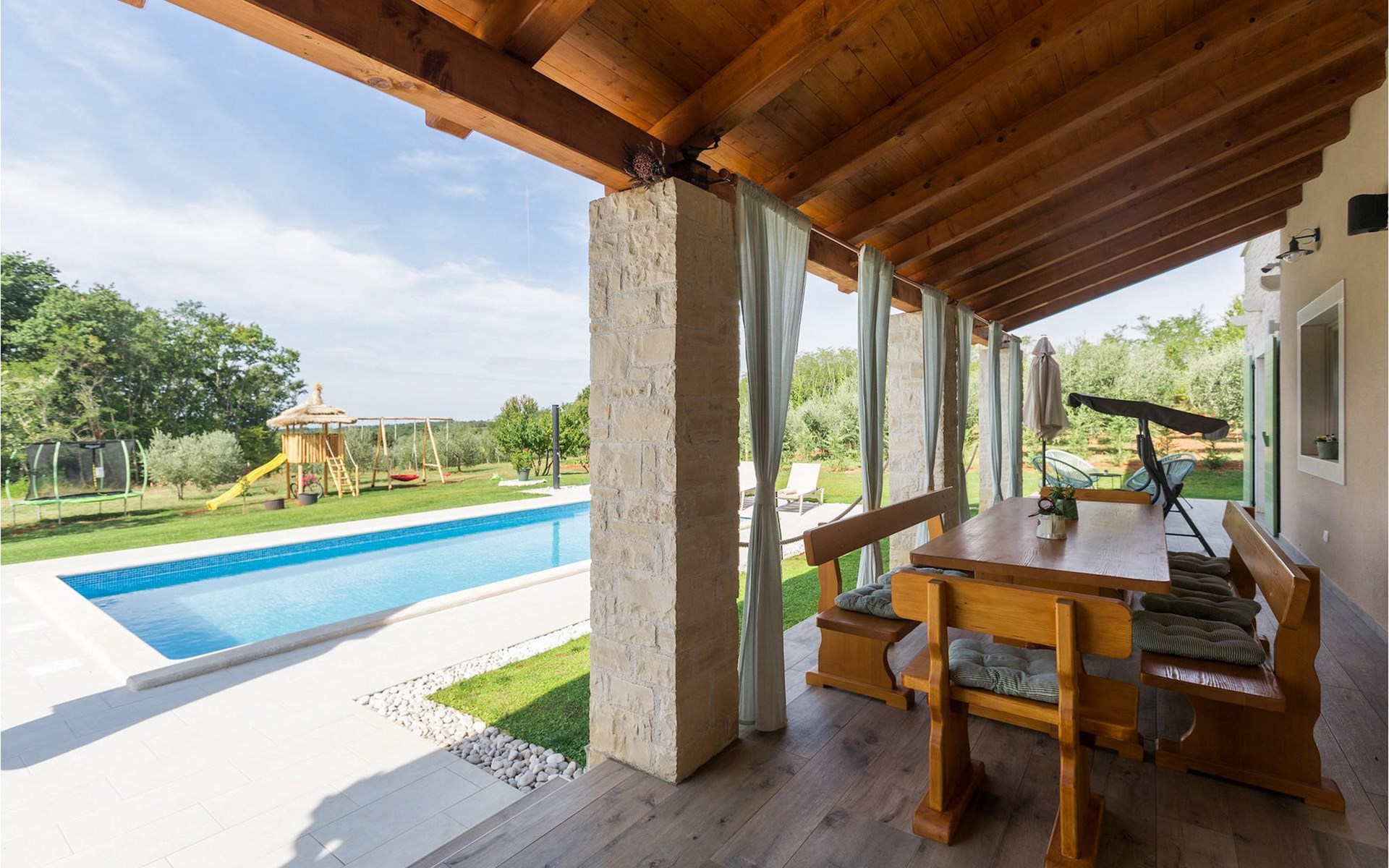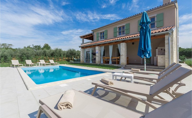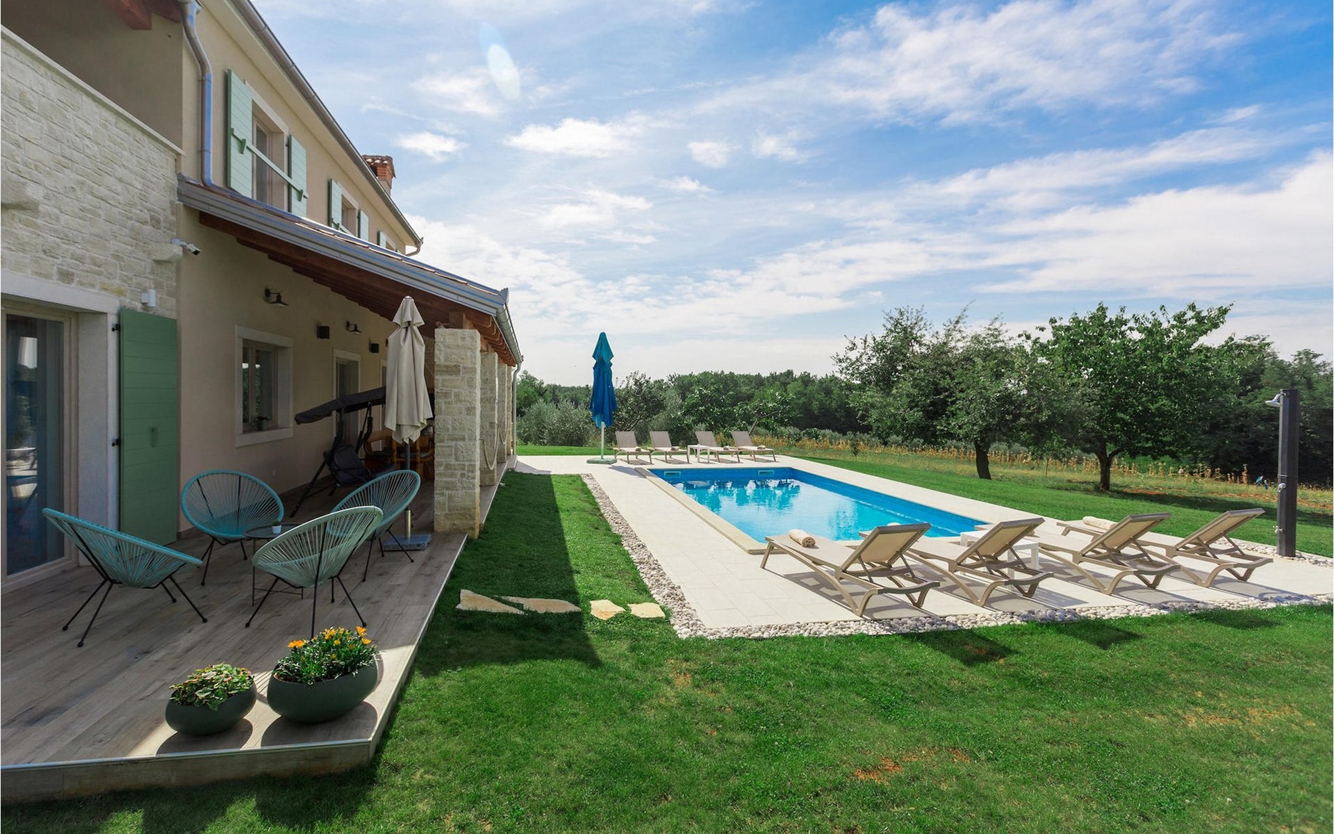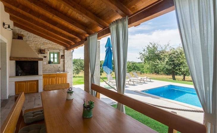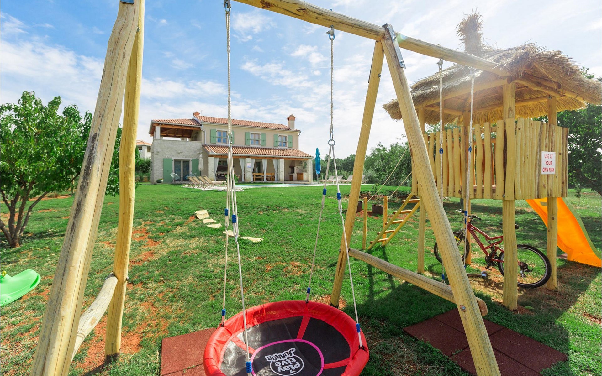 Ben je op zoek naar een gezellige villa op het schiereiland Istrië met genoeg ruimte voor maximaal 8 personen? Dan moet je zeker Villa Stella Polaris overwegen voor je komende vakantie. Als je de villa nadert, zul je de prachtige, ongerepte omgeving opmerken - perfect voor een ontspannen tijd weg van de drukte van de stad. Er is ook een olijfgaard op het terrein, wat de villa een typisch mediterrane flair geeft. Binnen in de villa heet de warm ingerichte begane grond je welkom in je vakantiehuis. De open ruimte, waaronder de keuken, eetkamer en woonkamer, met zijn liefdevol doordachte decoratie zal je liefde voor detail wekken. De volledig uitgeruste keuken is ontworpen in een moderne landhuisstijl en past bij de eethoek. In de woonkamer kun je het jezelf gemakkelijk maken op de bank en naar muziek luisteren of de tv aanzetten. Er is ook een open haard voor de koudere dagen. Naast het bovenstaande is er op de begane grond een slaapkamer met een eigen badkamer. Op de bovenverdieping is een slaapkamer in rustieke stijl. Deze heeft niet alleen een eigen badkamer, maar ook een ruim balkon met een zitje en een prachtig uitzicht. Twee andere slaapkamers met scheidbare tweepersoonsbedden delen een badkamer. Alle badkamers in de villa hebben een inloop regendouche. Op het terras kun je plaatsnemen op de romantische tuinschommel, in de loungehoek of in de eethoek buiten - dit laatste vooral als je liever in de frisse lucht eet. Je kunt je lekkernijen ook op het terras bereiden dankzij de zomerkeuken met stenen barbecue. Om optimaal te genieten, kun je gaan liggen op de ligstoelen naast het verfrissende zwembad en genieten van wat warme zonnestralen. De tuin heeft ook iets voor de kleintjes - hun eigen speeltuin en een trampoline. Beleef een ontspannen vakantie vol onvergetelijke momenten en boek nu Villa Stella PolarisIn het westelijke deel van Istrië, vlakbij Porec, ligt het kleine dorpje Visnjan. Wandel door de geplaveide straten van de oude stad en bewonder het historische erfgoed. Aarzel niet om de plaatselijke bevolking om een korte les over de geschiedenis van Visnjan te vragen - ze zullen je graag legendes over hun dorp vertellen. Terwijl je door het oude stadscentrum slentert of de streek rond Visnjan verkent, kom je traditionele herbergen tegen waar je Istrische delicatessen en kwaliteitswijnen kunt proeven. Sommige vallen onder de categorie agrotoerisme, wat betekent dat ze alleen hun eigen boerderijproducten aanbieden - daar eten is echt een bijzondere ervaring. Vergeet niet het beroemde observatorium te bezoeken. Laat je inspireren door gewoon naar de hemel te kijken en te genieten. Niet ver van Visnjan kun je ook de Baredine grot en de Zarecki krov waterval bezoeken - je zult versteld staan van het uitzicht. En mis natuurlijk niet de gelegenheid om twee van de populairste plaatsen aan de kust van Istrië te bezoeken - Porec en Novigrad. Daar kunt u genieten van een mooie, ontspannen dag aan het strand of een gezellige avond in de stadscentra.