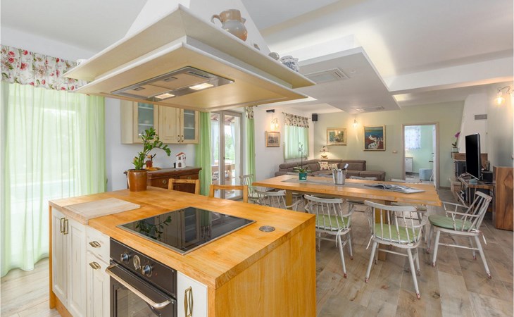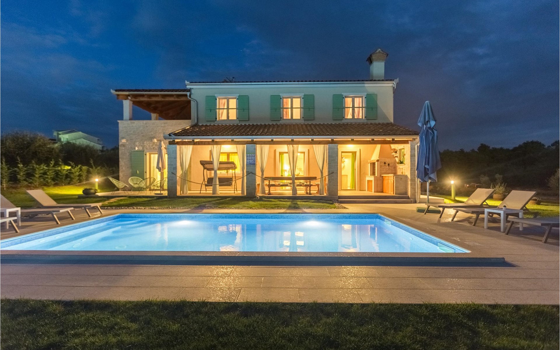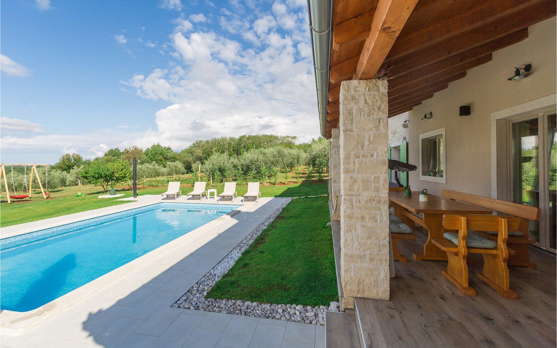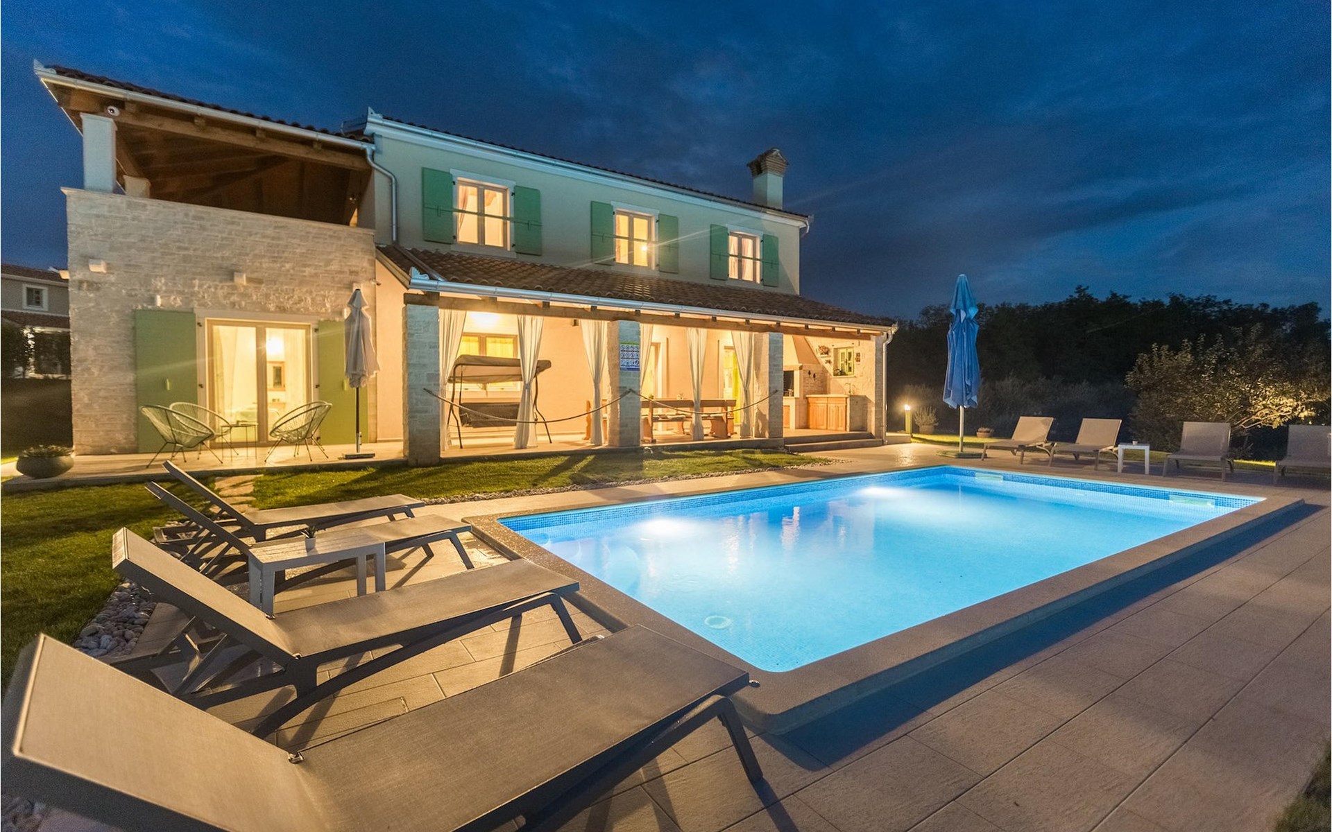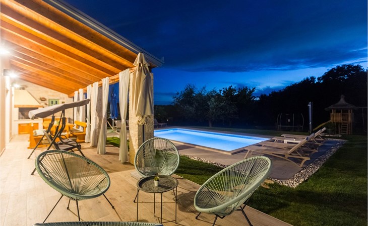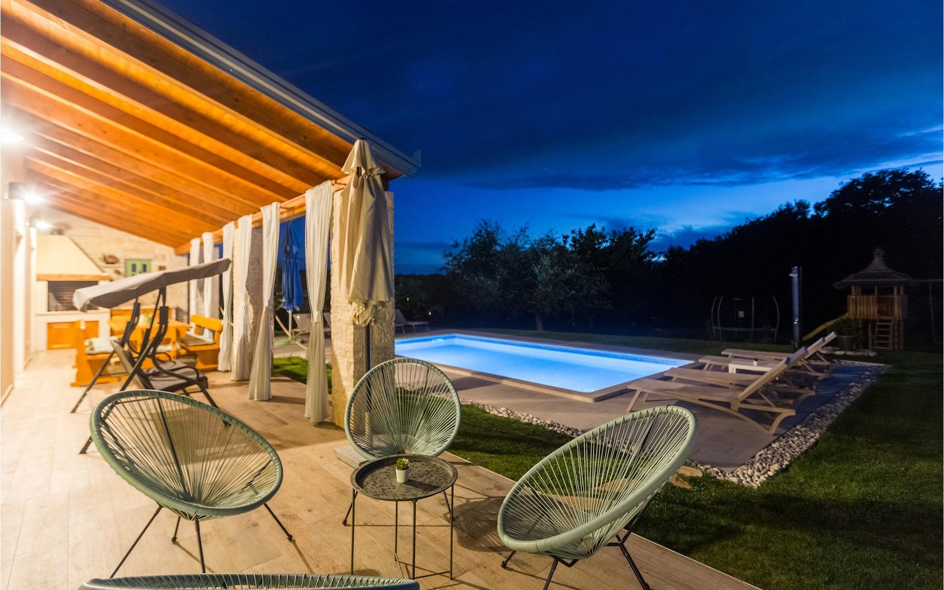 Ben je op zoek naar een gezellige villa op het schiereiland Istrië met genoeg ruimte voor maximaal 8 personen? Dan moet je zeker Villa Stella Polaris overwegen voor je komende vakantie. Als je de villa nadert, zul je de prachtige, ongerepte omgeving opmerken - perfect voor een ontspannen tijd weg van de drukte van de stad. Er is ook een olijfgaard op het terrein, wat de villa een typisch mediterrane flair geeft. Binnen in de villa heet de warm ingerichte begane grond je welkom in je vakantiehuis. De open ruimte, waaronder de keuken, eetkamer en woonkamer, met zijn liefdevol doordachte decoratie zal je liefde voor detail wekken. De volledig uitgeruste keuken is ontworpen in een moderne landhuisstijl en past bij de eethoek. In de woonkamer kun je het jezelf gemakkelijk maken op de bank en naar muziek luisteren of de tv aanzetten. Er is ook een open haard voor de koudere dagen. Naast het bovenstaande is er op de begane grond een slaapkamer met een eigen badkamer. Op de bovenverdieping is een slaapkamer in rustieke stijl. Deze heeft niet alleen een eigen badkamer, maar ook een ruim balkon met een zitje en een prachtig uitzicht. Twee andere slaapkamers met scheidbare tweepersoonsbedden delen een badkamer. Alle badkamers in de villa hebben een inloop regendouche. Op het terras kun je plaatsnemen op de romantische tuinschommel, in de loungehoek of in de eethoek buiten - dit laatste vooral als je liever in de frisse lucht eet. Je kunt je lekkernijen ook op het terras bereiden dankzij de zomerkeuken met stenen barbecue. Om optimaal te genieten, kun je gaan liggen op de ligstoelen naast het verfrissende zwembad en genieten van wat warme zonnestralen. De tuin heeft ook iets voor de kleintjes - hun eigen speeltuin en een trampoline. Beleef een ontspannen vakantie vol onvergetelijke momenten en boek nu Villa Stella PolarisIn het westelijke deel van Istrië, vlakbij Porec, ligt het kleine dorpje Visnjan. Wandel door de geplaveide straten van de oude stad en bewonder het historische erfgoed. Aarzel niet om de plaatselijke bevolking om een korte les over de geschiedenis van Visnjan te vragen - ze zullen je graag legendes over hun dorp vertellen. Terwijl je door het oude stadscentrum slentert of de streek rond Visnjan verkent, kom je traditionele herbergen tegen waar je Istrische delicatessen en kwaliteitswijnen kunt proeven. Sommige vallen onder de categorie agrotoerisme, wat betekent dat ze alleen hun eigen boerderijproducten aanbieden - daar eten is echt een bijzondere ervaring. Vergeet niet het beroemde observatorium te bezoeken. Laat je inspireren door gewoon naar de hemel te kijken en te genieten. Niet ver van Visnjan kun je ook de Baredine grot en de Zarecki krov waterval bezoeken - je zult versteld staan van het uitzicht. En mis natuurlijk niet de gelegenheid om twee van de populairste plaatsen aan de kust van Istrië te bezoeken - Porec en Novigrad. Daar kunt u genieten van een mooie, ontspannen dag aan het strand of een gezellige avond in de stadscentra.