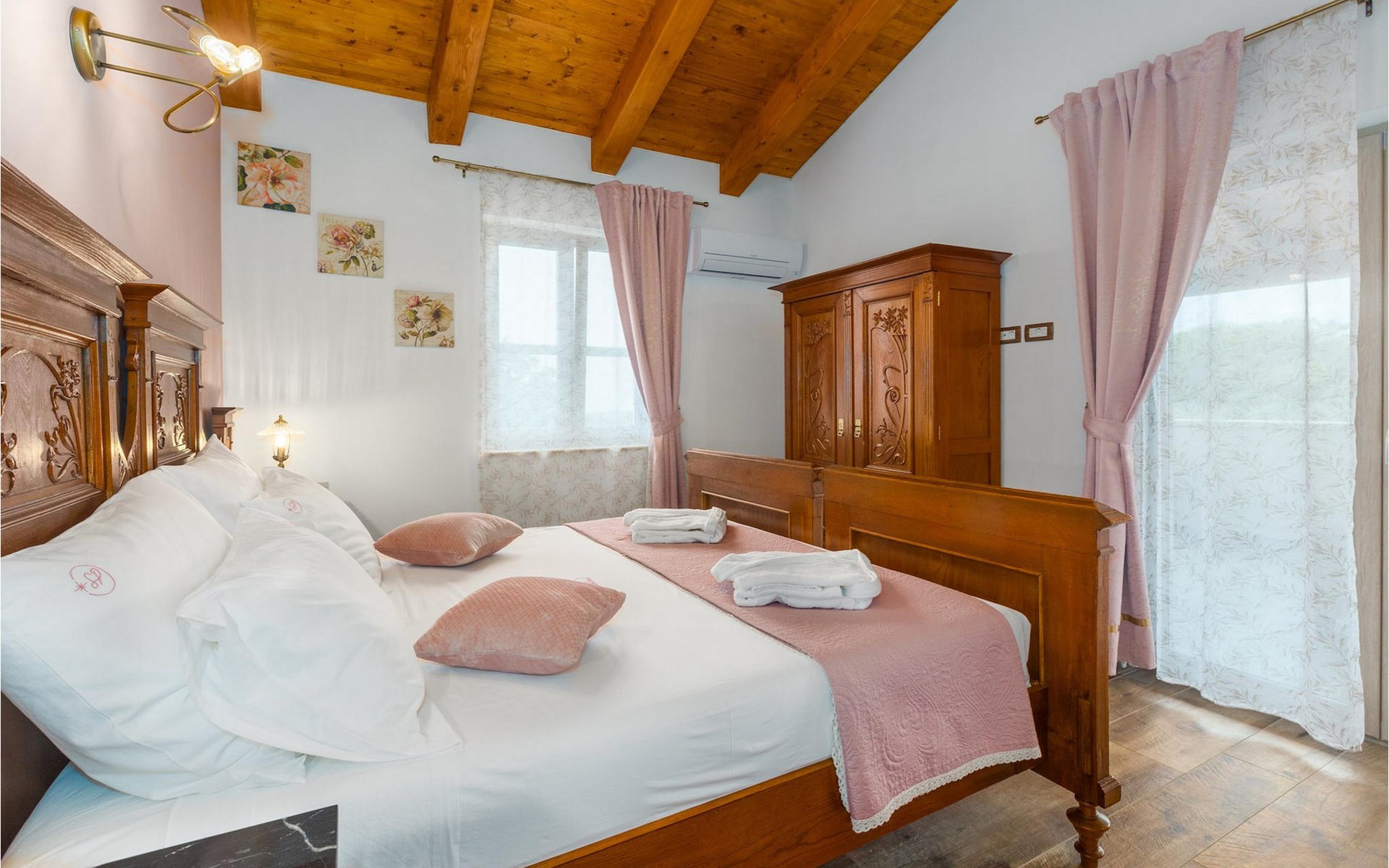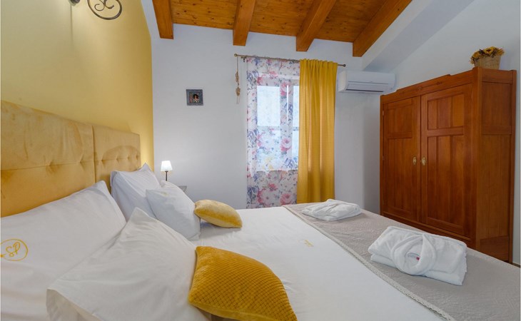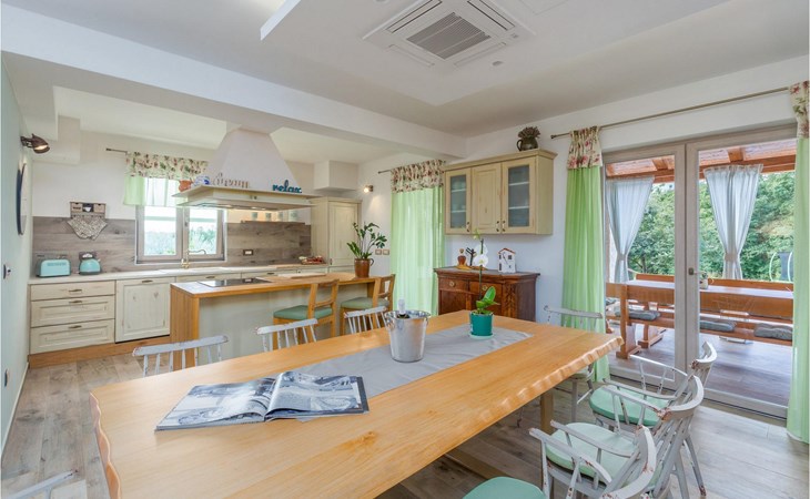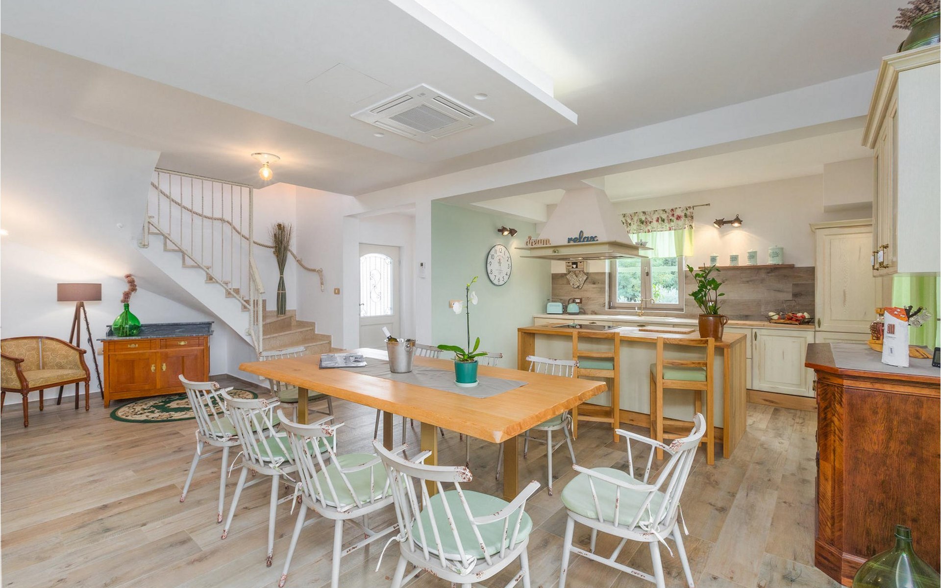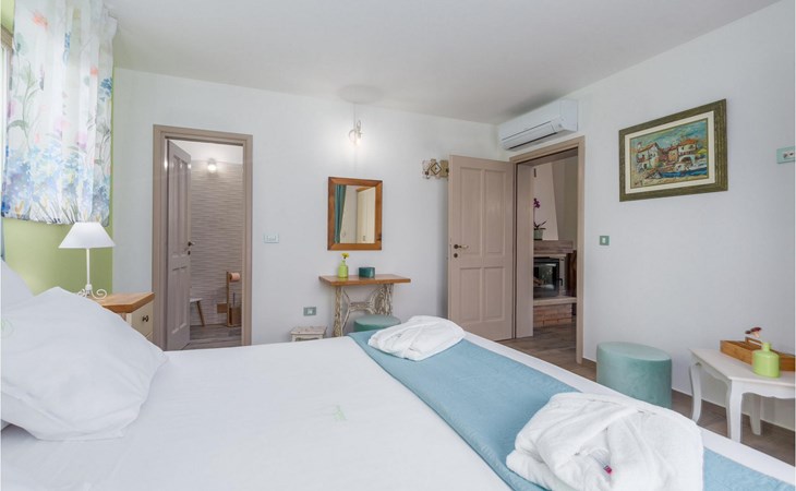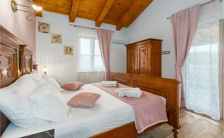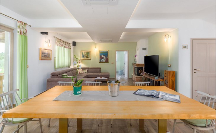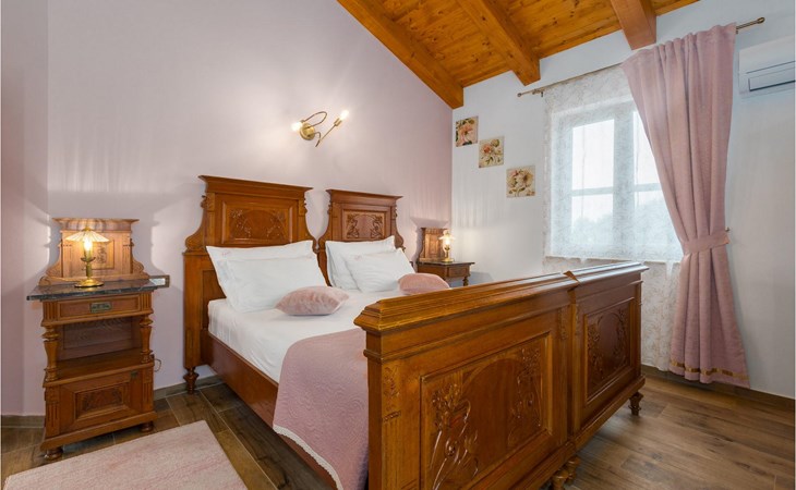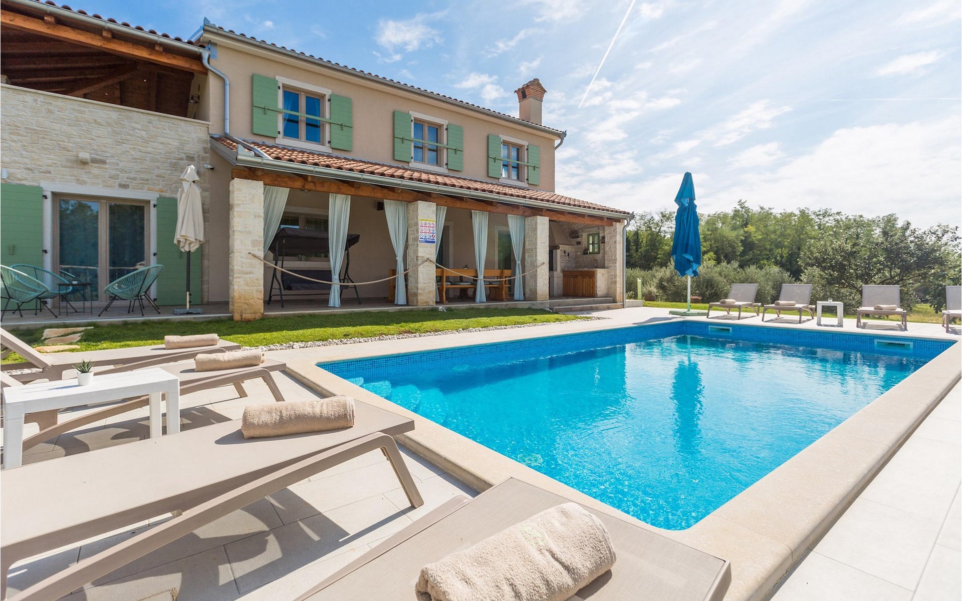 Ben je op zoek naar een gezellige villa op het schiereiland Istrië met genoeg ruimte voor maximaal 8 personen? Dan moet je zeker Villa Stella Polaris overwegen voor je komende vakantie. Als je de villa nadert, zul je de prachtige, ongerepte omgeving opmerken - perfect voor een ontspannen tijd weg van de drukte van de stad. Er is ook een olijfgaard op het terrein, wat de villa een typisch mediterrane flair geeft. Binnen in de villa heet de warm ingerichte begane grond je welkom in je vakantiehuis. De open ruimte, waaronder de keuken, eetkamer en woonkamer, met zijn liefdevol doordachte decoratie zal je liefde voor detail wekken. De volledig uitgeruste keuken is ontworpen in een moderne landhuisstijl en past bij de eethoek. In de woonkamer kun je het jezelf gemakkelijk maken op de bank en naar muziek luisteren of de tv aanzetten. Er is ook een open haard voor de koudere dagen. Naast het bovenstaande is er op de begane grond een slaapkamer met een eigen badkamer. Op de bovenverdieping is een slaapkamer in rustieke stijl. Deze heeft niet alleen een eigen badkamer, maar ook een ruim balkon met een zitje en een prachtig uitzicht. Twee andere slaapkamers met scheidbare tweepersoonsbedden delen een badkamer. Alle badkamers in de villa hebben een inloop regendouche. Op het terras kun je plaatsnemen op de romantische tuinschommel, in de loungehoek of in de eethoek buiten - dit laatste vooral als je liever in de frisse lucht eet. Je kunt je lekkernijen ook op het terras bereiden dankzij de zomerkeuken met stenen barbecue. Om optimaal te genieten, kun je gaan liggen op de ligstoelen naast het verfrissende zwembad en genieten van wat warme zonnestralen. De tuin heeft ook iets voor de kleintjes - hun eigen speeltuin en een trampoline. Beleef een ontspannen vakantie vol onvergetelijke momenten en boek nu Villa Stella PolarisIn het westelijke deel van Istrië, vlakbij Porec, ligt het kleine dorpje Visnjan. Wandel door de geplaveide straten van de oude stad en bewonder het historische erfgoed. Aarzel niet om de plaatselijke bevolking om een korte les over de geschiedenis van Visnjan te vragen - ze zullen je graag legendes over hun dorp vertellen. Terwijl je door het oude stadscentrum slentert of de streek rond Visnjan verkent, kom je traditionele herbergen tegen waar je Istrische delicatessen en kwaliteitswijnen kunt proeven. Sommige vallen onder de categorie agrotoerisme, wat betekent dat ze alleen hun eigen boerderijproducten aanbieden - daar eten is echt een bijzondere ervaring. Vergeet niet het beroemde observatorium te bezoeken. Laat je inspireren door gewoon naar de hemel te kijken en te genieten. Niet ver van Visnjan kun je ook de Baredine grot en de Zarecki krov waterval bezoeken - je zult versteld staan van het uitzicht. En mis natuurlijk niet de gelegenheid om twee van de populairste plaatsen aan de kust van Istrië te bezoeken - Porec en Novigrad. Daar kunt u genieten van een mooie, ontspannen dag aan het strand of een gezellige avond in de stadscentra.