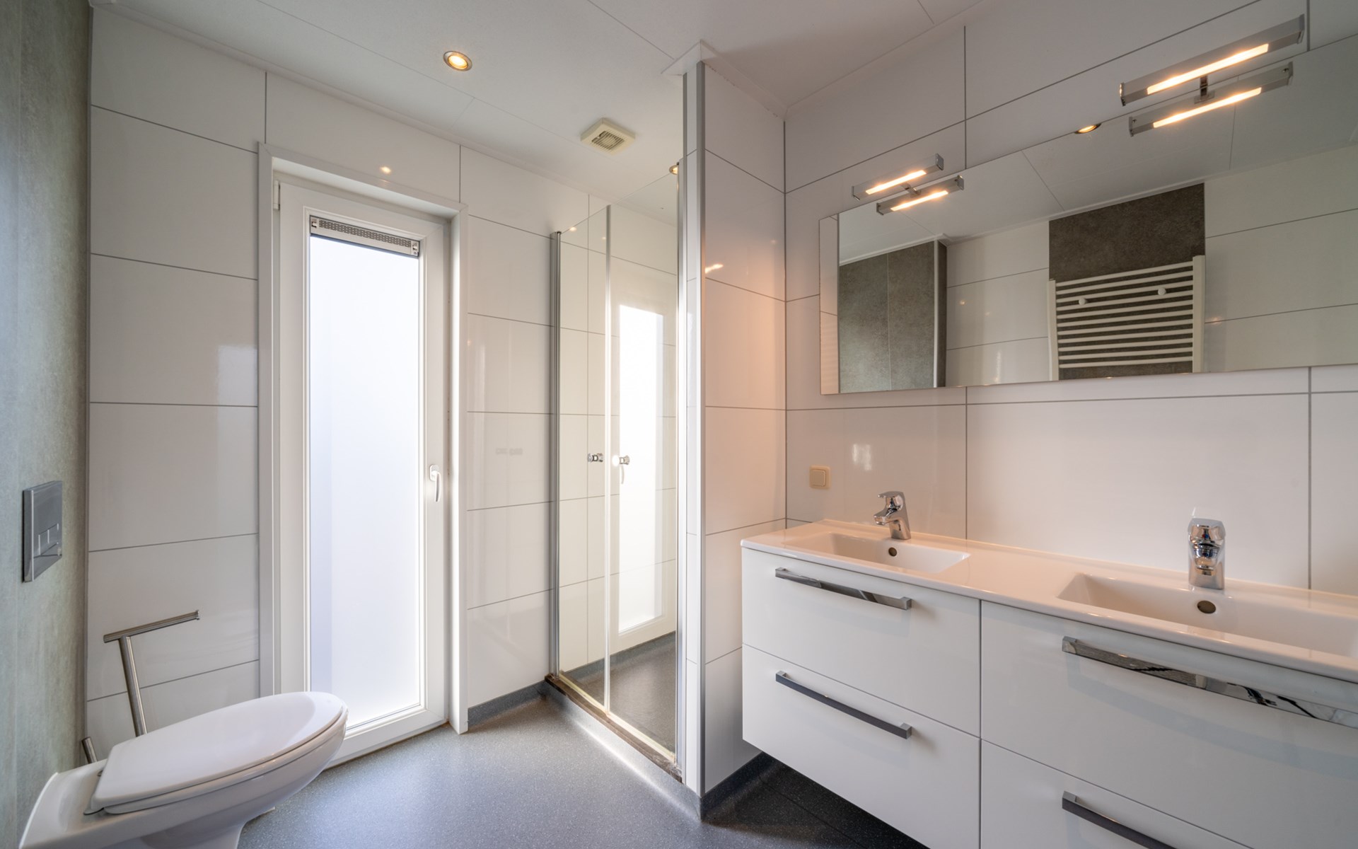 ๐ฟ ย Badkamer met dubbele wastafel, inloopdouche en toilet