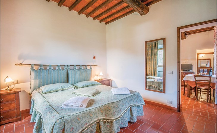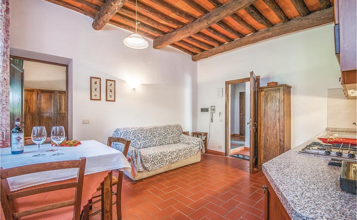 Vakantiewoningen in een prachtige stenen boerderij, gerenoveerd met behoud van de landelijke architectuur en omgeven door wijn- en olijfgaarden. Het landgoed produceert uitstekende wijnen, olie, brandewijn en schnaps, die de gasten ter plaatse kunnen proeven en kopen. In de directe omgeving vindt u het prachtige kasteel van Querceto, een van de belangrijkste bezienswaardigheden in de Chianti, waarvan de wijnkelders op verzoek kunnen worden bezocht. Zwembad in gemeenschap met in totaal 12 appartementen. Kinderbedje op aanvraag. Het huis is bereikbaar via een natuurlijke weg in goede staat. Vlakbij de woning loopt de verbindingsweg tussen Greve in Chianti en Figline Valdarno. Internet bij de receptie tijdens de openingstijden, mogelijkheid tot wijnproeven en rondleiding door de boerderij. Op aanvraag en direct ter plaatse te betalen: Ontbijtservice, wasserette, extra schoonmaak, linnenwissel tijdens de week. Aankomst alleen van 15.00 tot 18.00 uur. Zie ITC138, ITC139, ITC142 en ITC143.