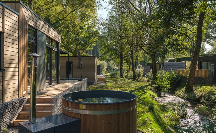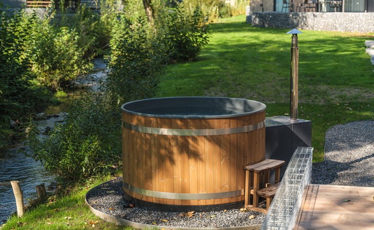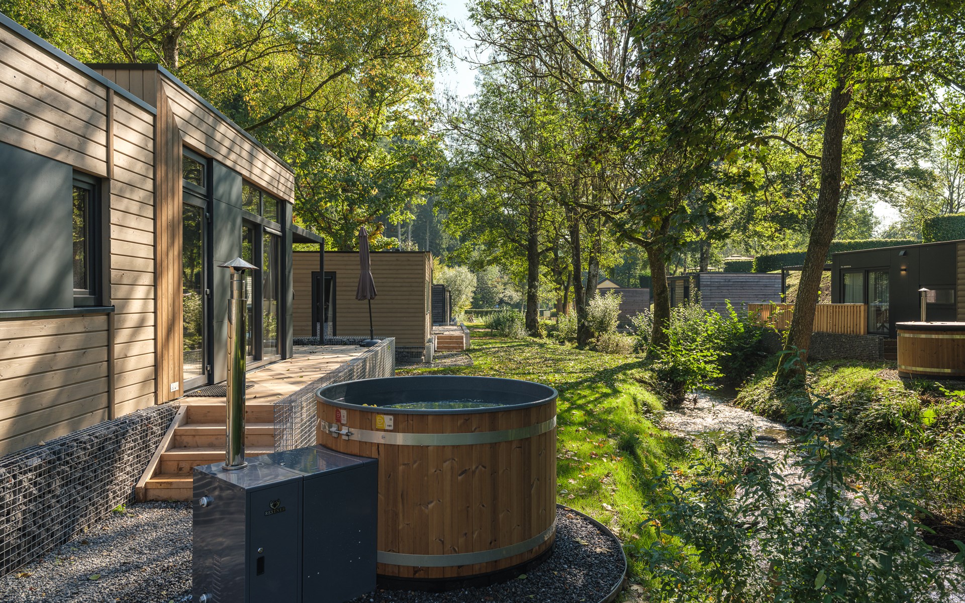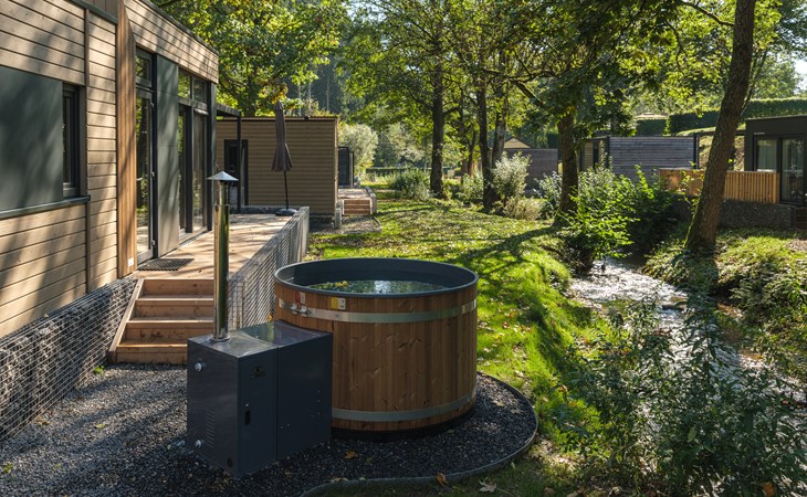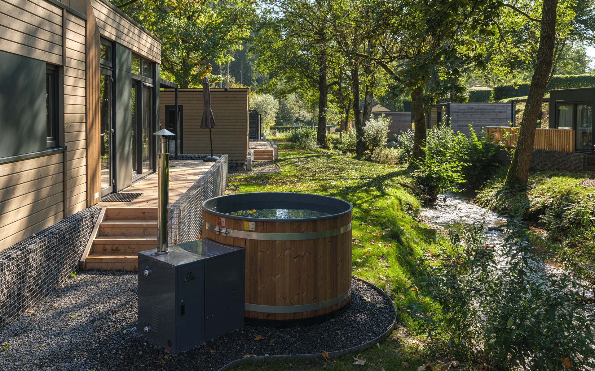 Een extra vleugje luxe biedt de privé hottub, die centraal staat op het terras en een uitnodigende plek is om helemaal tot rust te komen. Stel je voor: ontspannen in het warme, dampende water terwijl je uitkijkt over de prachtige natuurlijke omgeving. Of je nu de dag begint met een verkwikkend moment in de ochtendzon of de avond afsluit onder een hemel vol sterren, de hottub maakt elk moment onvergetelijk.