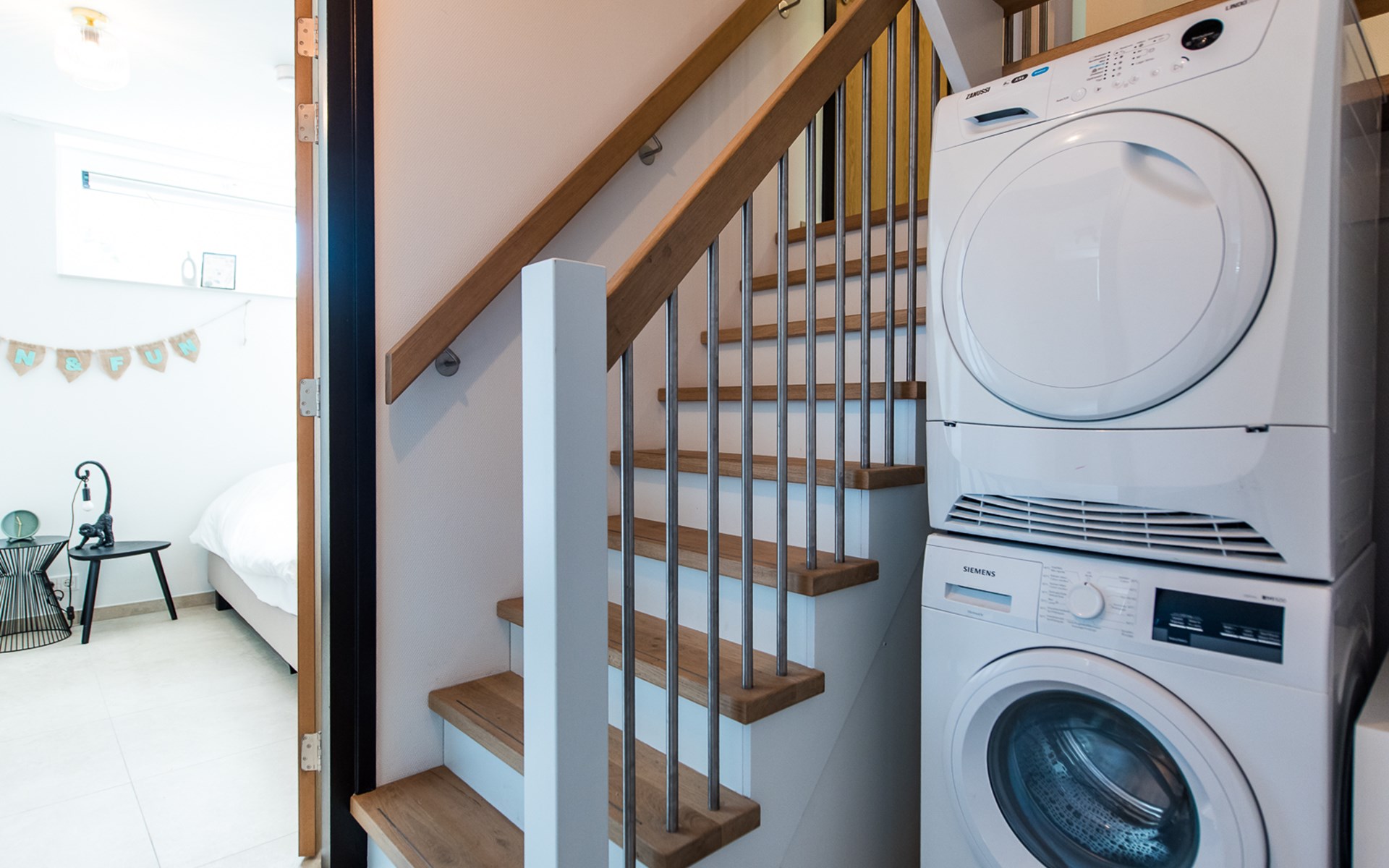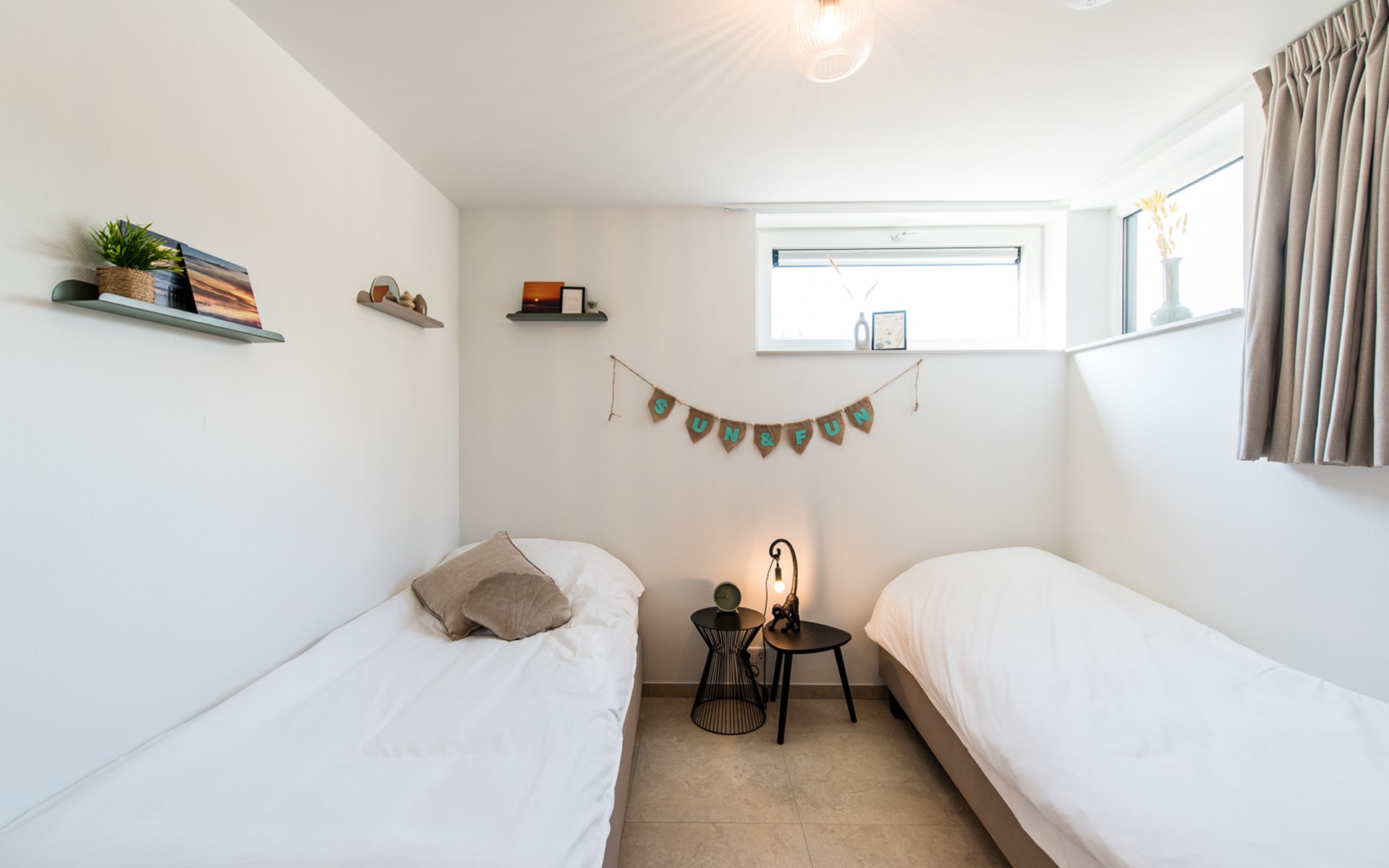 De woning is stijlvol ingericht in een frisse eiland- en strandstijl. Met vijf comfortabele slaapkamers, voorzien van luxe boxspringbedden, is er volop ruimte voor iedereen. De drie moderne badkamers zorgen ervoor dat niemand hoeft te wachten, en met twee aparte toiletten is ook aan het praktische comfort gedacht.