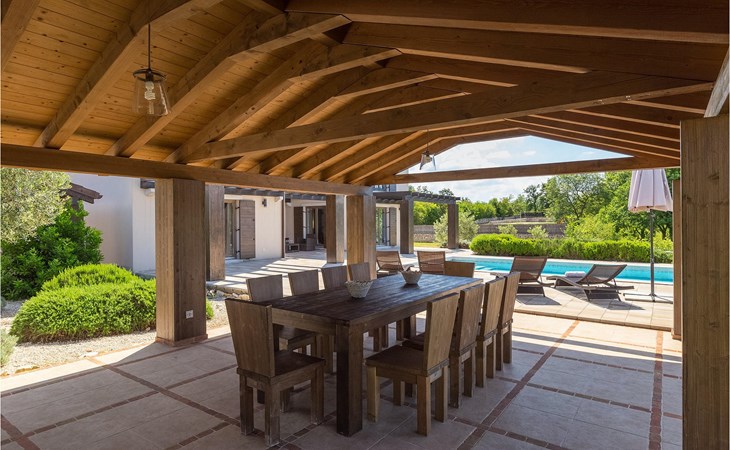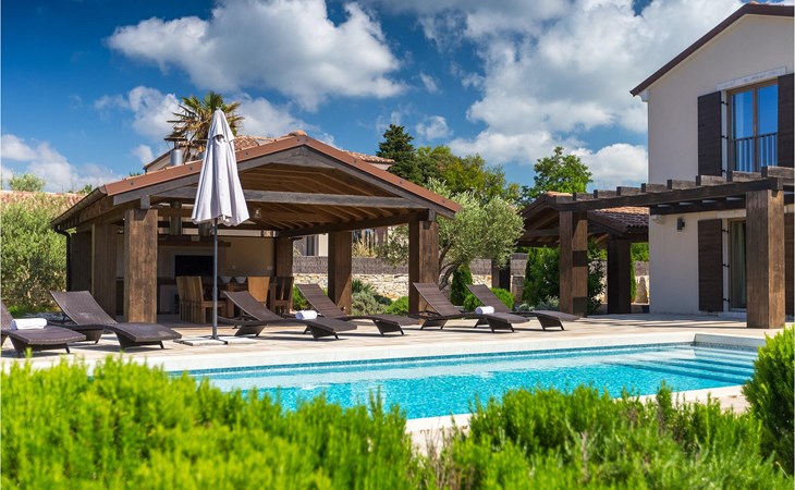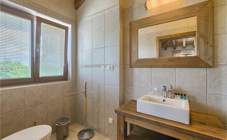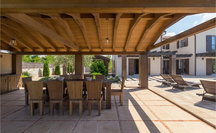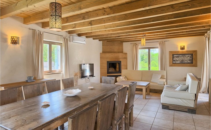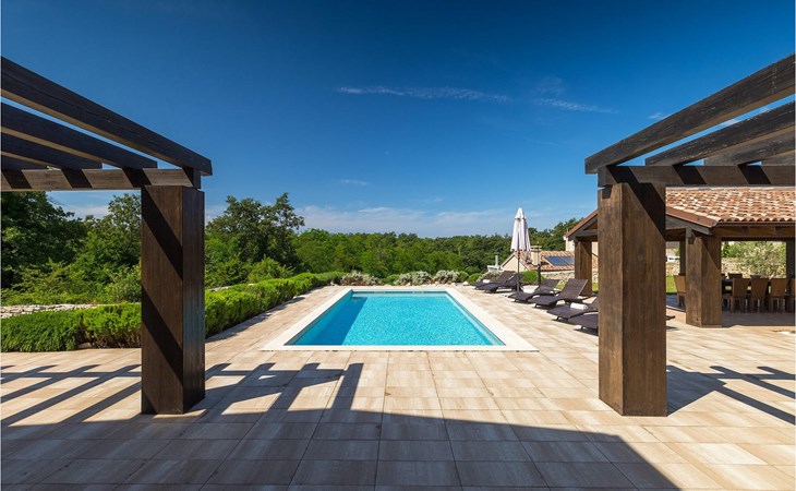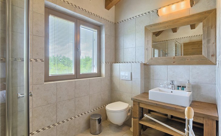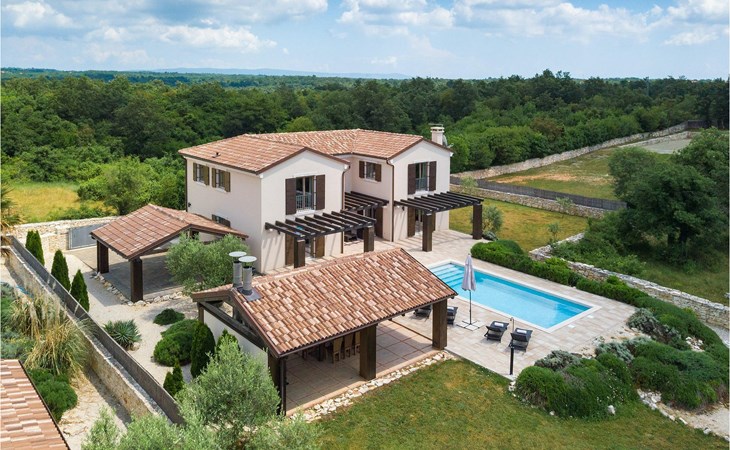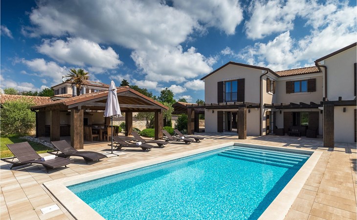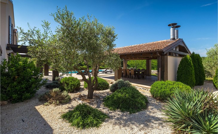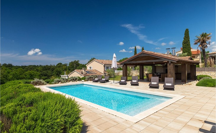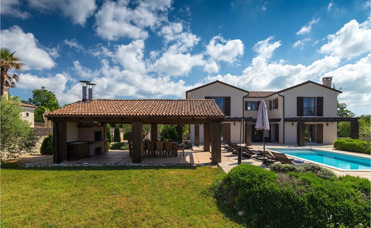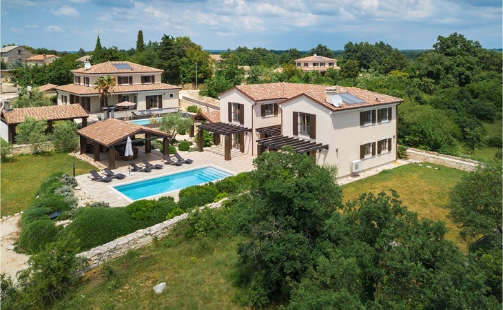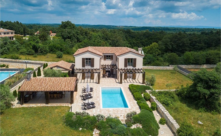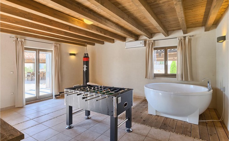 Deze prachtige villa met 5 slaapkamers ligt in Bonasini, een klein charmant dorpje, gebouwd van steen en met 10 inwoners - een zeer rustige locatie voor een ontspannen vakantie. Het ligt op een zonnige heuvel, omringd door bossen in de ongerepte natuur, dus de locatie is perfect voor activiteiten in de buitenlucht. De binnenruimte van de villa is 265m2 en de buitenruimte is 1290m2. Het huis heeft een eigen tuin, een privézwembad, een overdekte barbecue en een eethoek met een zomerkeuken en ontspannend tuinmeubilair. De villa is goed uitgerust en smaakvol ingericht met aandacht voor detail. Alle slaapkamers hebben een en-suite badkamer en airconditioning. Naast het hoofdgebouw is er een klein privé wellnesscentrum (Finse sauna, jacuzzi, douche) voor jouw plezier. Er is ook een gemeenschappelijk sportcentrum in de buurt met volleybalveld, tafeltennis en badmintonveld en de luchthaven van Pula ligt op slechts 20 km afstand. Pula (15 km) is de regionale hoofdstad van Istrië met een uitstekende selectie restaurants en aantrekkelijke winkelgebieden. Maak een wandeling door Pula en ervaar de straten en pleinen van de oude stad, waarvan sommige dateren uit de Romeinse tijd. Het prachtige amfitheater dateert uit de 1e eeuw na Christus en is het 6e grootste ter wereld. Het stadscentrum ligt op ongeveer 10 minuten rijden van de luchthaven. Fazana is een kleine kustplaats, 11 km van Bonasini, met een haven vanwaar toeristische boten (15 min) je naar een van de mooiste nationale parken in Kroatië brengen - Brijuni. Fazana biedt een groot kiezelstrand met mogelijkheden voor talrijke watersporten en activiteiten. Vodnjan is een typisch middeleeuws stadje met een interessant architecturaal patroon: de huizen van de stad vormen ook de stadsmuren en dienden vroeger als verdediging. Op het centrale plein staat een prachtige barokke kerk, verschillende restaurants en een nieuw sportpark met tennisbanen. St. Vincenat (5km) ook bekend als Savicenta, een klein charmant stadje in centraal Istrië. Dit dorp is gecentreerd rond tal van prachtig gerestaureerde 14e en 16e eeuwse kerken en een versterkt landhuis. Er zijn enkele uitstekende restaurants en cafés en sinds kort is Vodnjan uitgegroeid tot een van de culturele topsteden in Istrië, waar elk weekend evenementen plaatsvinden. Rovinj, (23 km) met een 1700 jaar oude geschiedenis is de mooiste en meest luxueuze toeristische stad in Istrië, met een prachtig oud stadscentrum, een parel van architectuur. De prachtige gebouwen en charmante straatjes vol kleine kunstgaleries, creëren een geweldige schildersstad met talloze restaurants en cafés.