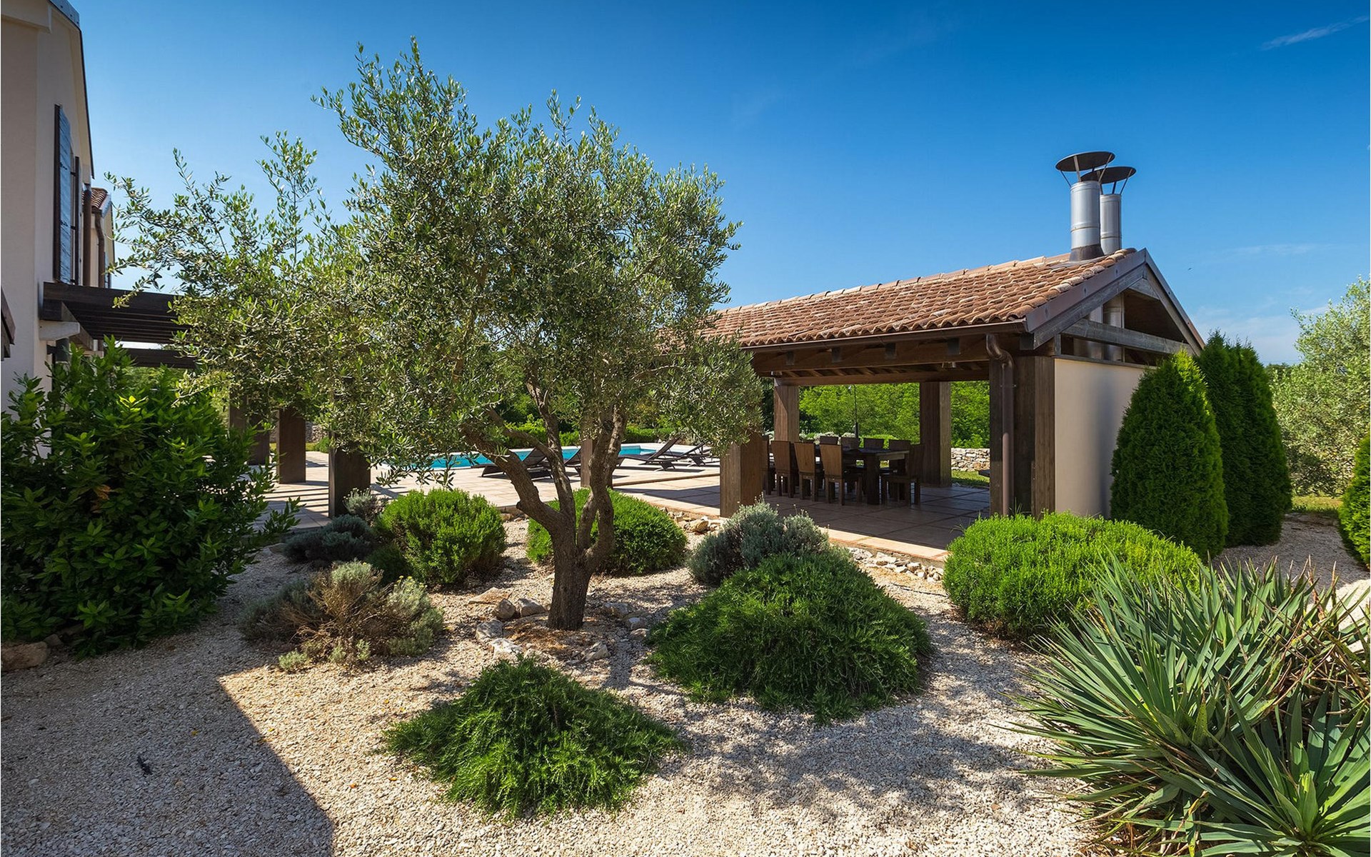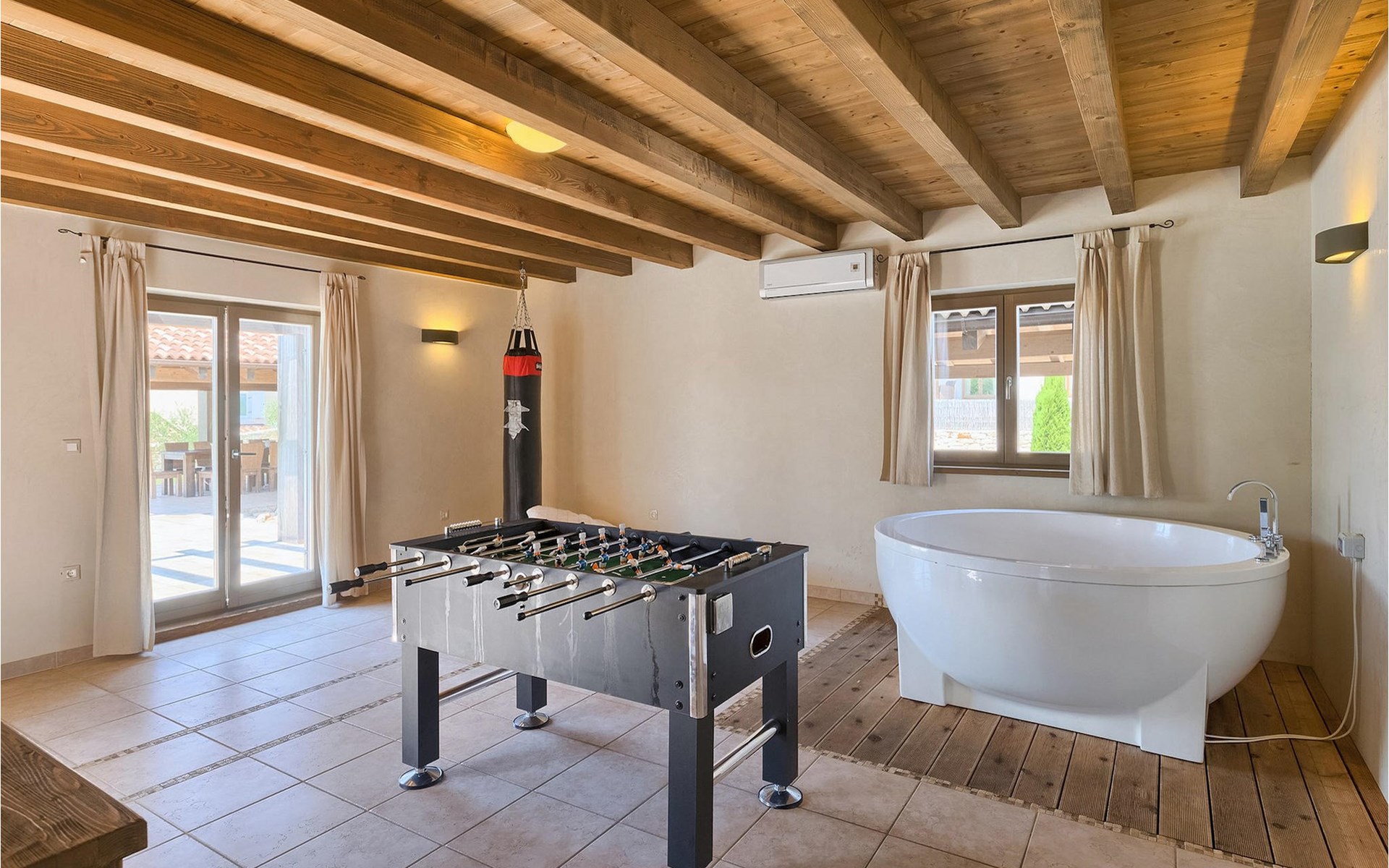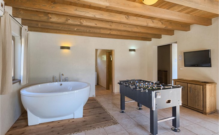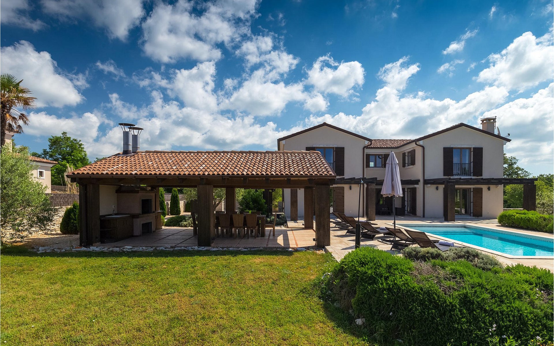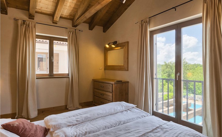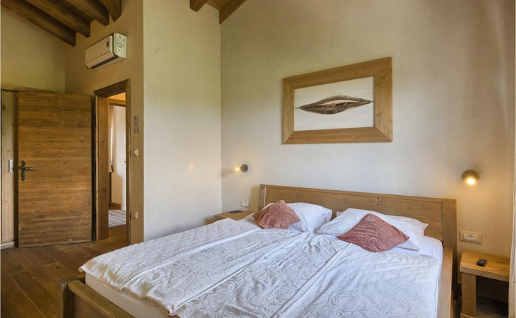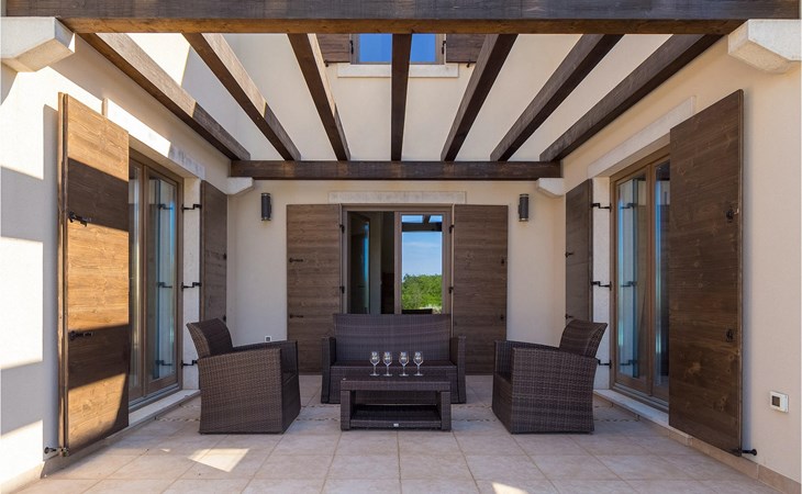 Deze prachtige villa met 5 slaapkamers ligt in Bonasini, een klein charmant dorpje, gebouwd van steen en met 10 inwoners - een zeer rustige locatie voor een ontspannen vakantie. Het ligt op een zonnige heuvel, omringd door bossen in de ongerepte natuur, dus de locatie is perfect voor activiteiten in de buitenlucht. De binnenruimte van de villa is 265m2 en de buitenruimte is 1290m2. Het huis heeft een eigen tuin, een privézwembad, een overdekte barbecue en een eethoek met een zomerkeuken en ontspannend tuinmeubilair. De villa is goed uitgerust en smaakvol ingericht met aandacht voor detail. Alle slaapkamers hebben een en-suite badkamer en airconditioning. Naast het hoofdgebouw is er een klein privé wellnesscentrum (Finse sauna, jacuzzi, douche) voor jouw plezier. Er is ook een gemeenschappelijk sportcentrum in de buurt met volleybalveld, tafeltennis en badmintonveld en de luchthaven van Pula ligt op slechts 20 km afstand. Pula (15 km) is de regionale hoofdstad van Istrië met een uitstekende selectie restaurants en aantrekkelijke winkelgebieden. Maak een wandeling door Pula en ervaar de straten en pleinen van de oude stad, waarvan sommige dateren uit de Romeinse tijd. Het prachtige amfitheater dateert uit de 1e eeuw na Christus en is het 6e grootste ter wereld. Het stadscentrum ligt op ongeveer 10 minuten rijden van de luchthaven. Fazana is een kleine kustplaats, 11 km van Bonasini, met een haven vanwaar toeristische boten (15 min) je naar een van de mooiste nationale parken in Kroatië brengen - Brijuni. Fazana biedt een groot kiezelstrand met mogelijkheden voor talrijke watersporten en activiteiten. Vodnjan is een typisch middeleeuws stadje met een interessant architecturaal patroon: de huizen van de stad vormen ook de stadsmuren en dienden vroeger als verdediging. Op het centrale plein staat een prachtige barokke kerk, verschillende restaurants en een nieuw sportpark met tennisbanen. St. Vincenat (5km) ook bekend als Savicenta, een klein charmant stadje in centraal Istrië. Dit dorp is gecentreerd rond tal van prachtig gerestaureerde 14e en 16e eeuwse kerken en een versterkt landhuis. Er zijn enkele uitstekende restaurants en cafés en sinds kort is Vodnjan uitgegroeid tot een van de culturele topsteden in Istrië, waar elk weekend evenementen plaatsvinden. Rovinj, (23 km) met een 1700 jaar oude geschiedenis is de mooiste en meest luxueuze toeristische stad in Istrië, met een prachtig oud stadscentrum, een parel van architectuur. De prachtige gebouwen en charmante straatjes vol kleine kunstgaleries, creëren een geweldige schildersstad met talloze restaurants en cafés.