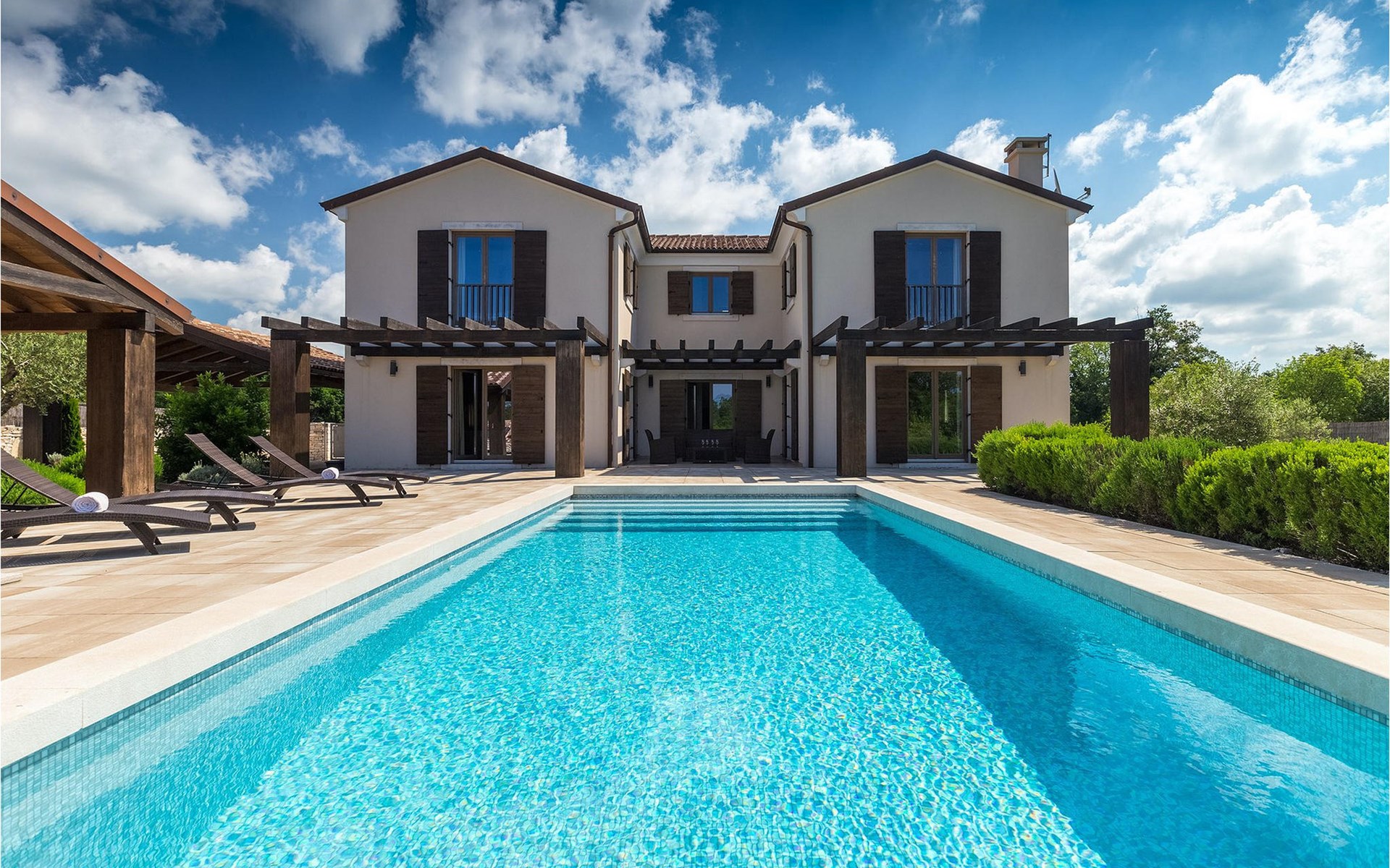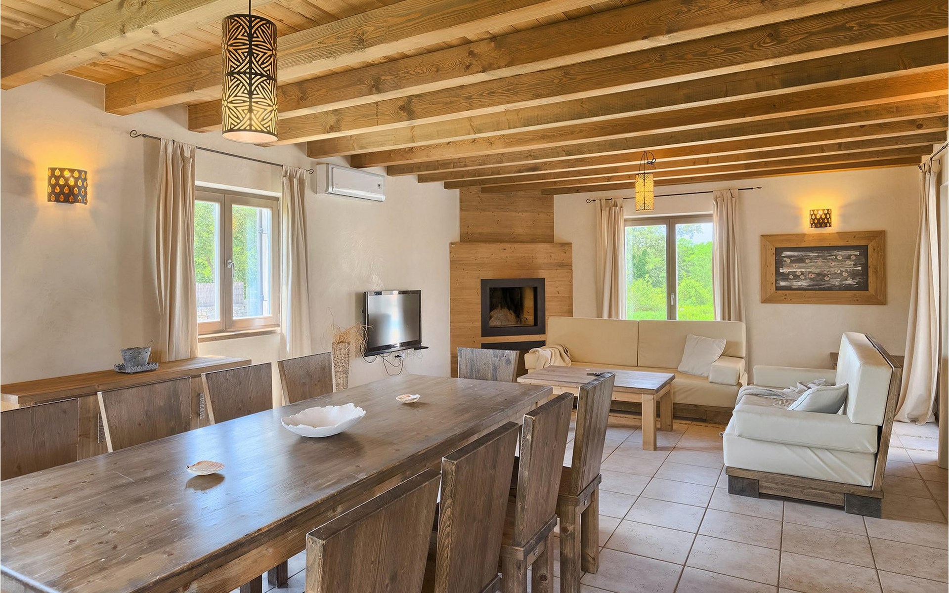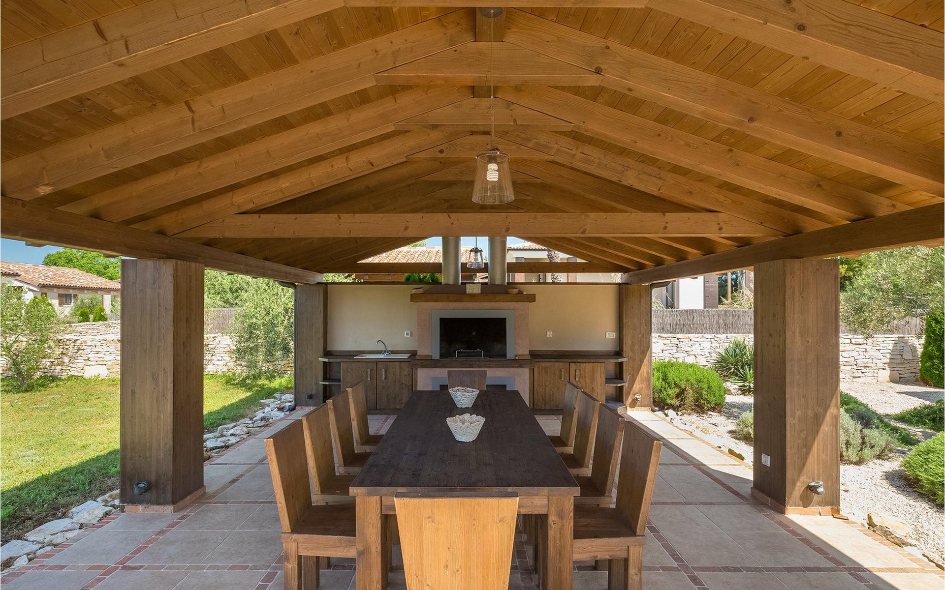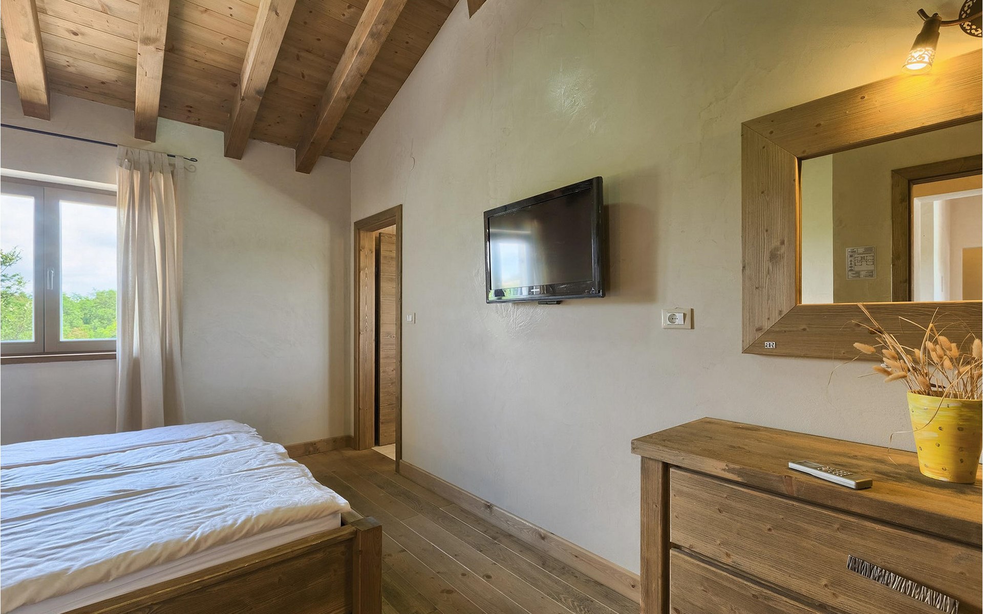 Deze prachtige villa met 5 slaapkamers ligt in Bonasini, een klein charmant dorpje, gebouwd van steen en met 10 inwoners - een zeer rustige locatie voor een ontspannen vakantie. Het ligt op een zonnige heuvel, omringd door bossen in de ongerepte natuur, dus de locatie is perfect voor activiteiten in de buitenlucht. De binnenruimte van de villa is 265m2 en de buitenruimte is 1290m2. Het huis heeft een eigen tuin, een privézwembad, een overdekte barbecue en een eethoek met een zomerkeuken en ontspannend tuinmeubilair. De villa is goed uitgerust en smaakvol ingericht met aandacht voor detail. Alle slaapkamers hebben een en-suite badkamer en airconditioning. Naast het hoofdgebouw is er een klein privé wellnesscentrum (Finse sauna, jacuzzi, douche) voor jouw plezier. Er is ook een gemeenschappelijk sportcentrum in de buurt met volleybalveld, tafeltennis en badmintonveld en de luchthaven van Pula ligt op slechts 20 km afstand. Pula (15 km) is de regionale hoofdstad van Istrië met een uitstekende selectie restaurants en aantrekkelijke winkelgebieden. Maak een wandeling door Pula en ervaar de straten en pleinen van de oude stad, waarvan sommige dateren uit de Romeinse tijd. Het prachtige amfitheater dateert uit de 1e eeuw na Christus en is het 6e grootste ter wereld. Het stadscentrum ligt op ongeveer 10 minuten rijden van de luchthaven. Fazana is een kleine kustplaats, 11 km van Bonasini, met een haven vanwaar toeristische boten (15 min) je naar een van de mooiste nationale parken in Kroatië brengen - Brijuni. Fazana biedt een groot kiezelstrand met mogelijkheden voor talrijke watersporten en activiteiten. Vodnjan is een typisch middeleeuws stadje met een interessant architecturaal patroon: de huizen van de stad vormen ook de stadsmuren en dienden vroeger als verdediging. Op het centrale plein staat een prachtige barokke kerk, verschillende restaurants en een nieuw sportpark met tennisbanen. St. Vincenat (5km) ook bekend als Savicenta, een klein charmant stadje in centraal Istrië. Dit dorp is gecentreerd rond tal van prachtig gerestaureerde 14e en 16e eeuwse kerken en een versterkt landhuis. Er zijn enkele uitstekende restaurants en cafés en sinds kort is Vodnjan uitgegroeid tot een van de culturele topsteden in Istrië, waar elk weekend evenementen plaatsvinden. Rovinj, (23 km) met een 1700 jaar oude geschiedenis is de mooiste en meest luxueuze toeristische stad in Istrië, met een prachtig oud stadscentrum, een parel van architectuur. De prachtige gebouwen en charmante straatjes vol kleine kunstgaleries, creëren een geweldige schildersstad met talloze restaurants en cafés.