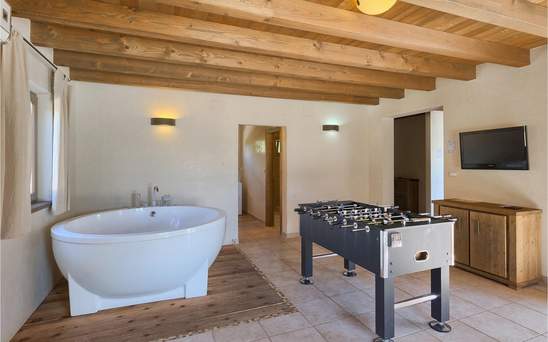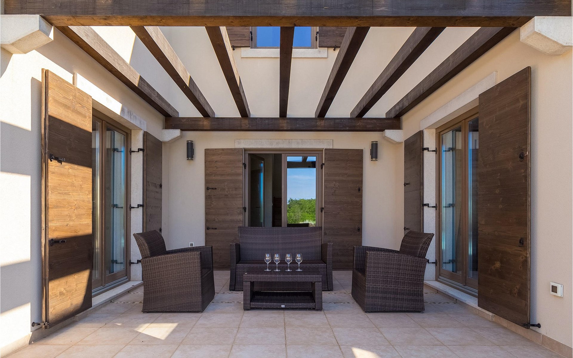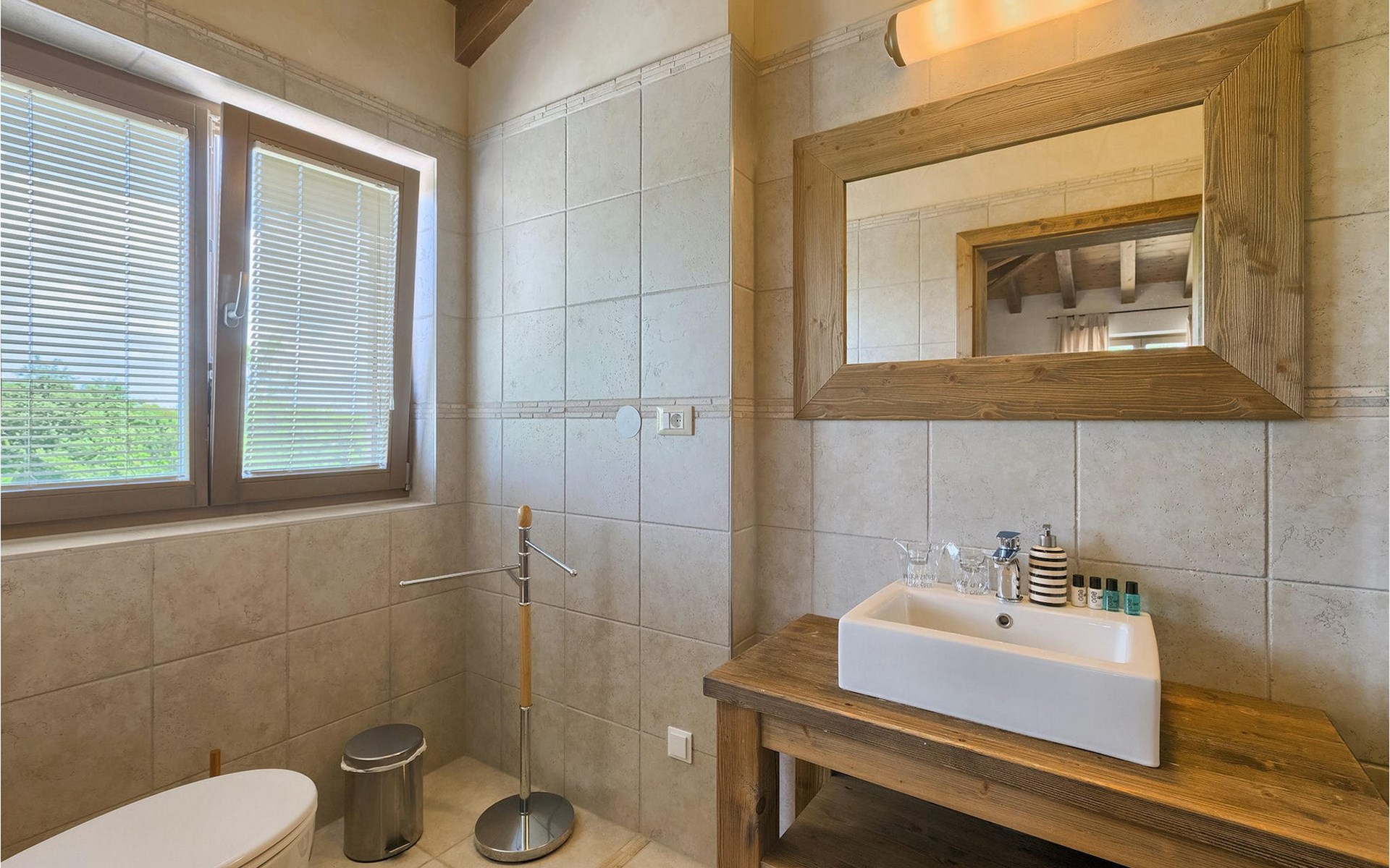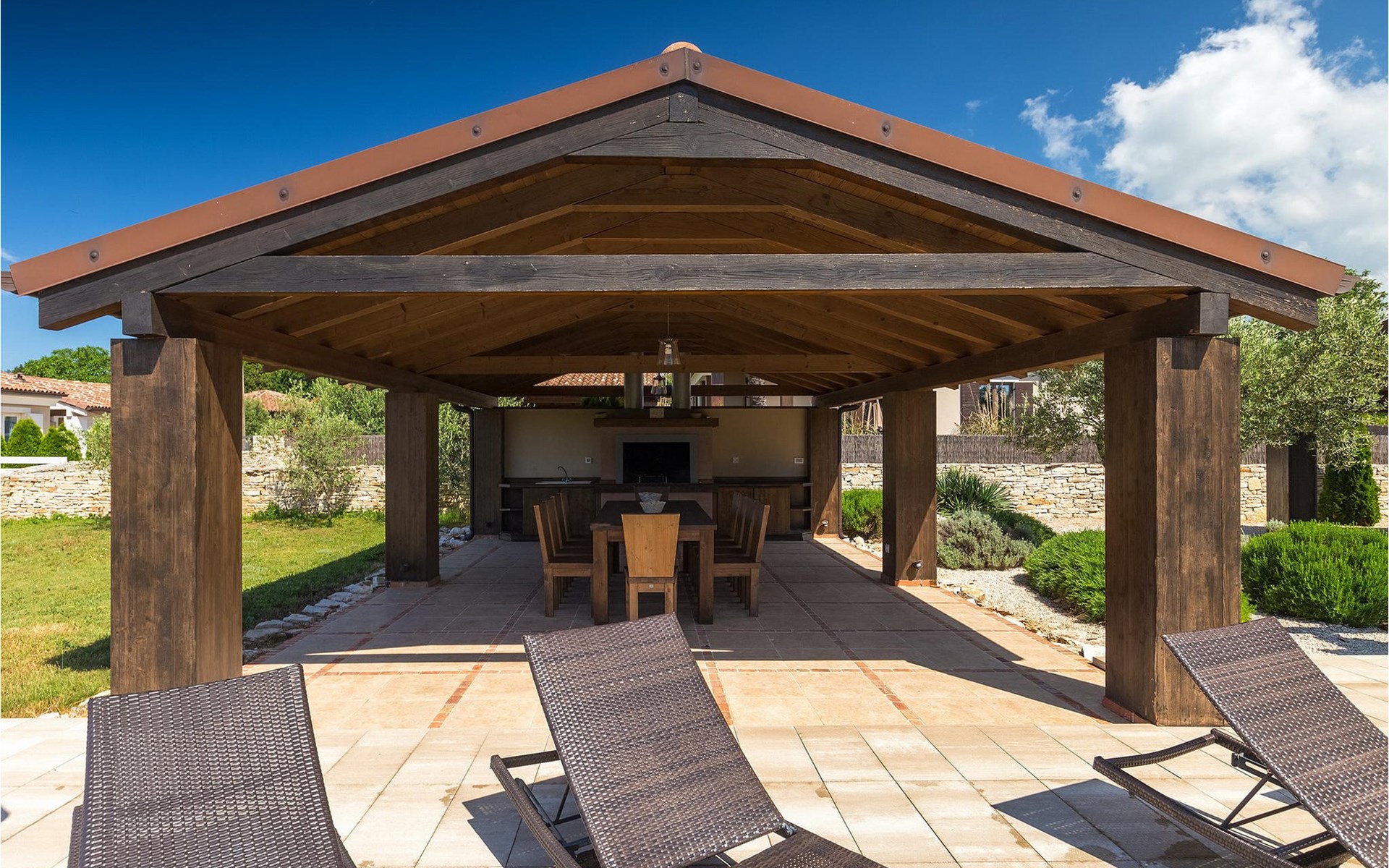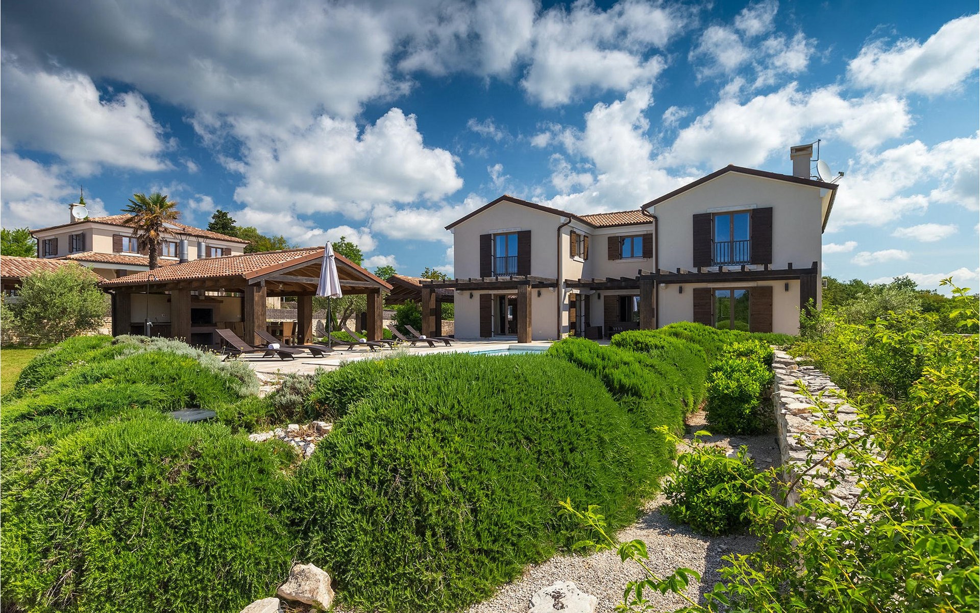 Deze prachtige villa met 5 slaapkamers ligt in Bonasini, een klein charmant dorpje, gebouwd van steen en met 10 inwoners - een zeer rustige locatie voor een ontspannen vakantie. Het ligt op een zonnige heuvel, omringd door bossen in de ongerepte natuur, dus de locatie is perfect voor activiteiten in de buitenlucht. De binnenruimte van de villa is 265m2 en de buitenruimte is 1290m2. Het huis heeft een eigen tuin, een privézwembad, een overdekte barbecue en een eethoek met een zomerkeuken en ontspannend tuinmeubilair. De villa is goed uitgerust en smaakvol ingericht met aandacht voor detail. Alle slaapkamers hebben een en-suite badkamer en airconditioning. Naast het hoofdgebouw is er een klein privé wellnesscentrum (Finse sauna, jacuzzi, douche) voor jouw plezier. Er is ook een gemeenschappelijk sportcentrum in de buurt met volleybalveld, tafeltennis en badmintonveld en de luchthaven van Pula ligt op slechts 20 km afstand. Pula (15 km) is de regionale hoofdstad van Istrië met een uitstekende selectie restaurants en aantrekkelijke winkelgebieden. Maak een wandeling door Pula en ervaar de straten en pleinen van de oude stad, waarvan sommige dateren uit de Romeinse tijd. Het prachtige amfitheater dateert uit de 1e eeuw na Christus en is het 6e grootste ter wereld. Het stadscentrum ligt op ongeveer 10 minuten rijden van de luchthaven. Fazana is een kleine kustplaats, 11 km van Bonasini, met een haven vanwaar toeristische boten (15 min) je naar een van de mooiste nationale parken in Kroatië brengen - Brijuni. Fazana biedt een groot kiezelstrand met mogelijkheden voor talrijke watersporten en activiteiten. Vodnjan is een typisch middeleeuws stadje met een interessant architecturaal patroon: de huizen van de stad vormen ook de stadsmuren en dienden vroeger als verdediging. Op het centrale plein staat een prachtige barokke kerk, verschillende restaurants en een nieuw sportpark met tennisbanen. St. Vincenat (5km) ook bekend als Savicenta, een klein charmant stadje in centraal Istrië. Dit dorp is gecentreerd rond tal van prachtig gerestaureerde 14e en 16e eeuwse kerken en een versterkt landhuis. Er zijn enkele uitstekende restaurants en cafés en sinds kort is Vodnjan uitgegroeid tot een van de culturele topsteden in Istrië, waar elk weekend evenementen plaatsvinden. Rovinj, (23 km) met een 1700 jaar oude geschiedenis is de mooiste en meest luxueuze toeristische stad in Istrië, met een prachtig oud stadscentrum, een parel van architectuur. De prachtige gebouwen en charmante straatjes vol kleine kunstgaleries, creëren een geweldige schildersstad met talloze restaurants en cafés.
