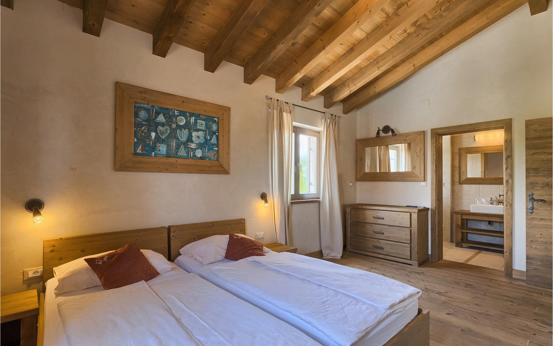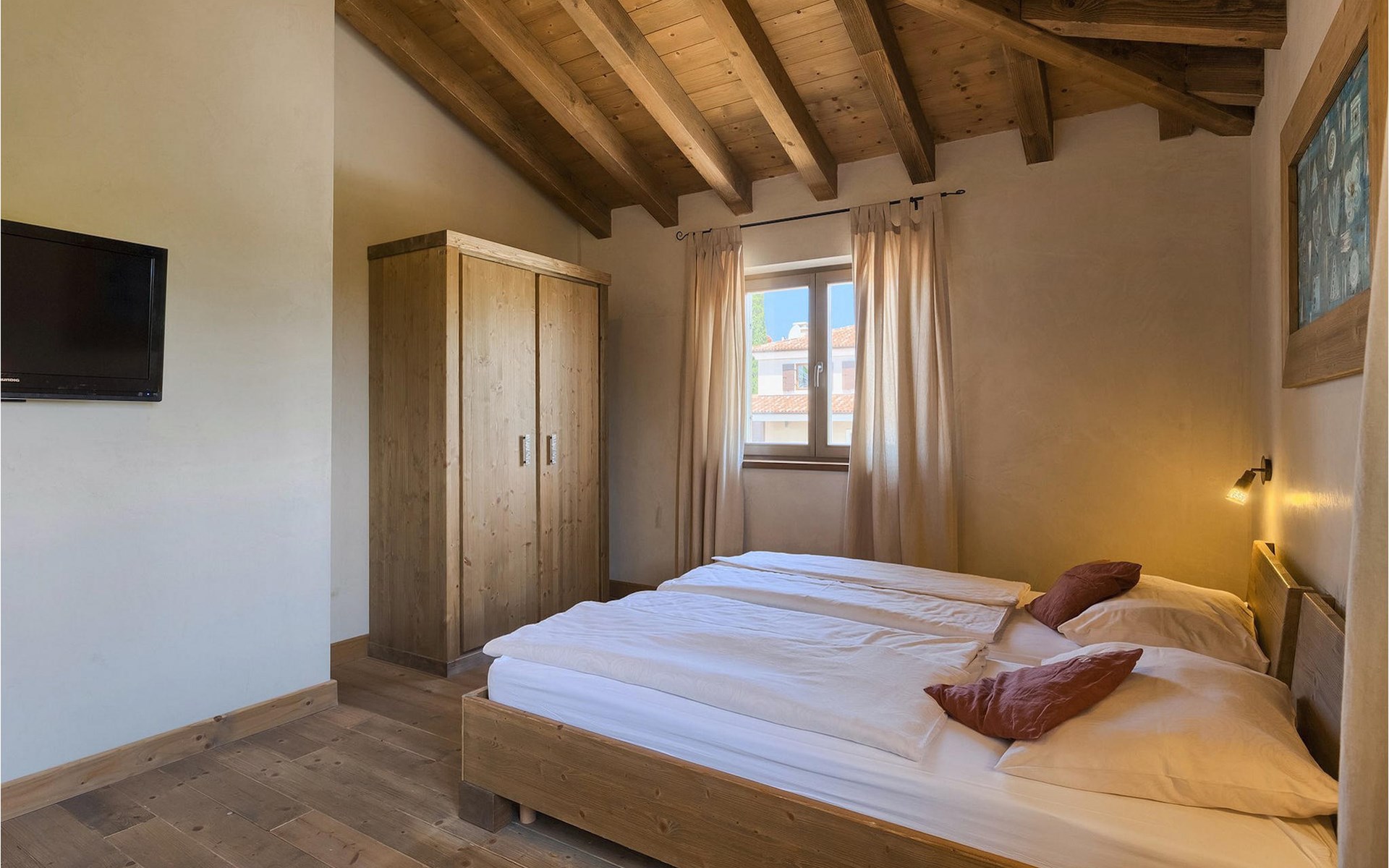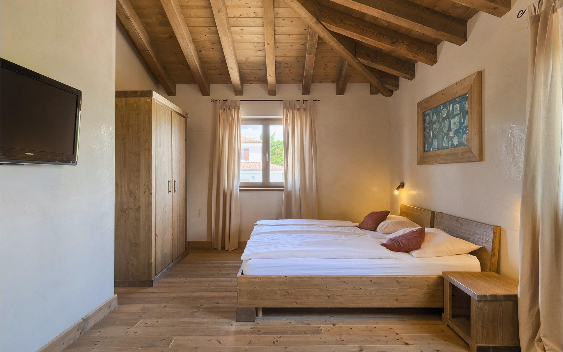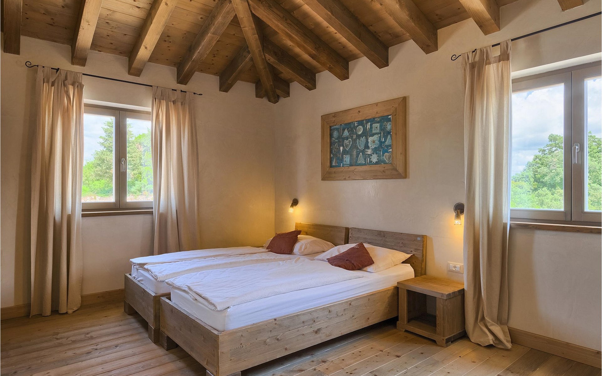 Deze prachtige villa met 5 slaapkamers ligt in Bonasini, een klein charmant dorpje, gebouwd van steen en met 10 inwoners - een zeer rustige locatie voor een ontspannen vakantie. Het ligt op een zonnige heuvel, omringd door bossen in de ongerepte natuur, dus de locatie is perfect voor activiteiten in de buitenlucht. De binnenruimte van de villa is 265m2 en de buitenruimte is 1290m2. Het huis heeft een eigen tuin, een privézwembad, een overdekte barbecue en een eethoek met een zomerkeuken en ontspannend tuinmeubilair. De villa is goed uitgerust en smaakvol ingericht met aandacht voor detail. Alle slaapkamers hebben een en-suite badkamer en airconditioning. Naast het hoofdgebouw is er een klein privé wellnesscentrum (Finse sauna, jacuzzi, douche) voor jouw plezier. Er is ook een gemeenschappelijk sportcentrum in de buurt met volleybalveld, tafeltennis en badmintonveld en de luchthaven van Pula ligt op slechts 20 km afstand. Pula (15 km) is de regionale hoofdstad van Istrië met een uitstekende selectie restaurants en aantrekkelijke winkelgebieden. Maak een wandeling door Pula en ervaar de straten en pleinen van de oude stad, waarvan sommige dateren uit de Romeinse tijd. Het prachtige amfitheater dateert uit de 1e eeuw na Christus en is het 6e grootste ter wereld. Het stadscentrum ligt op ongeveer 10 minuten rijden van de luchthaven. Fazana is een kleine kustplaats, 11 km van Bonasini, met een haven vanwaar toeristische boten (15 min) je naar een van de mooiste nationale parken in Kroatië brengen - Brijuni. Fazana biedt een groot kiezelstrand met mogelijkheden voor talrijke watersporten en activiteiten. Vodnjan is een typisch middeleeuws stadje met een interessant architecturaal patroon: de huizen van de stad vormen ook de stadsmuren en dienden vroeger als verdediging. Op het centrale plein staat een prachtige barokke kerk, verschillende restaurants en een nieuw sportpark met tennisbanen. St. Vincenat (5km) ook bekend als Savicenta, een klein charmant stadje in centraal Istrië. Dit dorp is gecentreerd rond tal van prachtig gerestaureerde 14e en 16e eeuwse kerken en een versterkt landhuis. Er zijn enkele uitstekende restaurants en cafés en sinds kort is Vodnjan uitgegroeid tot een van de culturele topsteden in Istrië, waar elk weekend evenementen plaatsvinden. Rovinj, (23 km) met een 1700 jaar oude geschiedenis is de mooiste en meest luxueuze toeristische stad in Istrië, met een prachtig oud stadscentrum, een parel van architectuur. De prachtige gebouwen en charmante straatjes vol kleine kunstgaleries, creëren een geweldige schildersstad met talloze restaurants en cafés.