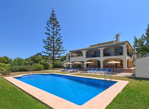 Binnen vinden we lichte en ruime gemeenschappelijke ruimtes met veel houten luiken en comfortabele banken in opvallende trendy kleuren (geel en groen) die uitnodigen tot gezellige uurtjes voor de tv of het lezen van een goed boek. Woonaccessoires zoals moderne houten beelden benadrukken het moderne karakter van deze villa. De moderne houten kitchenette is eenvoudig ruim, met slimme chroomcontrasten (fornuis en keramische kookplaat, vaatwasser, grote koelkast met vriesvak, broodrooster, koffiezetapparaat, enz.) De ronde glazen eettafel sluit hier naadloos op aan. In totaal bieden zeven slaapkamers plaats aan maximaal 12 personen, waardoor het een geweldig vakantiehuis is voor twee tot drie gezinnen of een grote groep reizende vrienden. De slaapkamers zijn ingericht in harmonieuze kleuren; hier vind je oranjebruine aardetinten, zacht paars en bloemmotieven. Gasten hebben tal van moderne badkamers (met douche en/of bad) tot hun beschikking, een belangrijk comfort tijdens je vakantieverblijf.