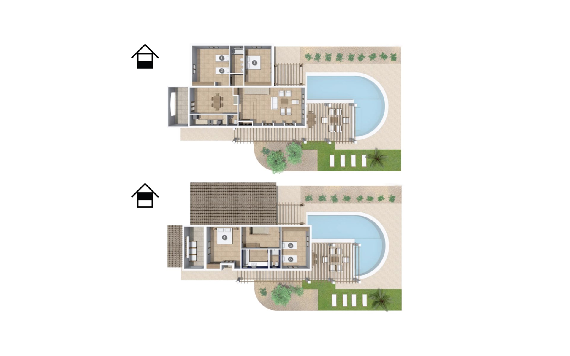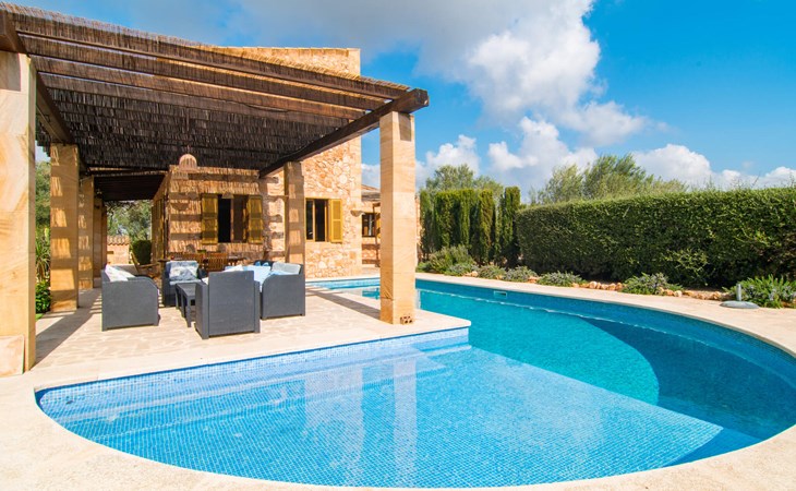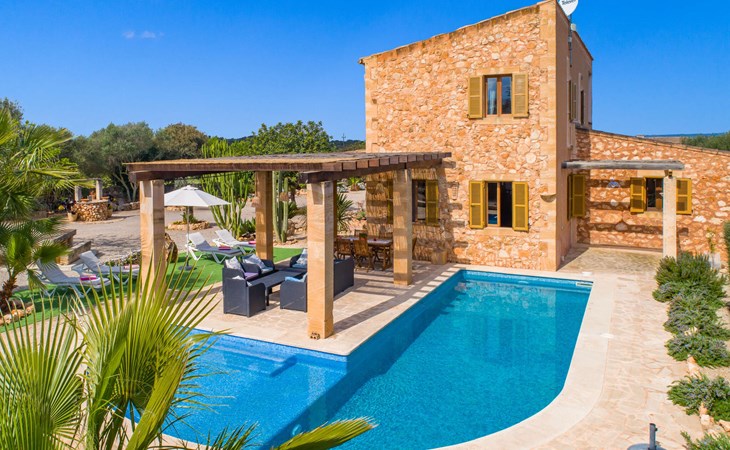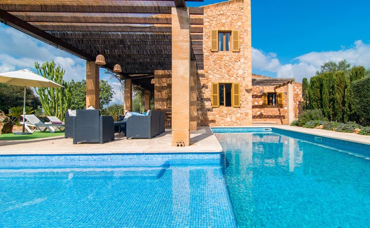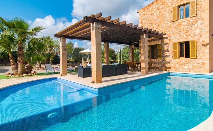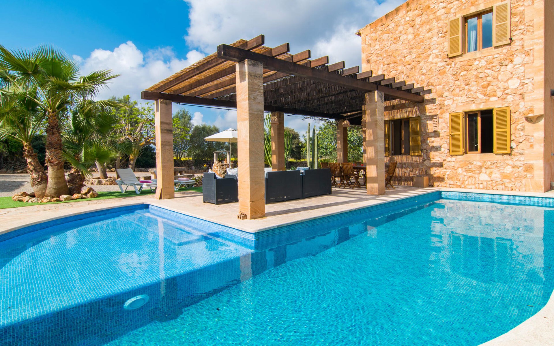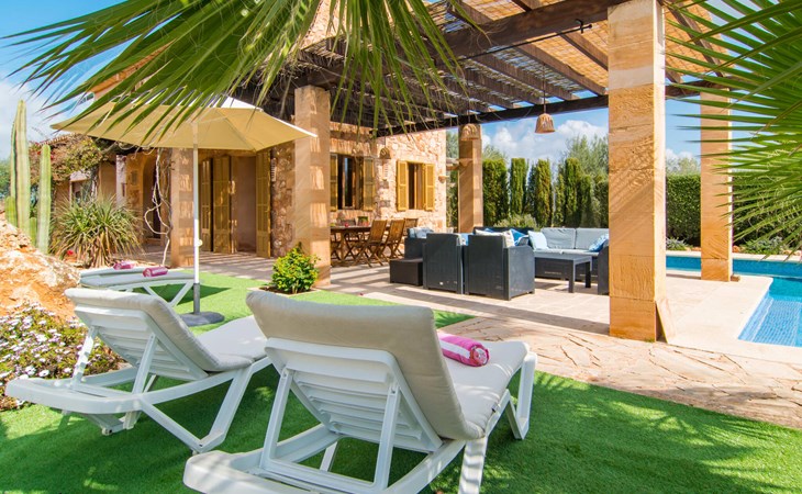 Je zou bijna geloven dat deze saffraankleurige mediterrane villawijk met zijn olijf-, vijgen- en johannesbroodbomen, palmbomen, cipressen en cactussen is ontstaan uit de vruchtbare grond van Campos zelf. Nieuw gebouwd in 2015, zo eerlijk, ongecompliceerd en zongerijpt als een goede wijn, een beetje sprankelend op sommige plekken en vol karakter, wekt zelfs de eerste smaak het verlangen naar meer. Een uniek halvemaanvormig zwembad rond het overdekte terras biedt al het water dat je nodig hebt voor je dagelijkse duik - een echte blikvanger! Hier kun je de dag gezellig afsluiten met een laat ontbijt, een tijdschrift of een glas wijn terwijl de kinderen veilig rondspetteren. Je zou bijna kunnen spreken van een vakantie in een zwembad in plaats van bij het zwembad en je zou in de verleiding kunnen komen om vanuit een van de ramen direct in het koele water te springen (maar doe dat alsjeblieft niet, het is roekeloos en je zult jezelf bezeren). )... maar Ca Na Carmen zorgt ervoor dat je je hoofd niet verliest.