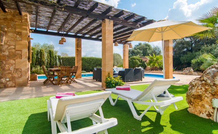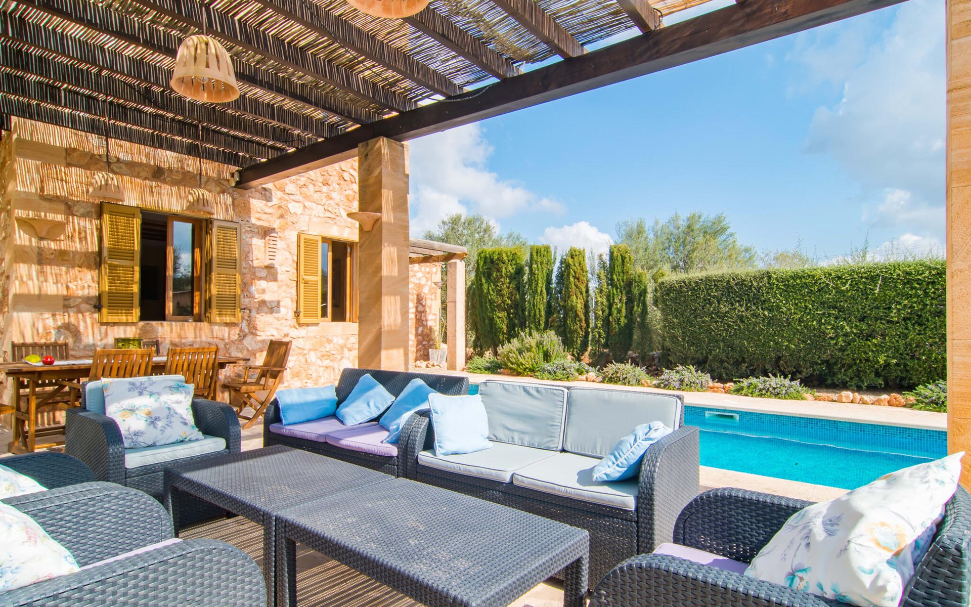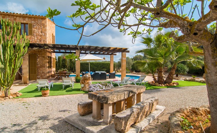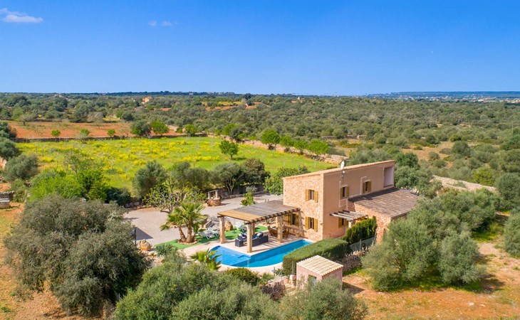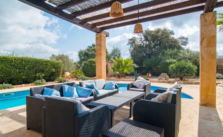 Op een volledig rustige, landelijke locatie en toch maar een paar kilometer langs de Ma-19 van het kleine dorpje Campos met winkelmogelijkheden en een supermarkt, wacht de Mediterrane Villa Ca Na Carmen op gasten die het zuiden van het eiland willen verkennen. Santanyi, Ses Salines en Colònia de Sant Jordi op het puntje van het eiland zijn nog niet overspoeld door toeristen en bieden prachtige natuurlijke zandstranden zoals Es Trenc of de kleine Cala Santanyi en indrukwekkende kustwandelingen.