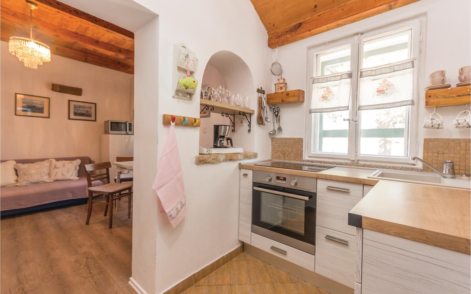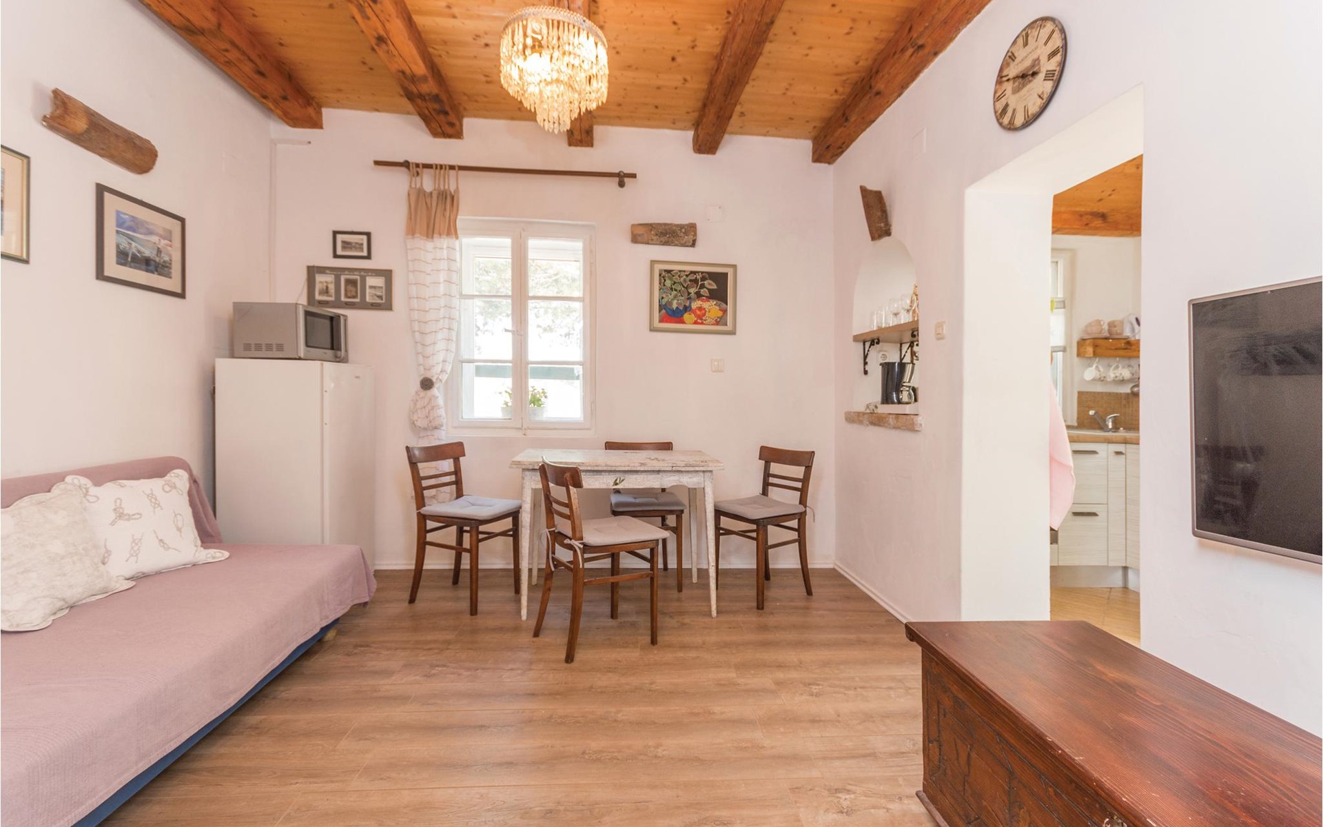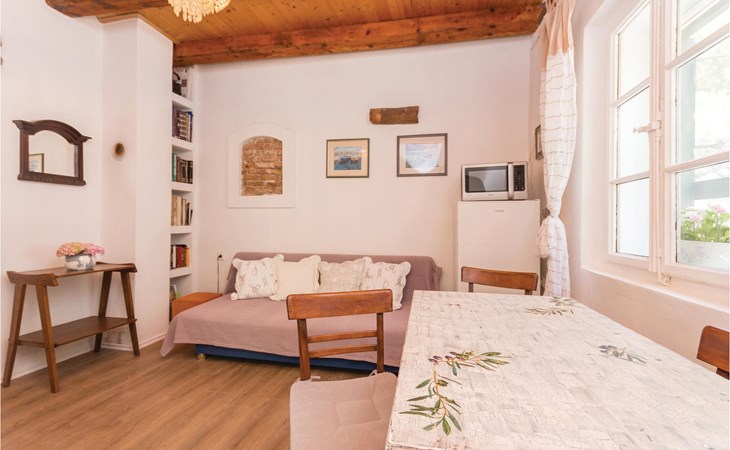 Hier woon je op een steenworp afstand van de zee. Geniet van het prachtige uitzicht op zee vanuit de grote tuin. Er is een buitenbarbecue achter in de tuin, evenals ligstoelen en schaduwrijke bomen. In het huis vind je een keuken, een eethoek en een woonkamer met directe toegang tot de slaapkamer. Alleen een gordijn scheidt deze kamer van de woonkamer. drelac is door een brug verbonden met het eiland Ugljen en het heldere water, de mooie stranden, interessante duik- en windsurfplekken, fietspaden en hardlooppaden maken deze bestemming zeer aantrekkelijk voor een zomervakantie.