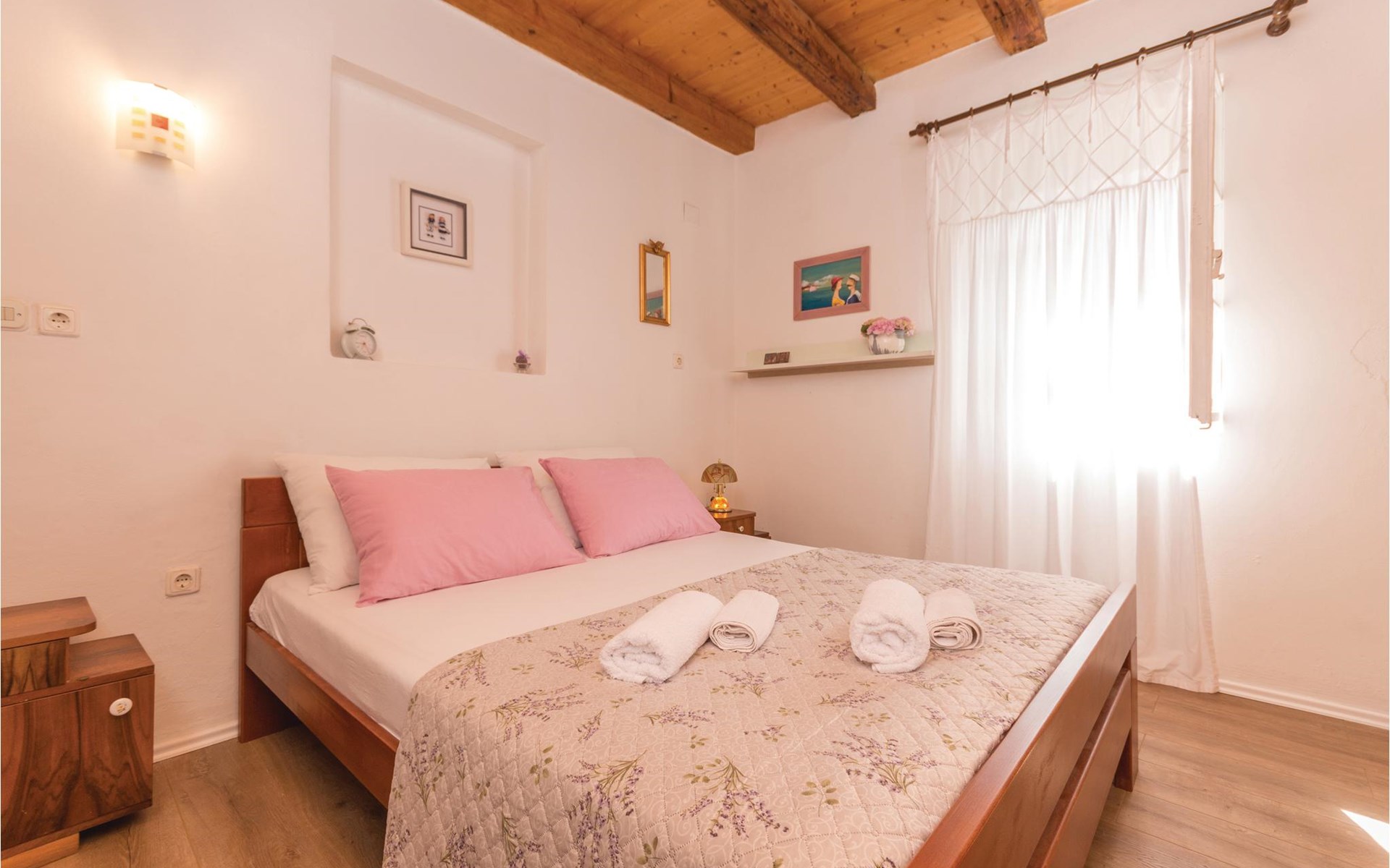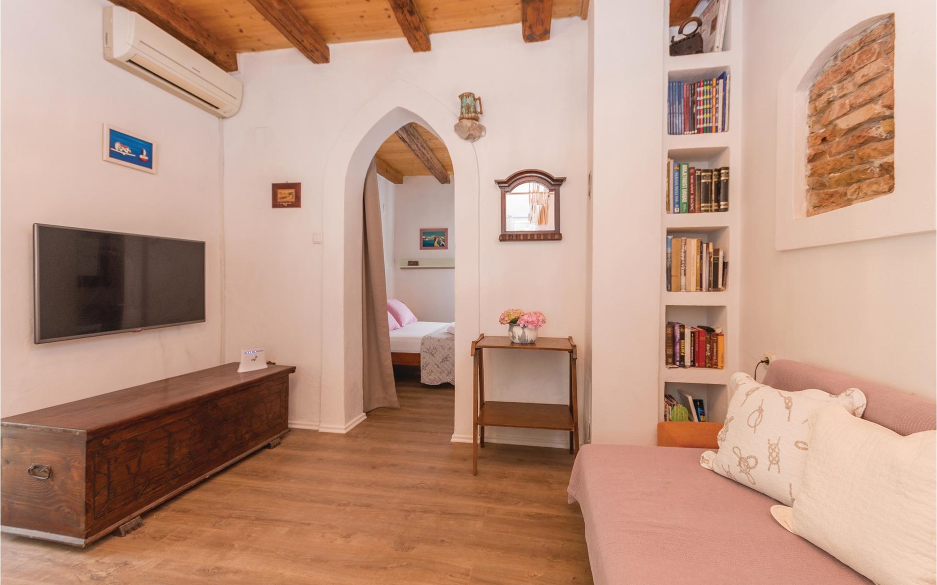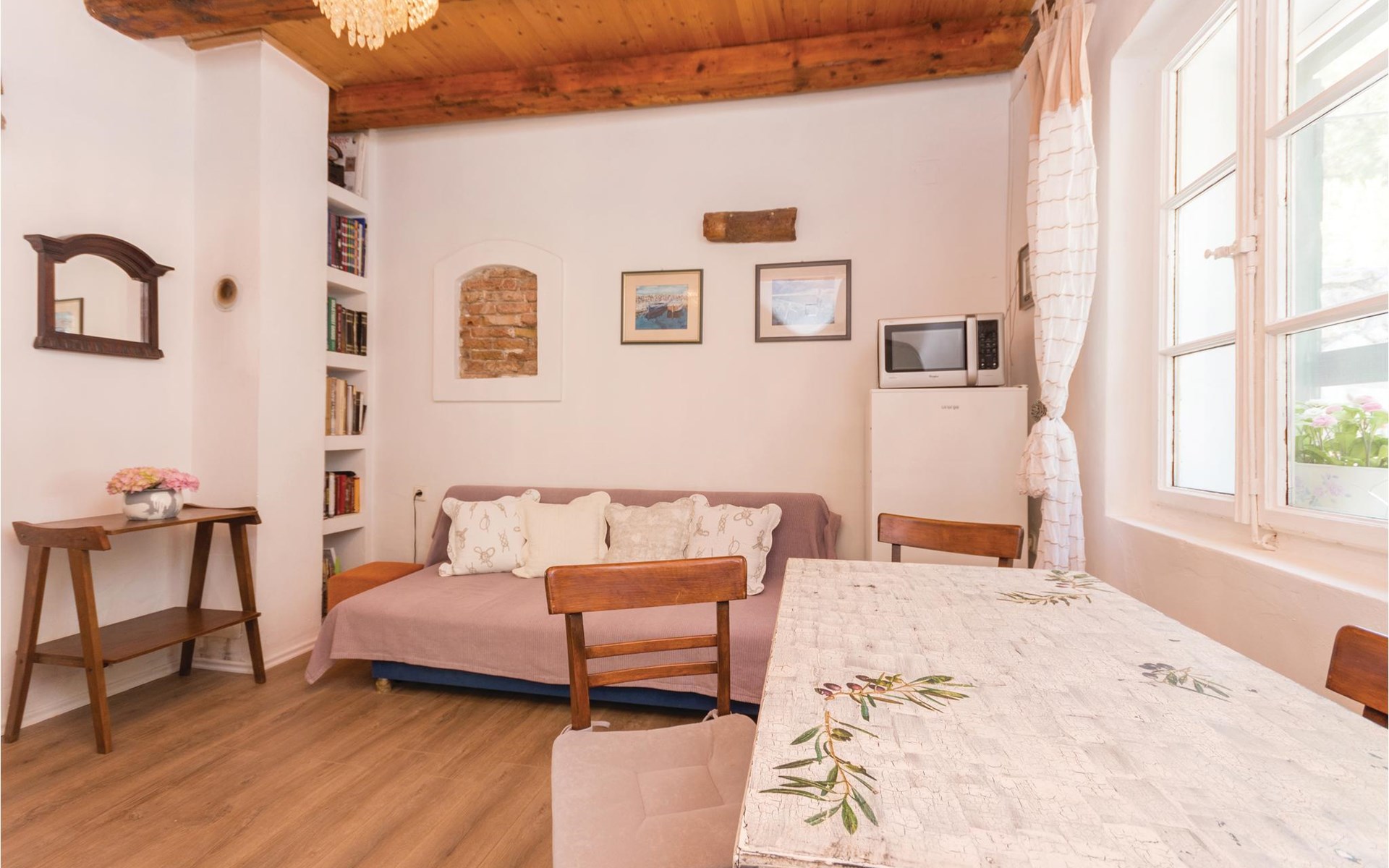 Hier woon je op een steenworp afstand van de zee. Geniet van het prachtige uitzicht op zee vanuit de grote tuin. Er is een buitenbarbecue achter in de tuin, evenals ligstoelen en schaduwrijke bomen. In het huis vind je een keuken, een eethoek en een woonkamer met directe toegang tot de slaapkamer. Alleen een gordijn scheidt deze kamer van de woonkamer. drelac is door een brug verbonden met het eiland Ugljen en het heldere water, de mooie stranden, interessante duik- en windsurfplekken, fietspaden en hardlooppaden maken deze bestemming zeer aantrekkelijk voor een zomervakantie.