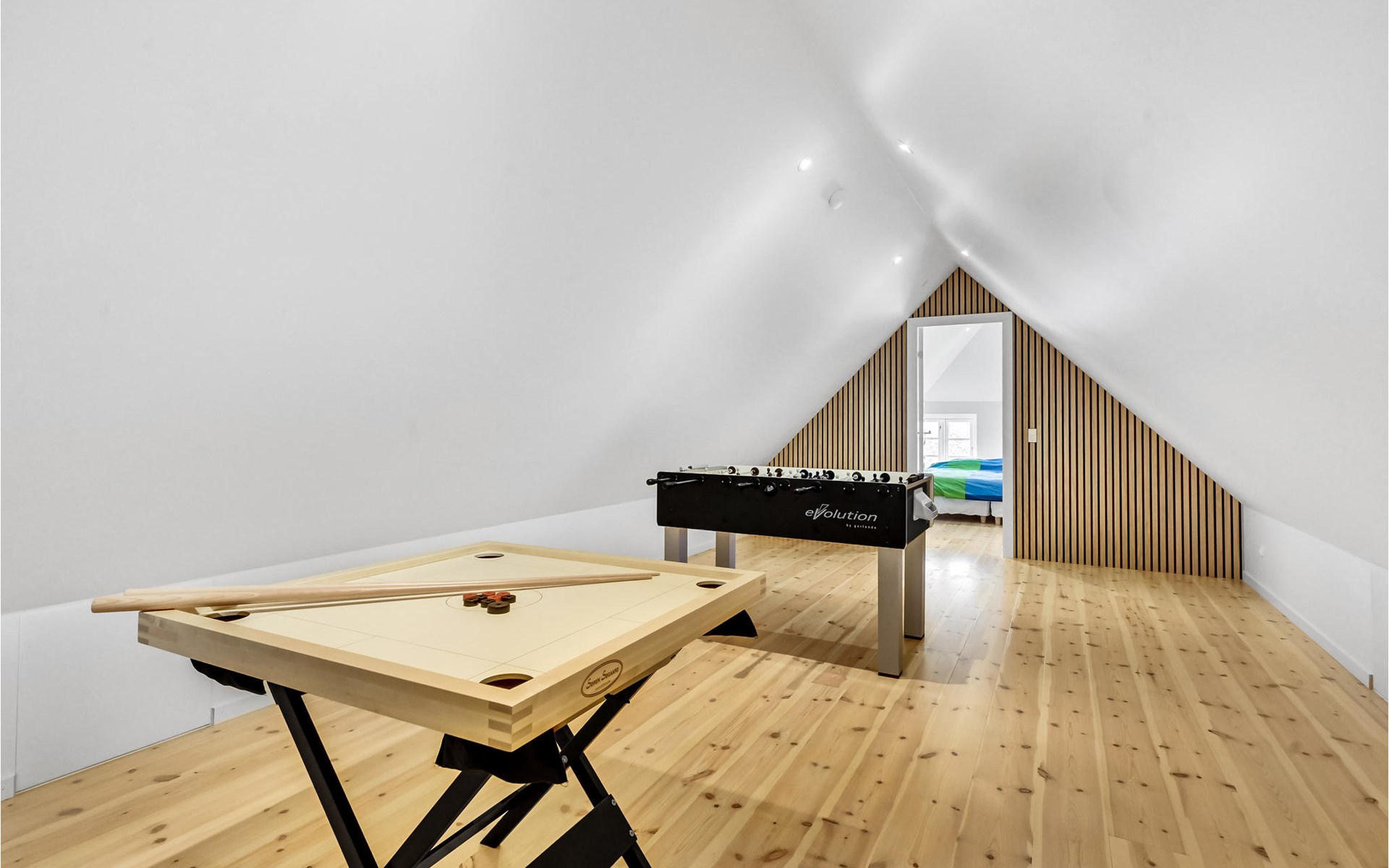 De lichte keuken staat in open verbinding met de eetkamer en de woonkamer met pelletkachel. Op de begane grond vindt u vloerverwarming, een goed uitgeruste keuken en een mooie leefruimte voor gezelschapsspellen. De badkamer zal u verrassen met een whirlpool om in te ontspannen. Via de trap bereikt u de zolder, met activiteitentafels en een tv-hoek.