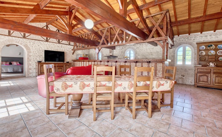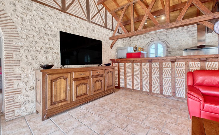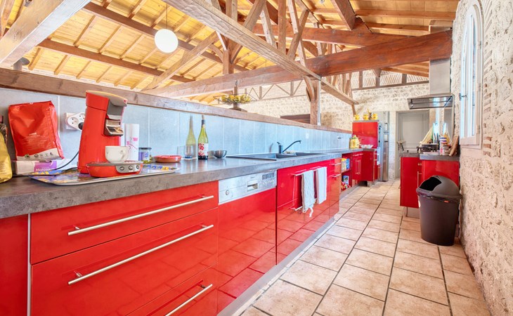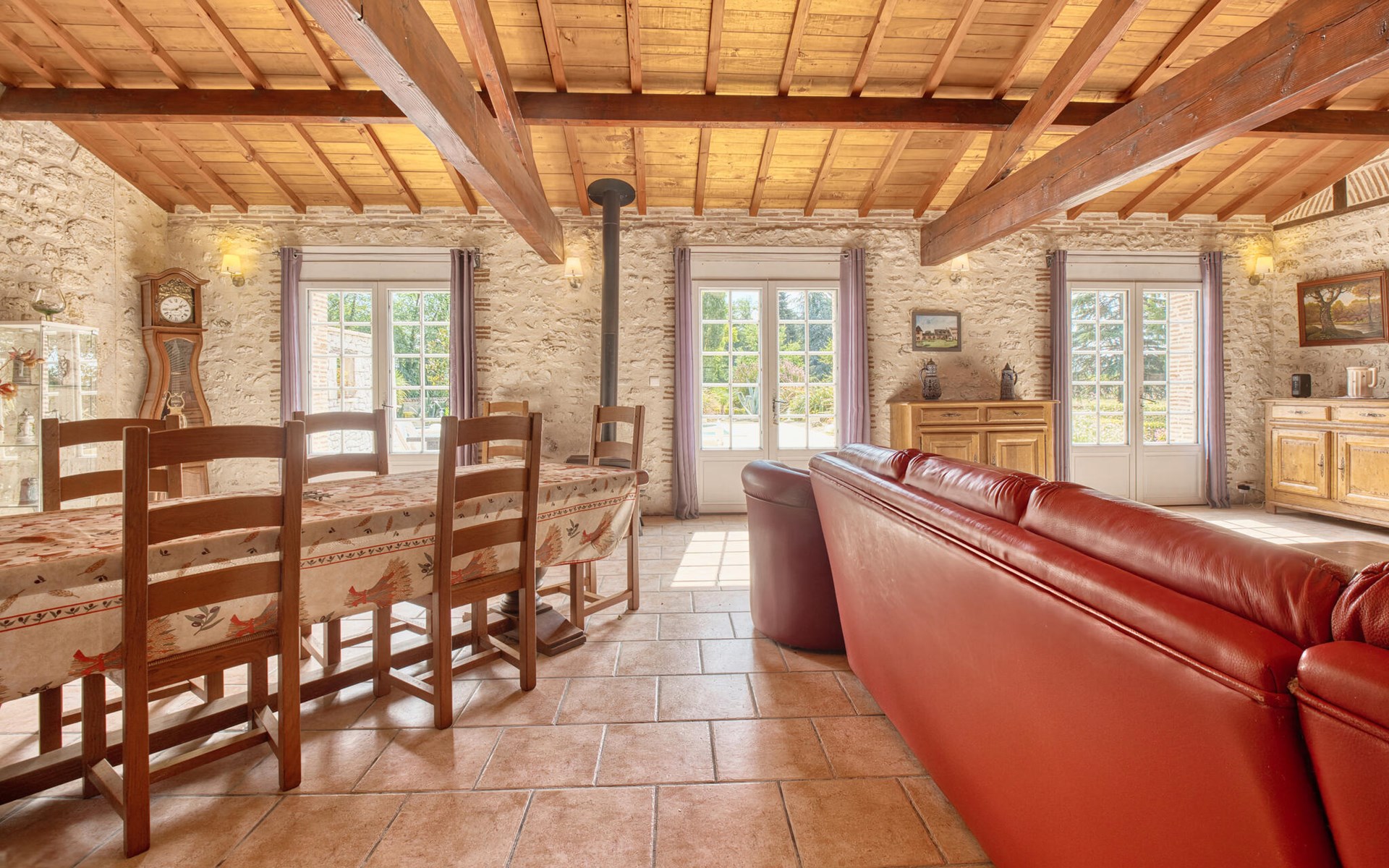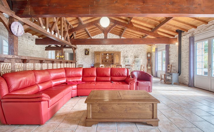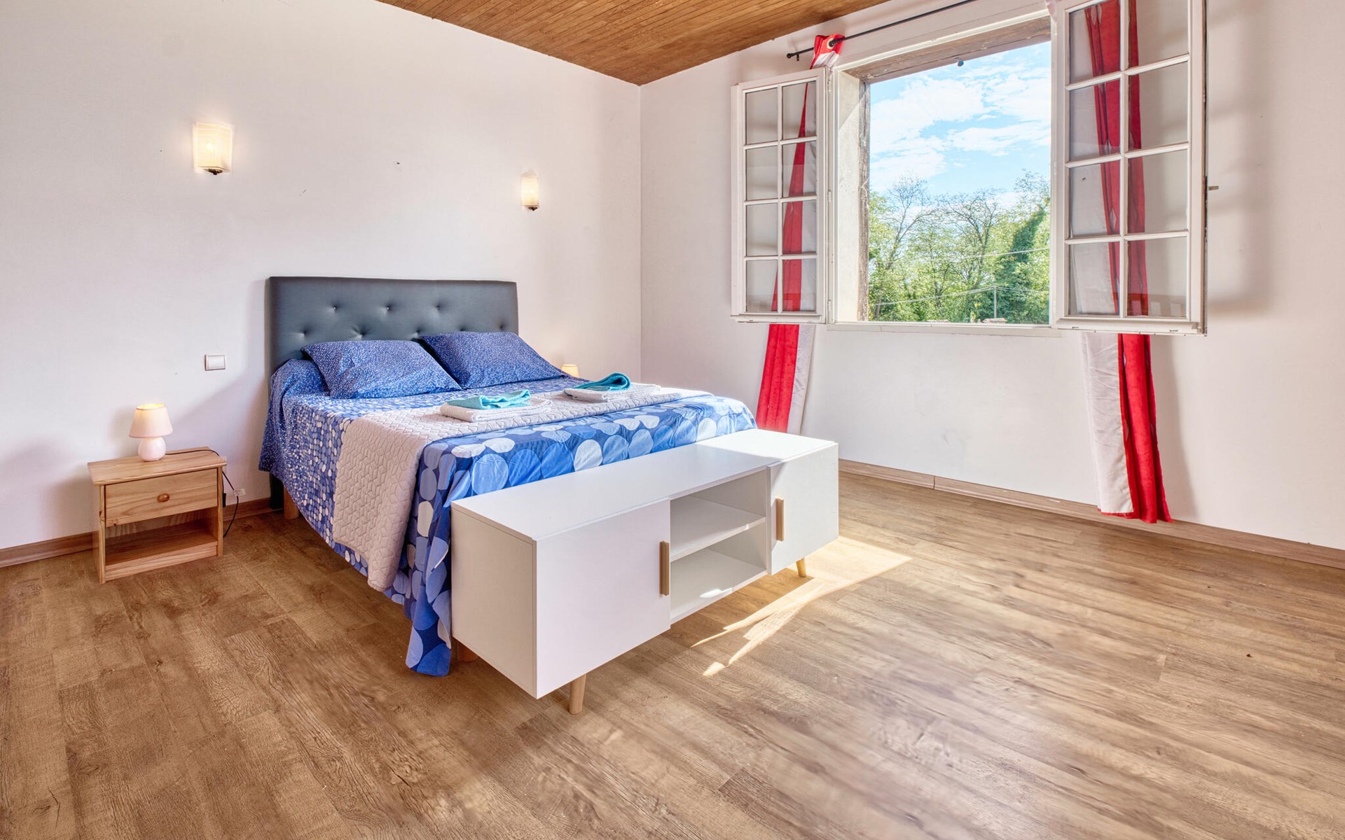 Dit huis combineert historische charme met hedendaags comfort. Natuurstenen muren, rustieke houten balken en rode luiken geven het een authentieke flair die de geschiedenis van het gebouw voelbaar maakt. Het ruime interieur met open balken, een comfortabele zithoek en meubels in landelijke stijl nodigen je uit om te ontspannen en nieuwe energie op te doen.
