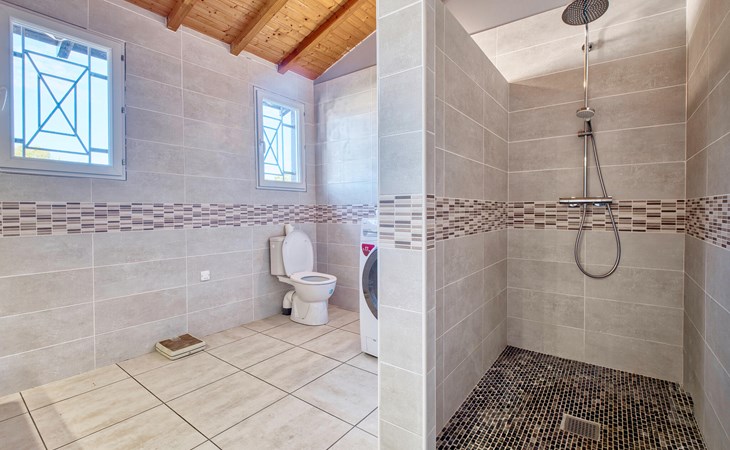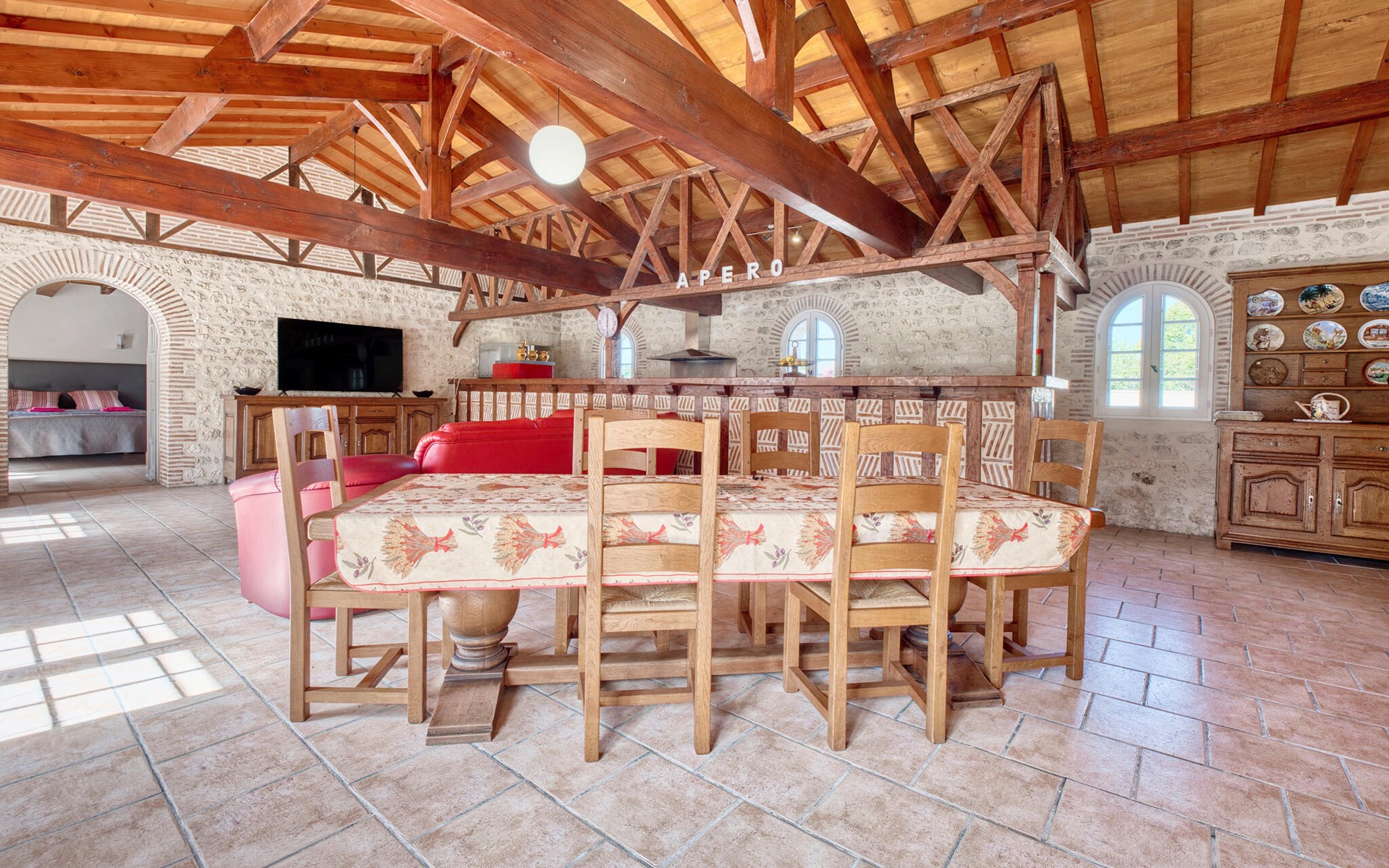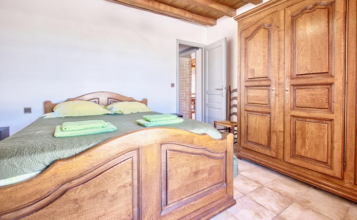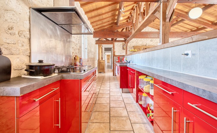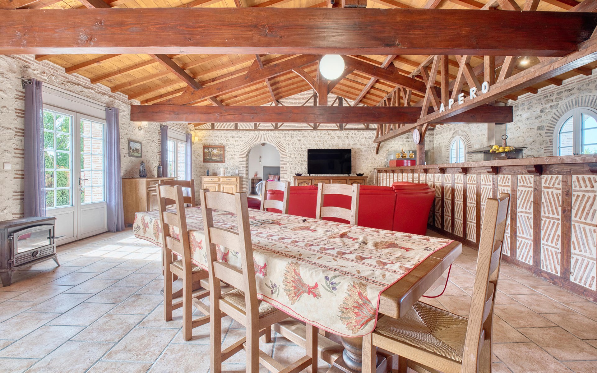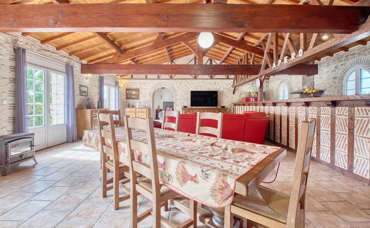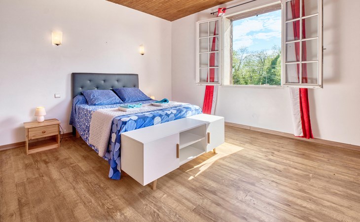 Dit huis combineert historische charme met hedendaags comfort. Natuurstenen muren, rustieke houten balken en rode luiken geven het een authentieke flair die de geschiedenis van het gebouw voelbaar maakt. Het ruime interieur met open balken, een comfortabele zithoek en meubels in landelijke stijl nodigen je uit om te ontspannen en nieuwe energie op te doen.