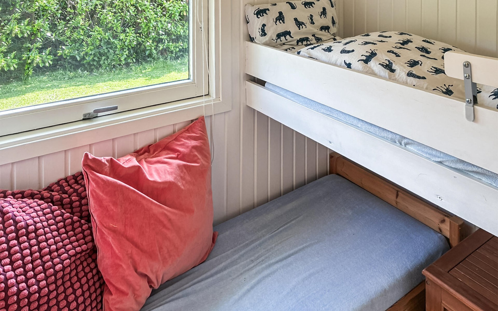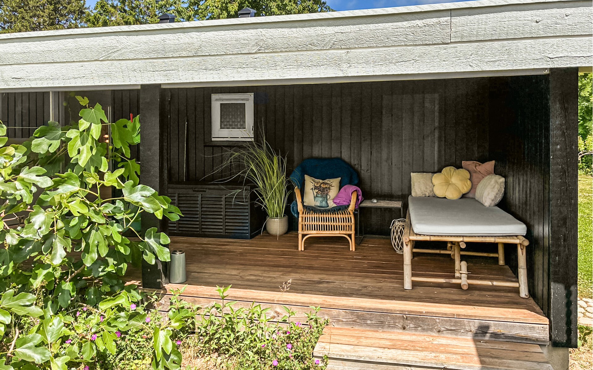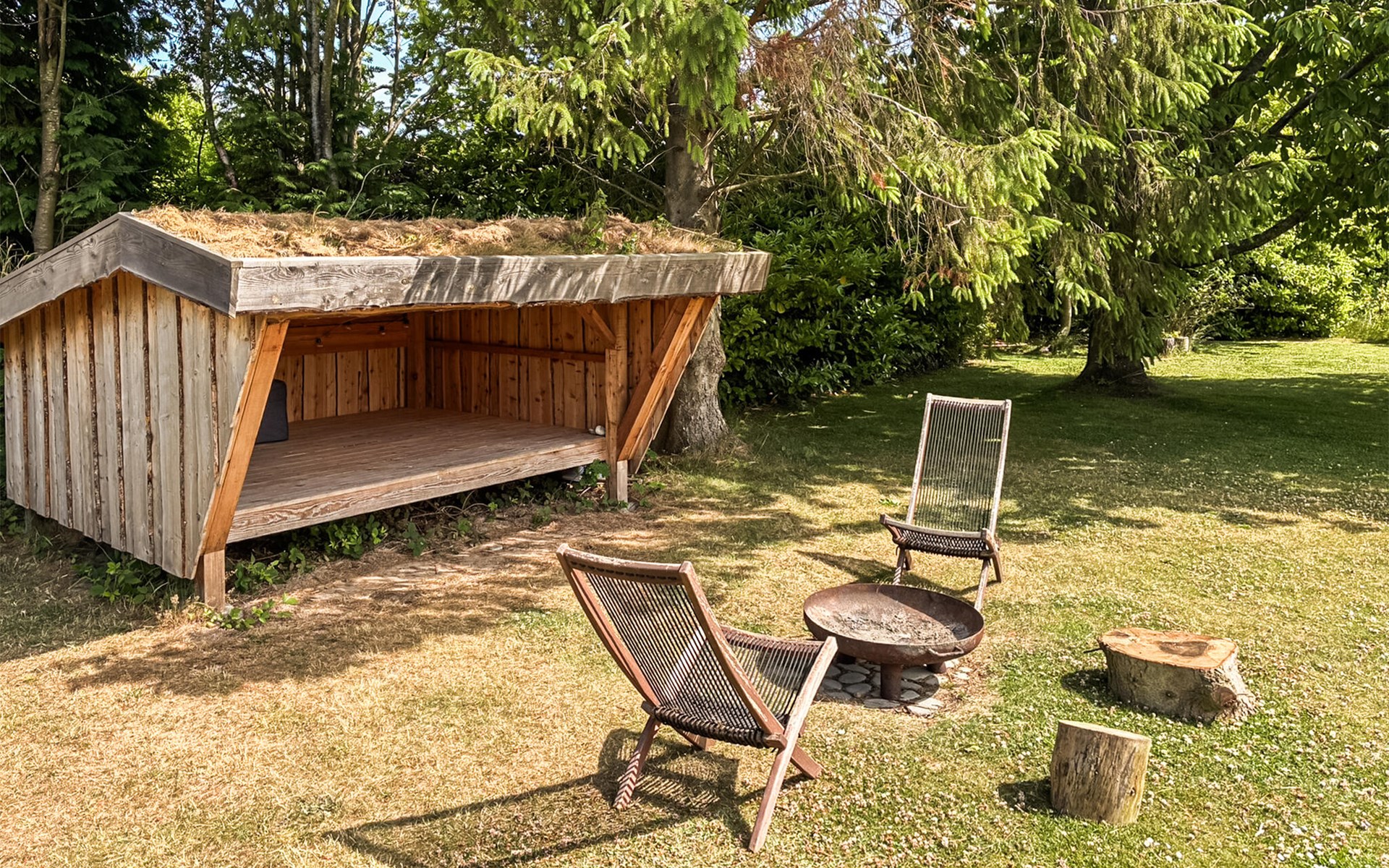 Serveer op zonnige dagen een heerlijk ontbijt in de schaduw van de bomen en laat je jonge gasten zich vermaken op het ruime gazon. Als het regent, maak het jezelf gemakkelijk in het knusse afdak met een boek en gebruik de vuurplaats voor sfeervolle avonden onder de sterren.