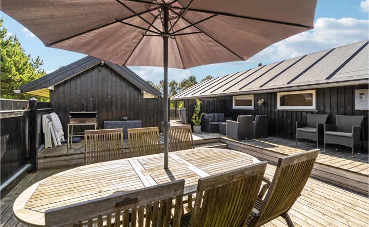 Dit mooie vakantiehuis ligt op een groot natuurgrondstuk met gazon en in een van de mooiste gebieden van Blåvand. Want het ligt dicht bij het witte, kilometerslange zandstrand en het uitgebreide winkelcentrum. Het huis is door en door gezellig en vol kwaliteit. De ruime keuken-woonkamer vormt een prachtige eenheid. Naast de drie slaapkamers is er ook een alkoof in het woongedeelte. De terrassen bij het huis zijn volledig afgesloten en vooral veilig voor kleine kinderen. Niet alleen hier maar ook op de grond kunnen ze goed spelen. Naast luieren op het strand kunt u ook surfen, minigolfen en prachtige 18-holes golfbanen verkennen.