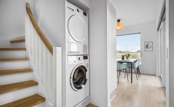 Verheug je op een bijzondere vakantie in West-Zeeland, waar deze eersteklas vakantiewoning op je wacht. Het verwelkomt je op twee verdiepingen en biedt je een prachtig uitzicht op de brede, blauwe Grote Belt. Naast een goede indeling met elegante slaapkamers en aangename gemeenschappelijke ruimtes, vind je in de hele flat goede faciliteiten. Voel je hier thuis, geniet van de lichte sfeer en leg je voeten omhoog.