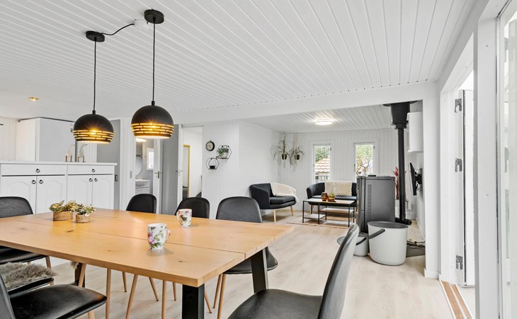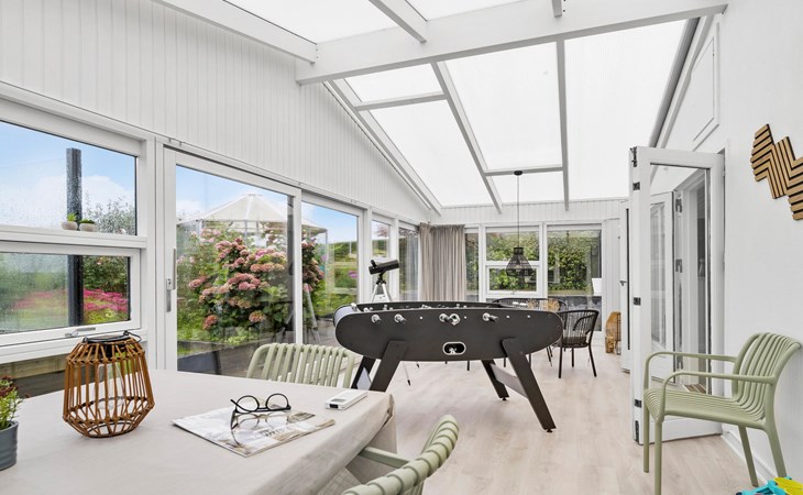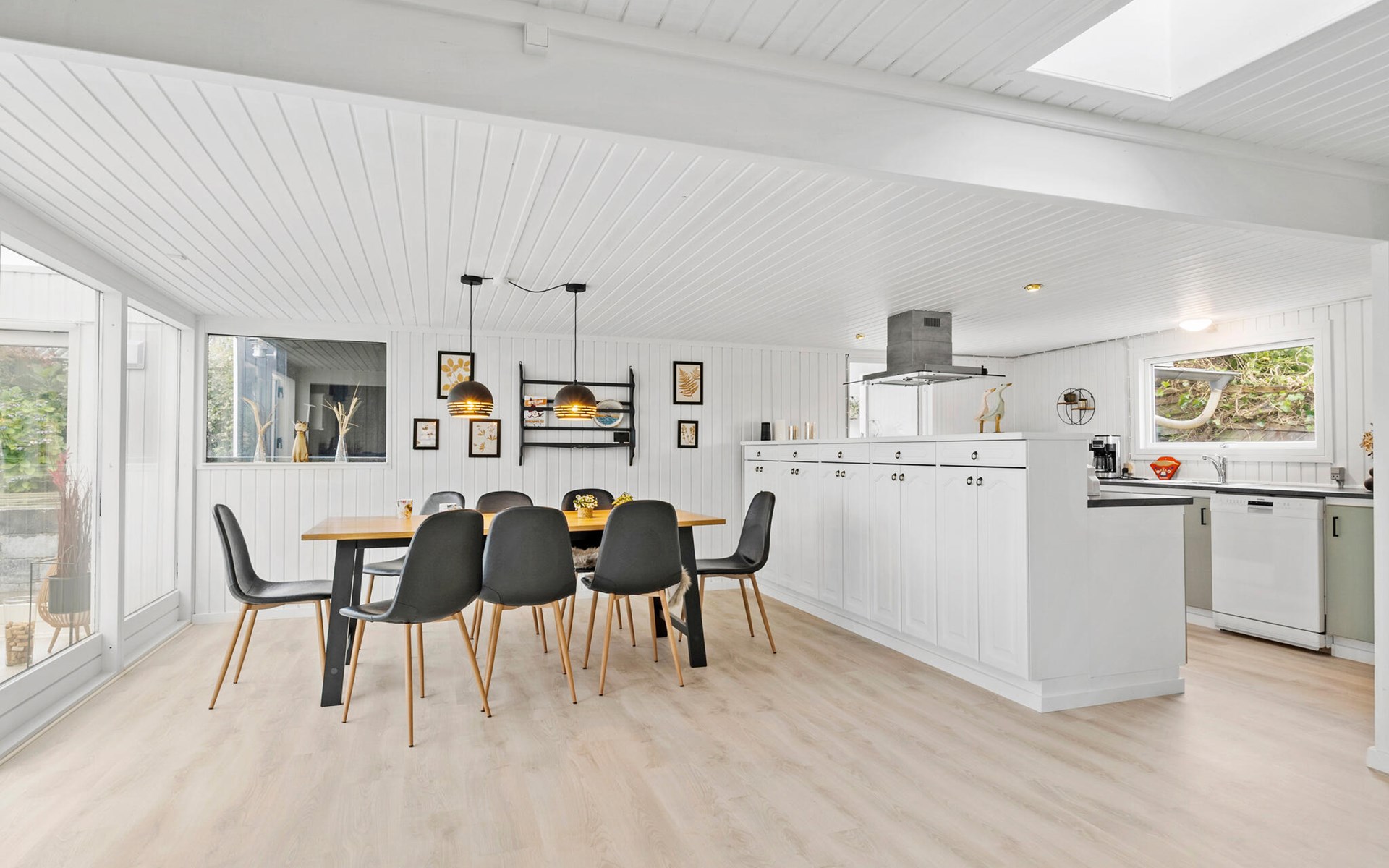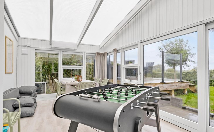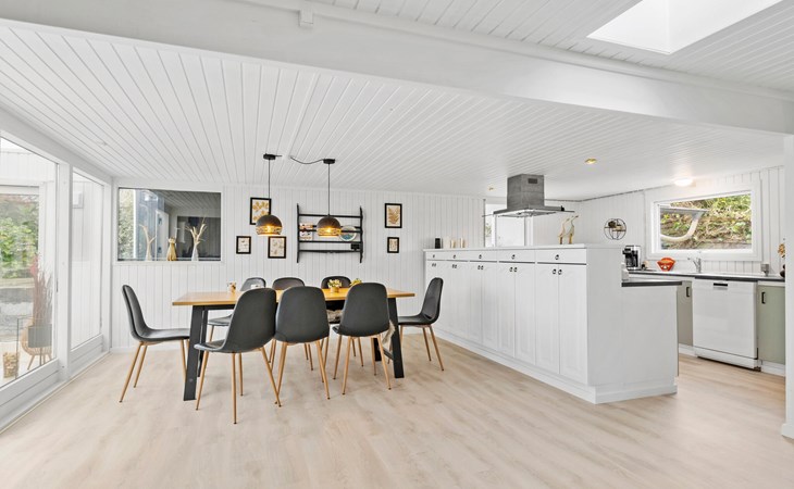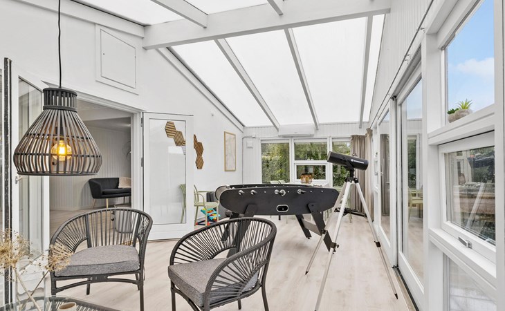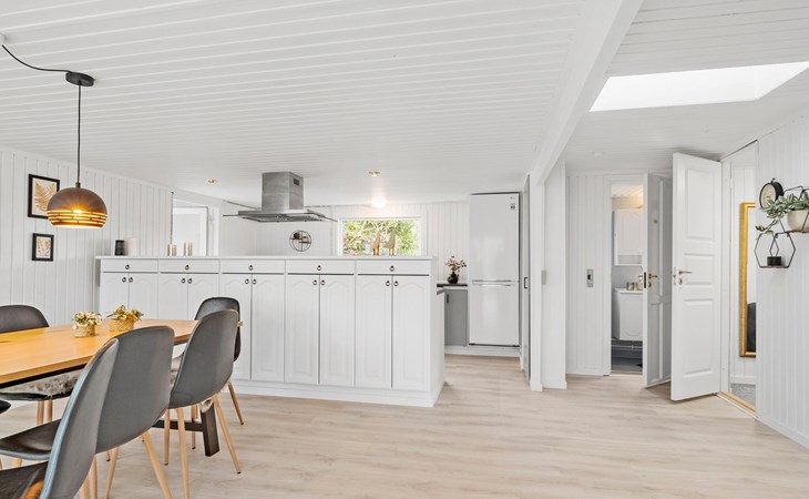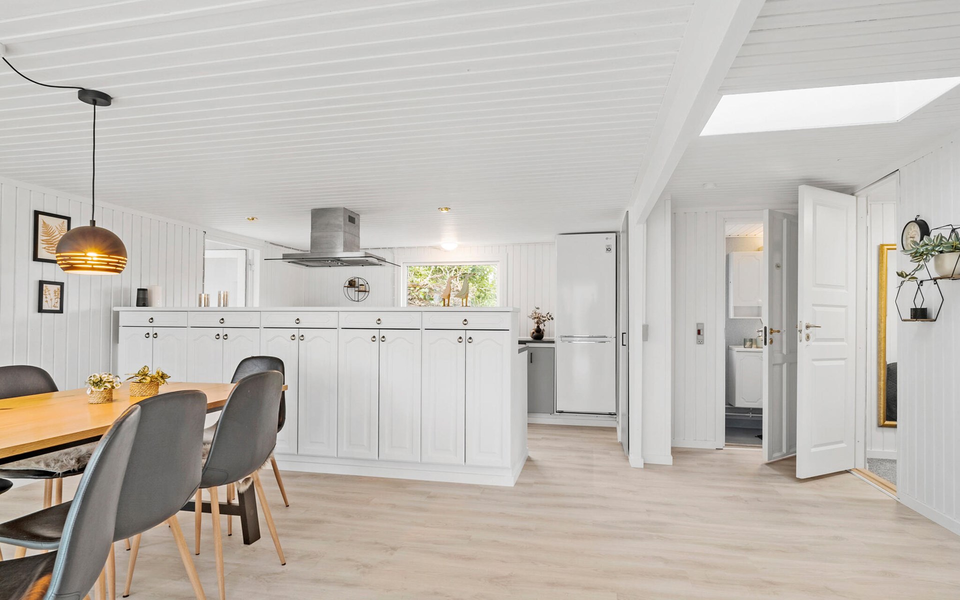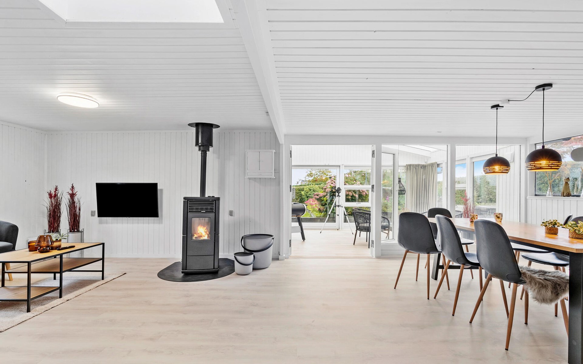 Breng een heerlijke vakantie door in dit gemoderniseerde vakantiehuis in Sandersvig, omgeven door een idyllisch landschap en op slechts een korte wandeling van het strand. Het huis maakt indruk met zijn lichte, vriendelijke interieur en biedt veel ruimte om te ontspannen en samen tijd door te brengen. Geniet van gezellige avonden in de open woonkamer met open haard, die een warme sfeer creëert, vooral op koelere dagen. Gebruik de tafelvoetbaltafel in de gezellige serre om gezellig een spelletje te spelen met het gezin. De moderne, goed uitgeruste keuken maakt het je gemakkelijk om heerlijke maaltijden te bereiden, waarvan je vervolgens kunt genieten aan de ruime eettafel.