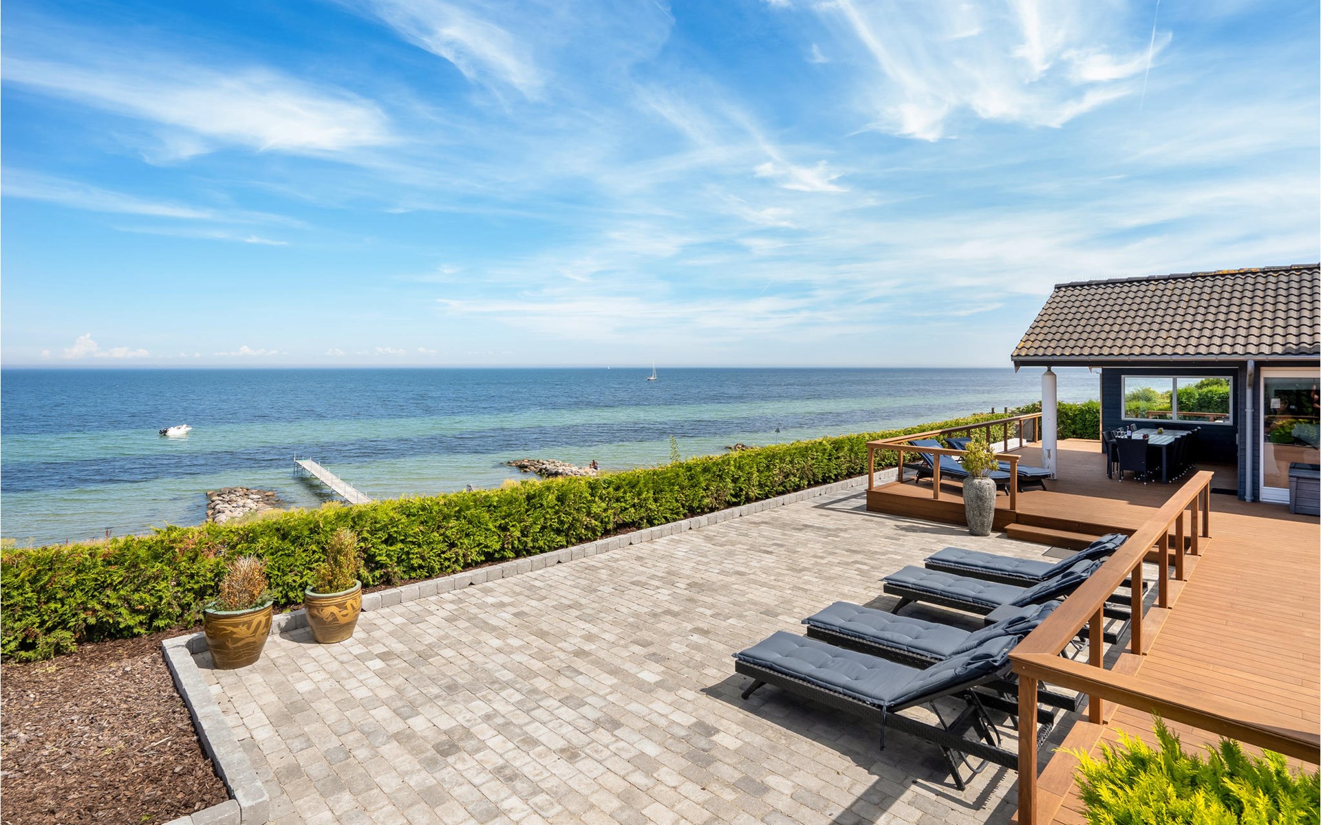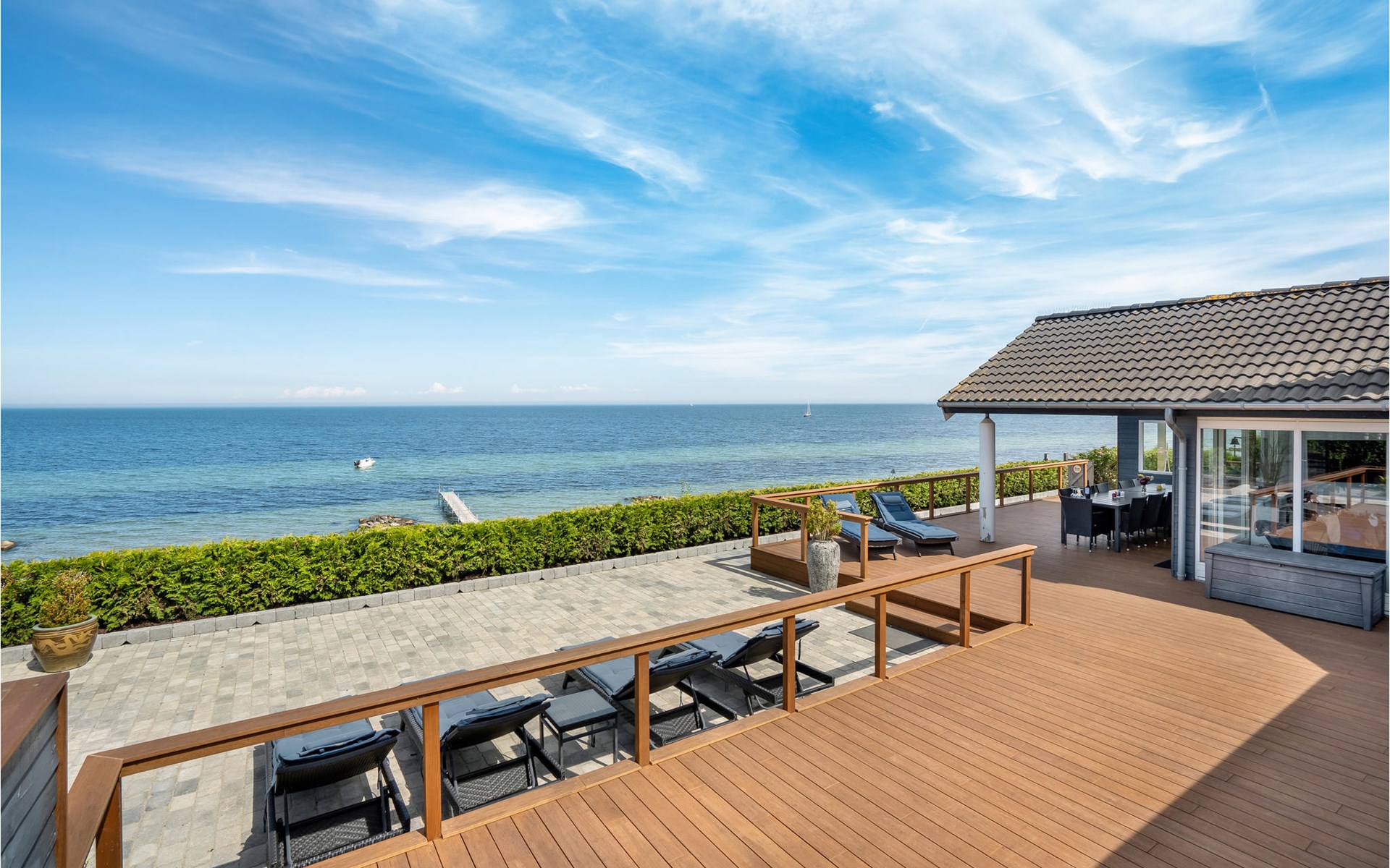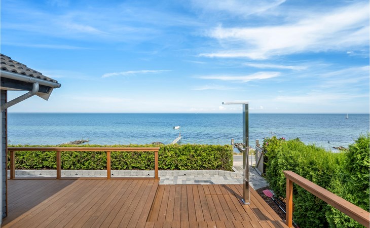 In de eerste rij op Strøby Ladeplads, met het mooiste uitzicht op de baai van Køge, wacht dit geweldige vakantiehuis op u. Het is verbouwd in 2016, met een grote slaapkamer en en-suite badkamer in open verbinding. Vanaf hier heeft u toegang tot het grote terras, waar u kunt genieten van het prachtige uitzicht. Het huis is ingericht met comfortabele meubels en alles wat u verder nodig heeft op vakantie. Verwarmd paviljoen met uitzicht op het water. Grote open haard met veel zitplaatsen.
