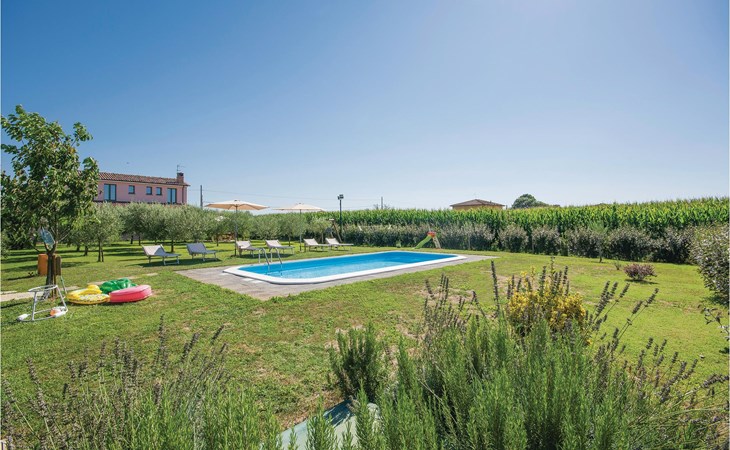 Vrijstaand vakantiehuis met privé zwembad en omheind buitenterrein van 1.500 m². Het huis ligt op het platteland tussen Lucca en Montecatini Terme, in een gebied langs de oude Via Francigena. Het ligt op ongeveer 6 km van Montecatini Terme, 19 km van Pistoia, 25 km van Lucca, 41 km van Pisa, 49 km van Florence, 51 km van Viareggio. Diverse diensten in de buurt: 2 km tennisbaan, 6 km manege, 7 km spa's, 11,6 km golfbaan, 49 km gratis en uitgeruste stranden (in Versilia, Viareggio, Torre del Lago Puccini). Vanuit het huis en de buitenruimte ziet u in de verte de heuvels en bergen van de Toscaanse Apennijnen. De eigen landelijke en beboste tuin is uitgerust met spelletjes voor kinderen (glijbaan en schommel) en tuinmeubelen om buiten te eten. Mogelijkheid tot vissen in een nabijgelegen sportmeer (5 km) en een bezoek aan de Padule di Fucecchio (11 km), een oase van wildlife van ongeveer 2.000 hectare, met uitgeruste uitkijkposten. Het huis ligt op een groter terrein dat ook het huis van de eigenaar en enkele ruimtes voor agrarisch gebruik omvat.