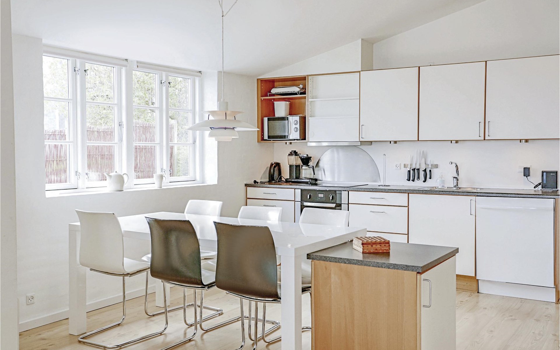 Charmant en dicht bij de rotskust van Bornholm gelegen vakantiehuis met uitzicht op zee. Het was oorspronkelijk een echte Bornholmse rokerij en is volledig gerenoveerd en ingericht met mooi en modern meubilair. Alleen de oude schoorstenen zijn nog origineel. Dit juweeltje van een vakantiehuis herbergt een open keuken, een mooie eetkamer en een zeer gezellig ingerichte woonkamer. De twee mooie badkamers hebben vloerverwarming. De slaapkamers hebben bedden en beddengoed van hoge kwaliteit. U kunt van uw ontbijt genieten op het mooie oostelijke terras voor de keuken. Er zijn goede zwemmogelijkheden en een kindvriendelijk strand op slechts 900 m van het huis. Aangename wandelpaden langs de kust en een idyllische jachthaven zijn ook niet ver weg. Als u van vissen houdt, vindt u zeer goede visgronden in de directe omgeving van dit luxe huis.