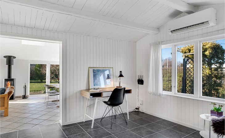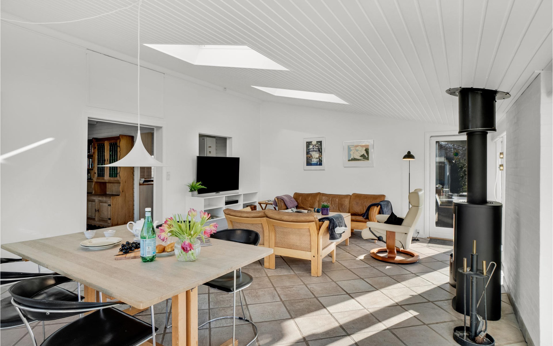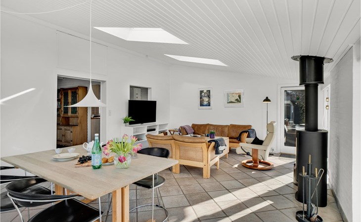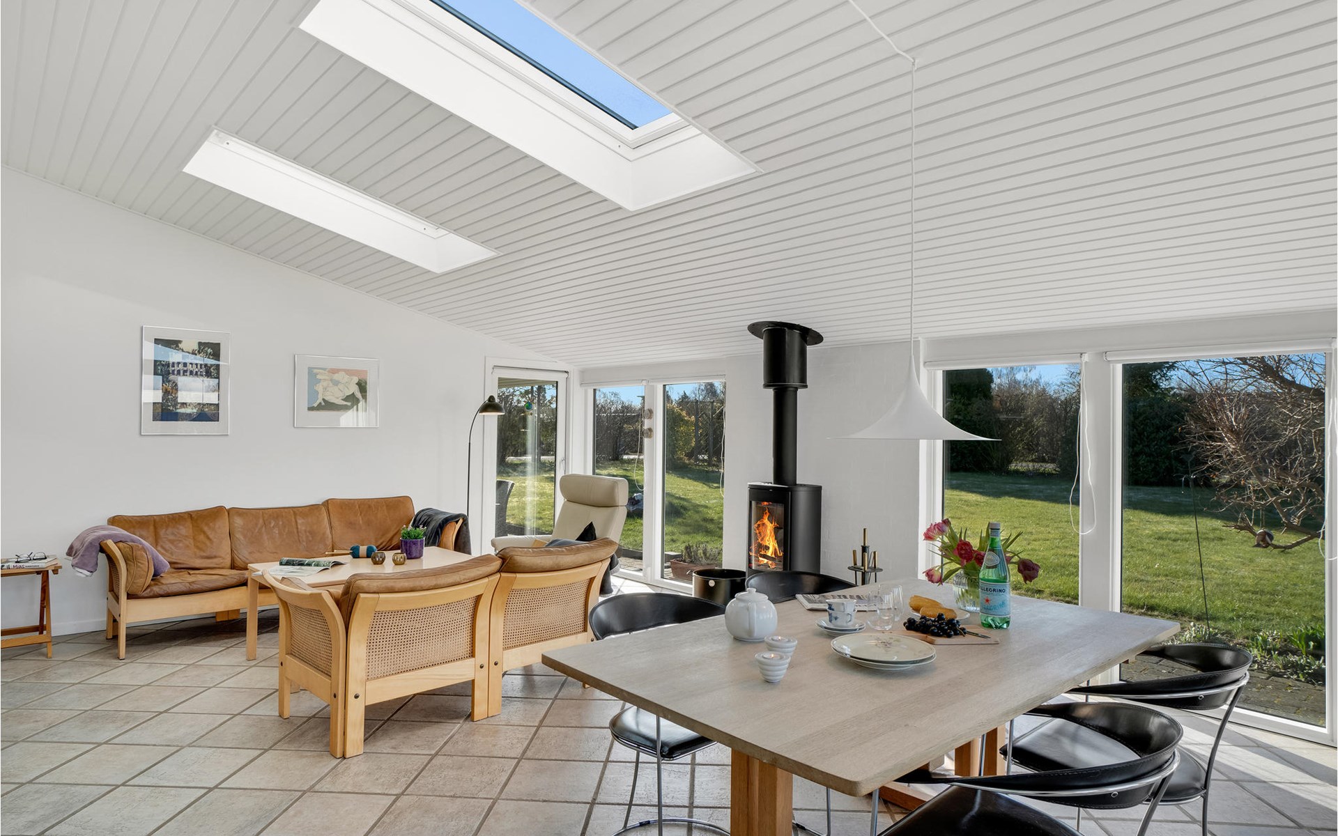 Maak het uzelf met het hele gezin gemakkelijk in de aantrekkelijke kamers van het huis, waar de lichte inrichting en het mooie natuurlijke licht een huiselijke, stijlvolle uitdrukking geven. Geniet samen van de maaltijden voor de ramen van vloer tot plafond, hier voelt het bijna alsof u in de tuin zit. Kijk na een actieve dag vol ontdekkingen in de omgeving uit naar gezellige avonden bij de open haard, die rustig zijn behaaglijke warmte knettert.