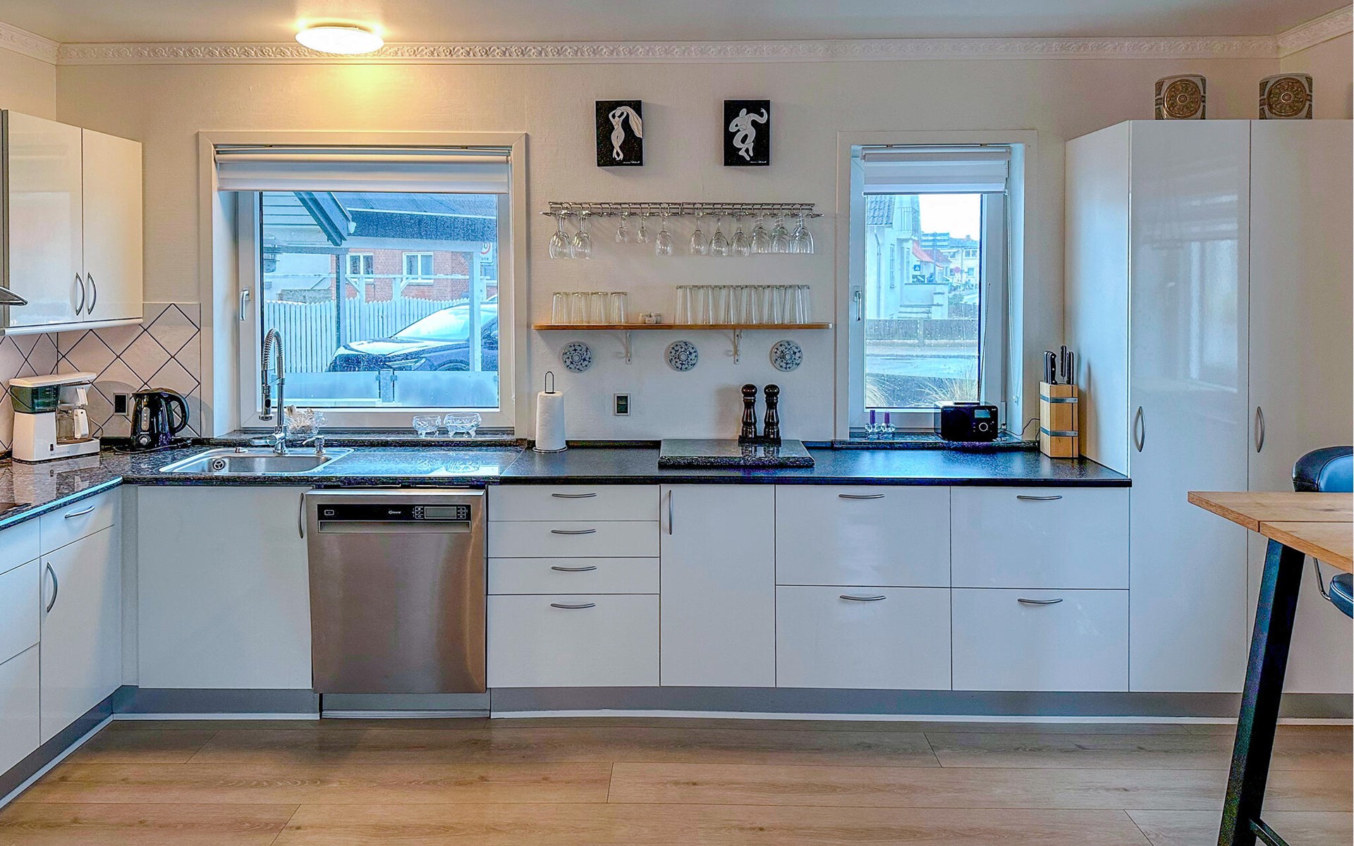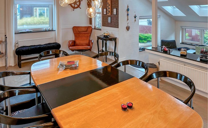 Kom als familie of groep vrienden naar dit authentieke vakantiehuis in Hvide Sande voor een fantastische vakantie. Ontspan in de stijlvol ingerichte kamers en geniet van de tijd met uw geliefden. Zit overdag in de zon op de binnenplaats of luister 's avonds naar het geknetter van de open haard als u met z'n allen de dag doorneemt. Door de vele leuke decor details en de ligging in de stad zult u zich snel als een local voelen.