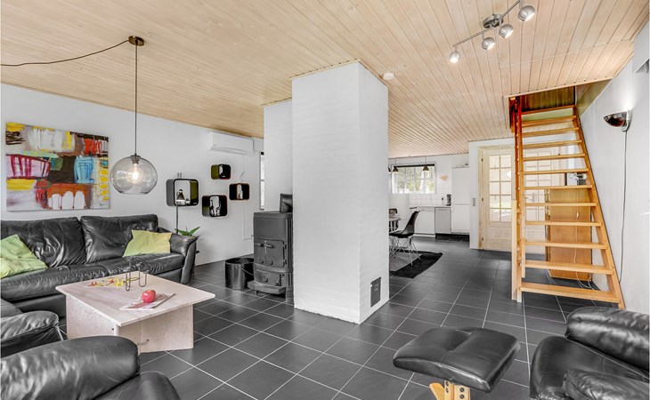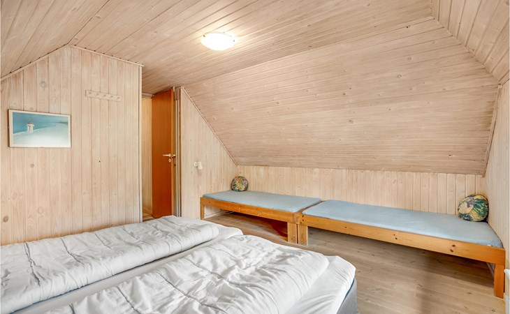 Op een groot natuurgrondstuk, midden in het mooie Husby, ligt dit mooie vakantiehuis met rieten dak. Het biedt een perfecte omgeving voor een goede vakantie met de familie. Het heeft een mooi terras en veel ruimte. Het zeer goed onderhouden huis bevat een grote keuken-woonkamer met een trap naar de eerste verdieping, waar zich drie goede slaapkamers bevinden. Als u graag in de natuur bent, is Husby een perfecte vakantiebestemming. Het prachtige kustbos is een waar paradijs met interessante flora en fauna. Ten noorden van Husby kunt u uw huisdier los laten lopen in een hondenbos, maar alleen zolang u hem onder controle houdt.