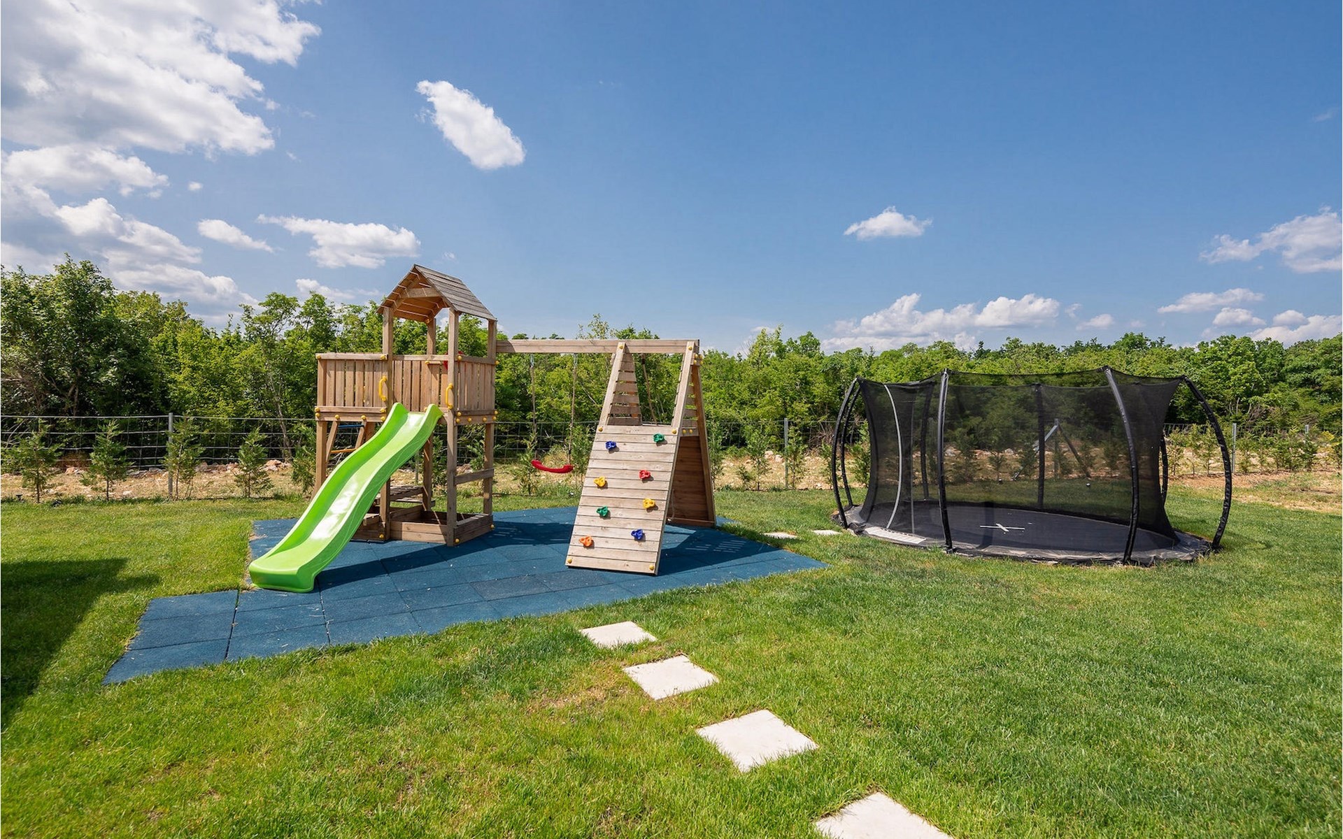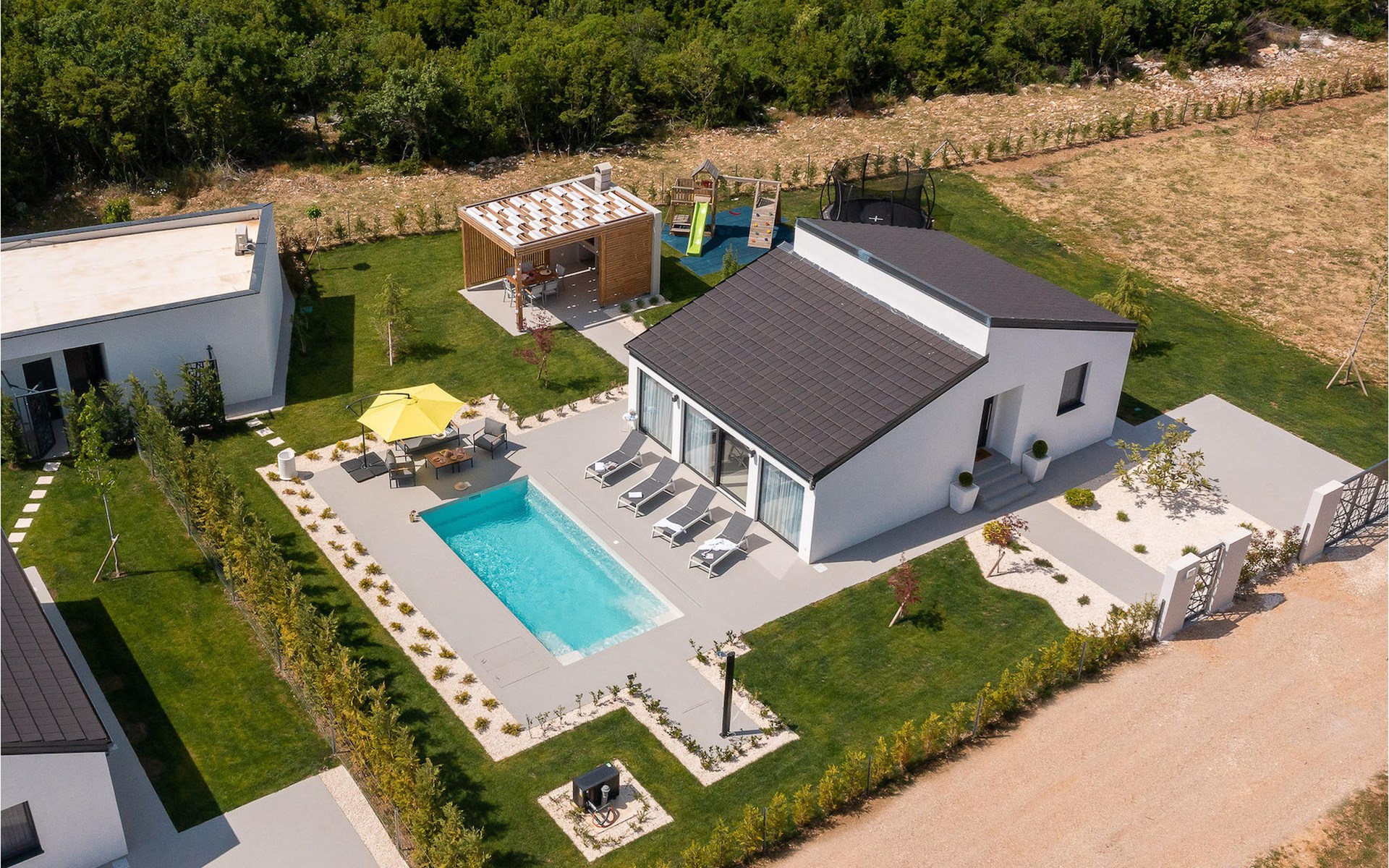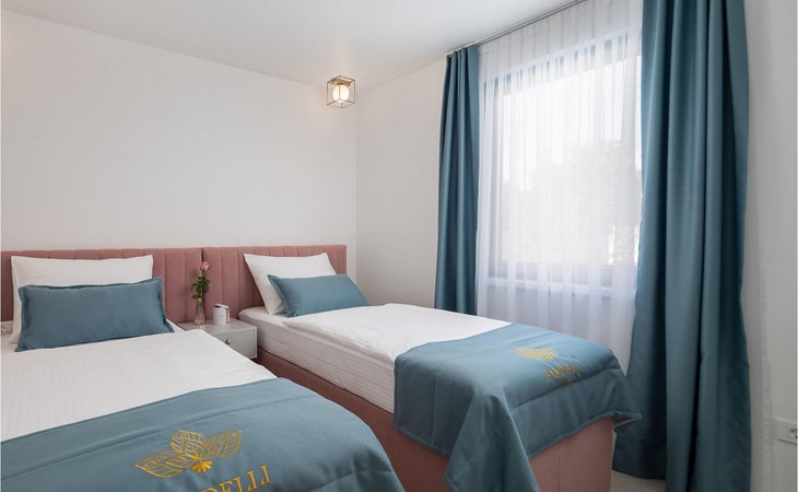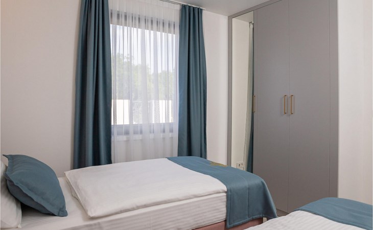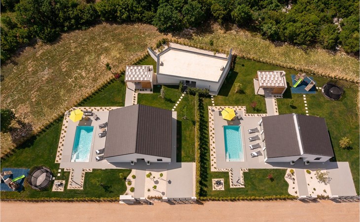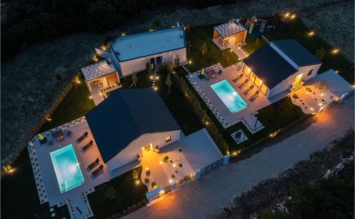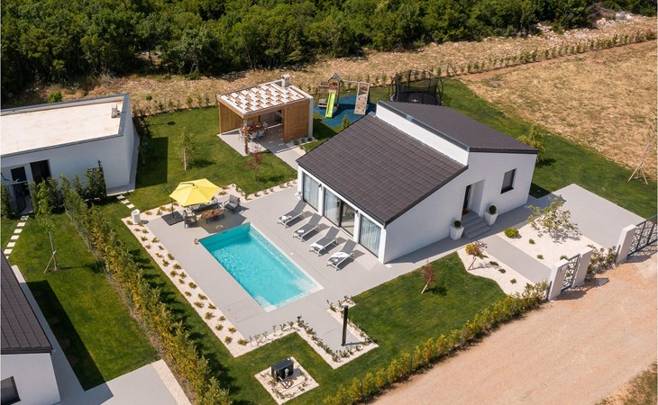 De villa heeft één verdieping. Je hebt de beschikking over twee slaapkamers. Eén kamer heeft een tweepersoonsbed, de andere heeft twee eenpersoonsbedden die kunnen worden samengevoegd tot een tweepersoonsbed. Naast de slaapkamers is er een badkamer met hydromassagedouche. De villa beschikt ook over een woonkamer met TV, die verbonden is met de eetkamer en een volledig uitgeruste keuken. De hele villa is voorzien van airconditioning met een centraal geplaatste unit die het hele huis kan bestrijken. Vanuit de woonkamer heb je direct toegang tot de tuin waar je een zwembad en ligstoelen vindt waar je kunt ontspannen met een goed boek of een verfrissend drankje. In de tuin is ook een overdekt terras met een eettafel en een barbecue waar je heerlijke maaltijden kunt bereiden voor je familie en vrienden. Voor onze jongste gasten is er een trampoline en een kinderspeelplaats in de tuin. Als je van een actieve vakantie houdt, zijn er op aanvraag fietsen en een tafeltennistafel beschikbaar. In de tuin van de villa is een aparte faciliteit met een wellnessruimte waar je kunt ontspannen in de sauna en de jacuzzi, evenals een fitnessruimte met diverse apparatuur tot je beschikking. Er is ook een wasruimte in hetzelfde gebouw. De wellnessruimte, fitnessruimte en wasruimte worden gedeeld met de gasten van Villa Le, dat direct voor de villa ligt. Het pand is volledig omheind en heeft een privéparkeerplaats voor 2 auto's. Boek je accommodatie in Villa Lu en breng een onvergetelijke vakantie door met familie en vrienden.Villa Lu ligt in het kleine stadje Oklaj in Dalmatië en is een uitstekend uitgangspunt voor iedereen die de omgeving wil verkennen.