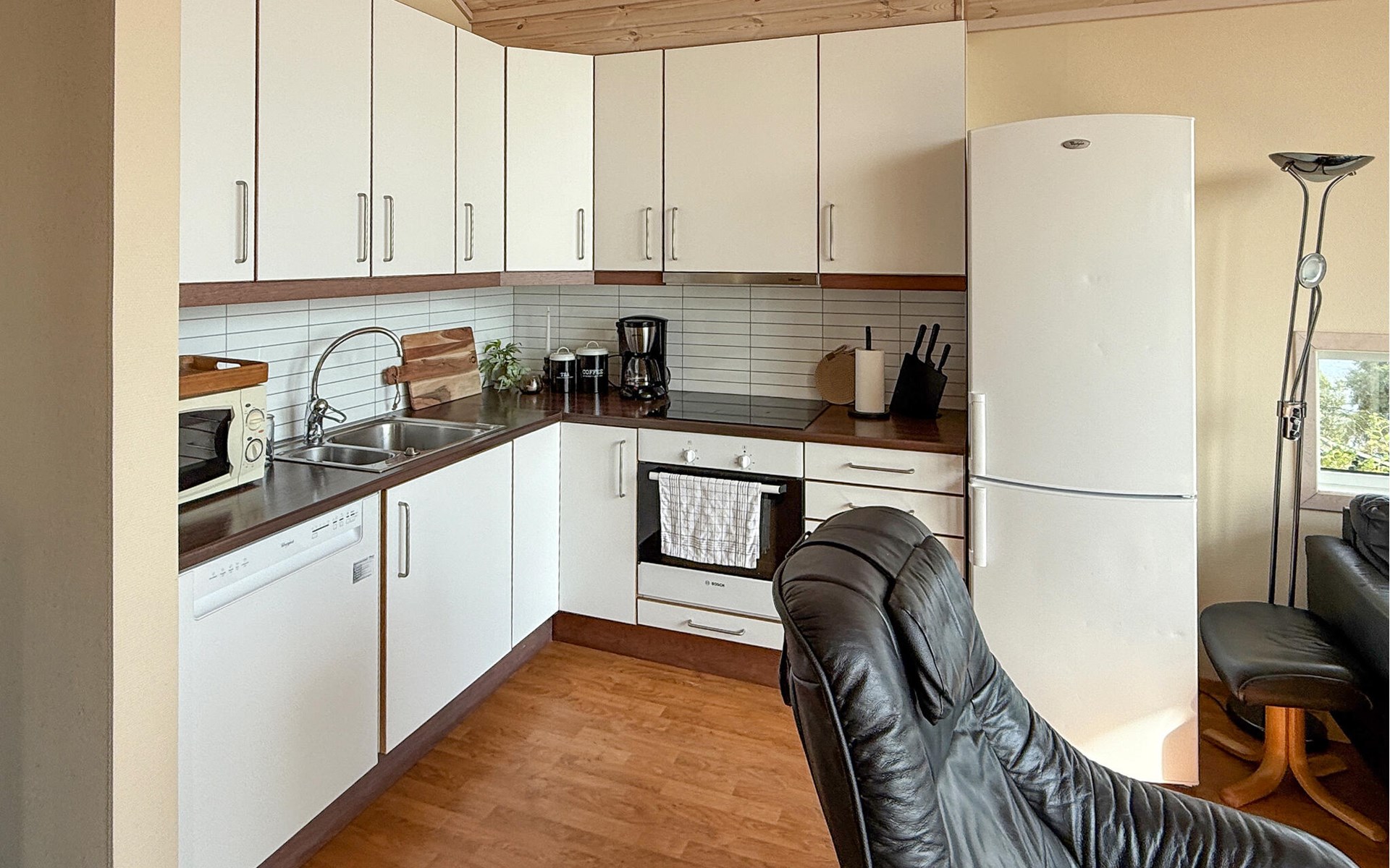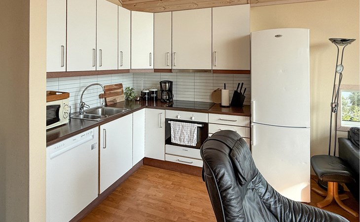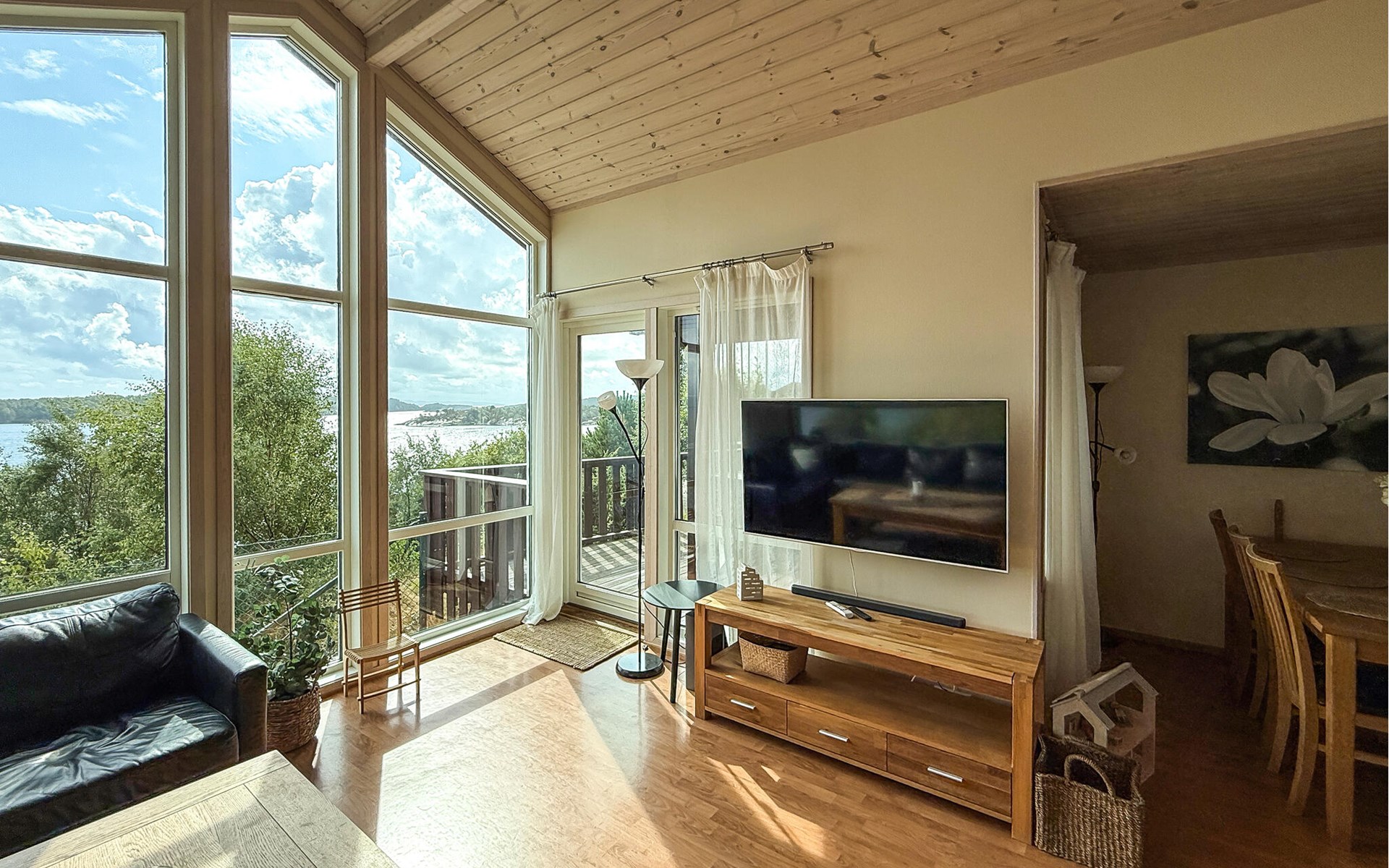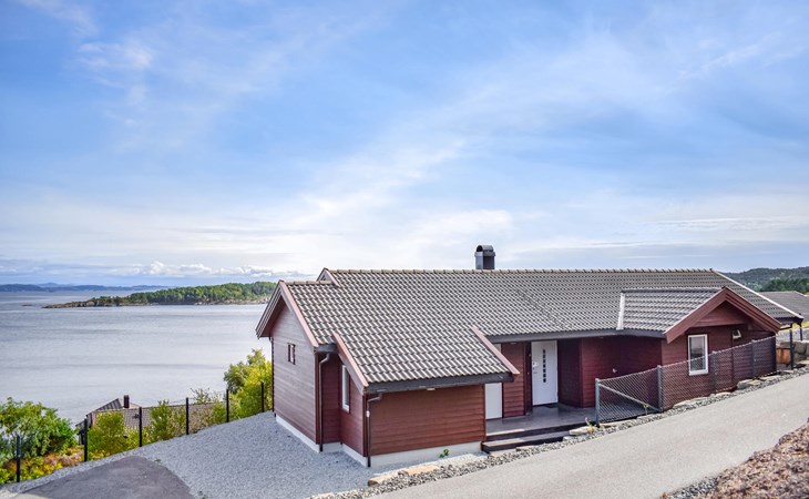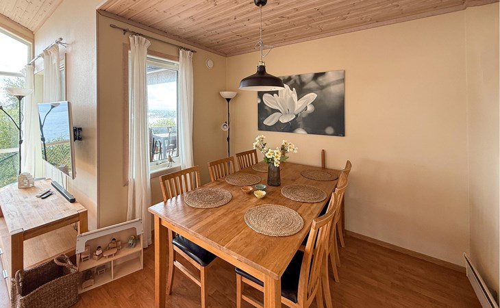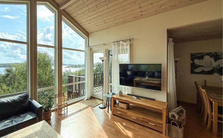 Dit idyllisch gelegen huis aan het fjord is het ideale toevluchtsoord voor een ontspannen onderbreking van het dagelijks leven. Geniet altijd van het uitzicht door de grote panoramische ramen terwijl je samen tijd doorbrengt op de comfortabele bank. Op koelere dagen kunt u de houtkachel aansteken of ontspannen in de gezellige warmte van de sauna.