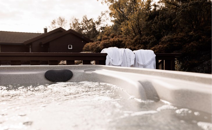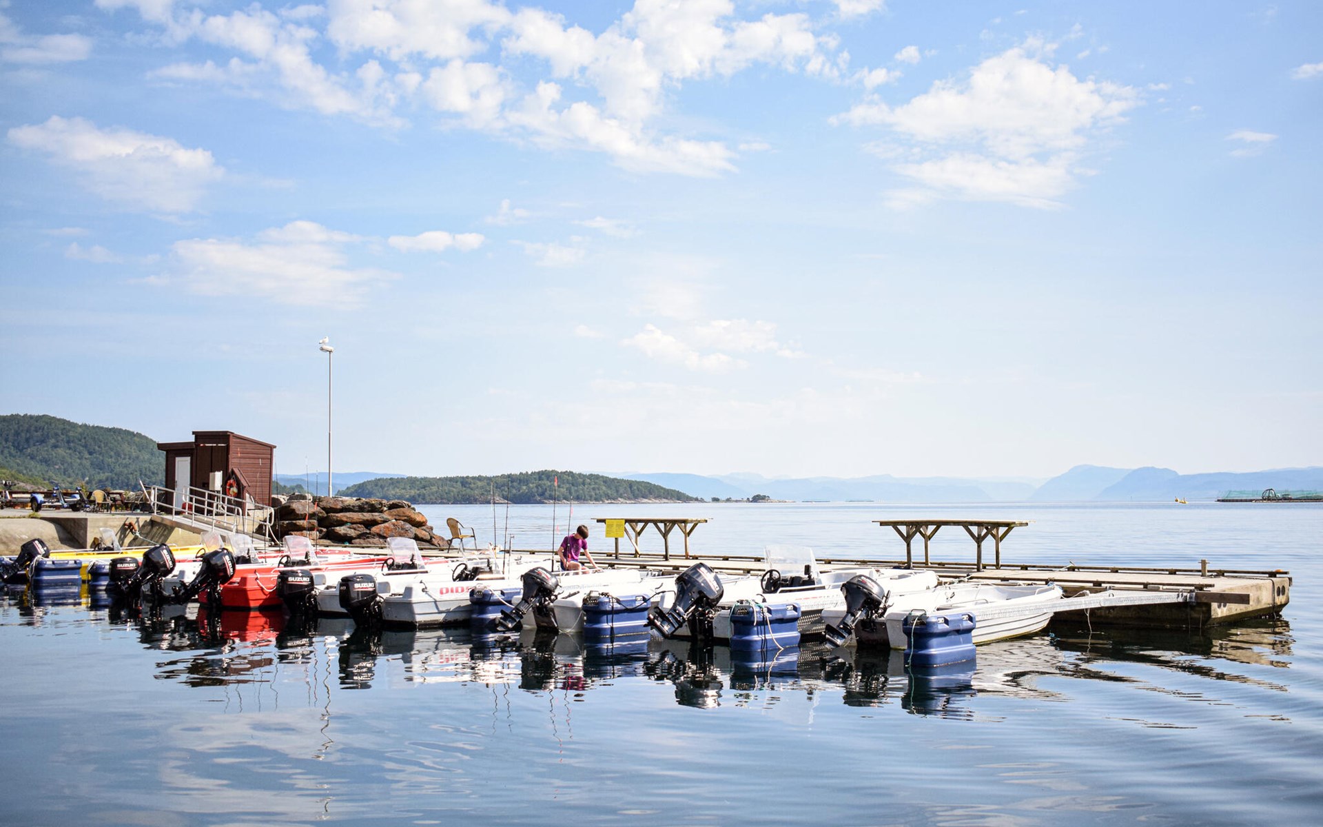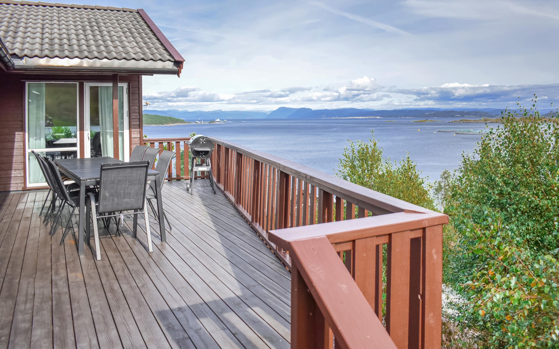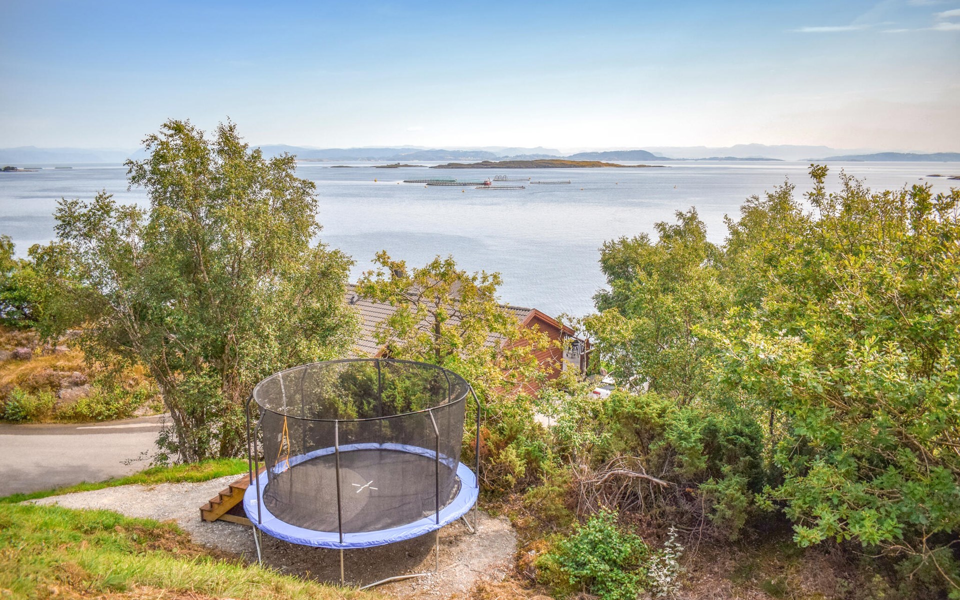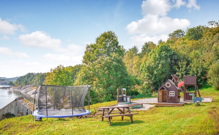 Stap 's ochtends naar buiten, geniet van het prachtige uitzicht op de uitgestrekte Skjoldafjord en spring in de whirlpool voor een verfrissende duik. Een korte wandeling brengt je naar de steiger, vanwaar je kunt gaan vissen of op ontdekkingstocht kunt door het rustige fjordenlandschap. Kinderen kunnen zich naar hartenlust uitleven op de trampoline en schommels.