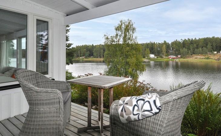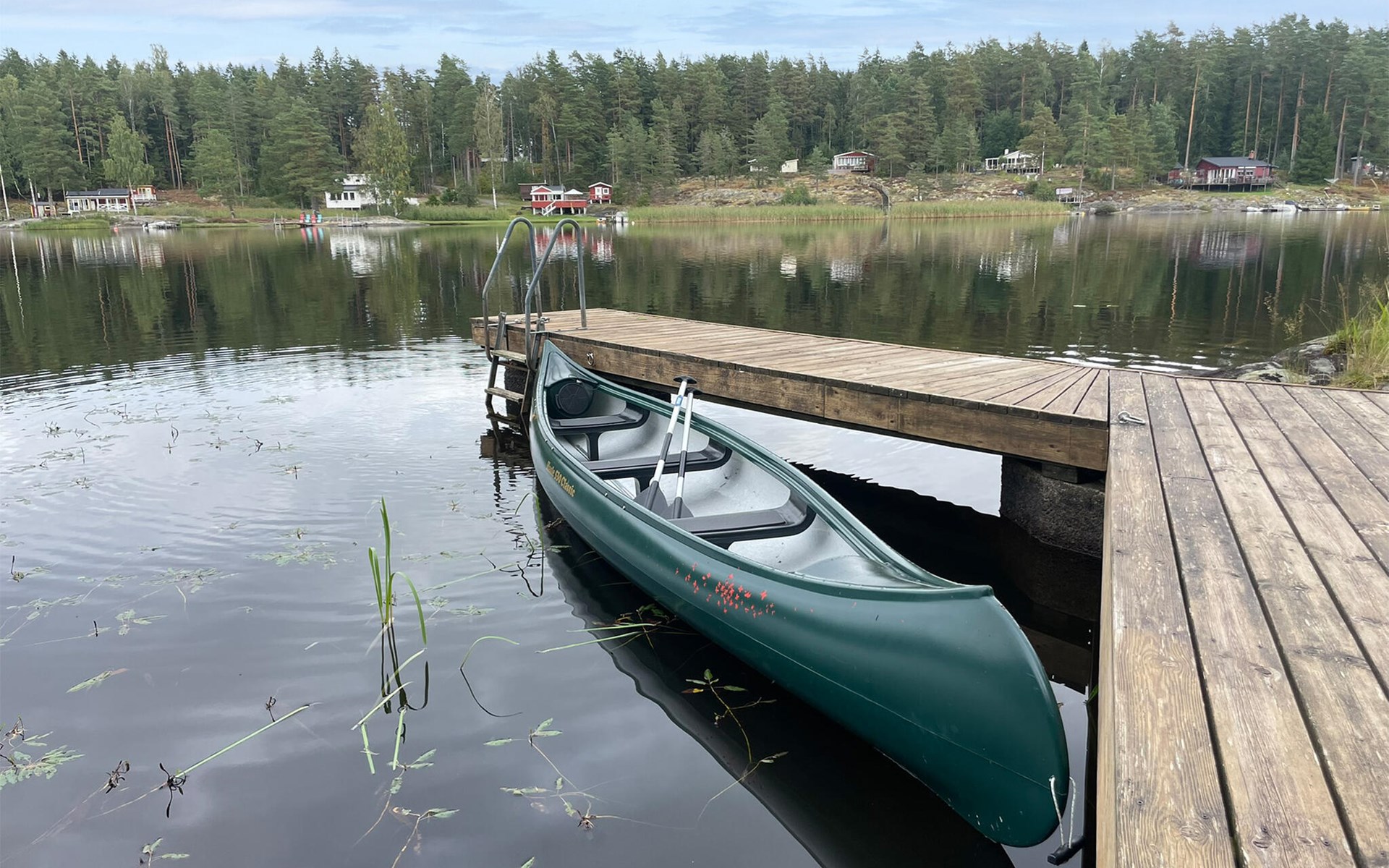 Stap uit op het prachtige terras en begin de dag met een ontbijt in de comfortabele zithoek. Ontspan in de schaduw van de overdekte veranda of gebruik de privésteiger en de kano om het meer te verkennen of geniet van de rust van de natuur tijdens het vissen.