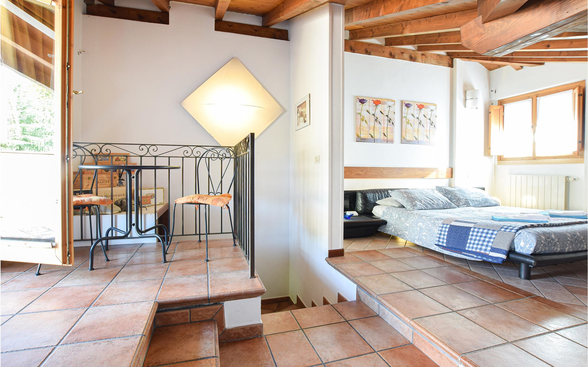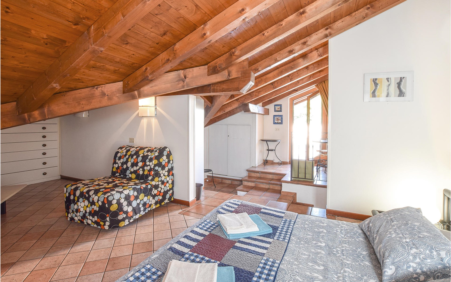 Dit vakantiehuis biedt veel ruimte voor een vakantie met een groot gezin of vrienden en uw huisdier. Binnen biedt het huis veel lichtinval door de grote vensterpuien en een gezellig interieur. Het woon- en slaapgedeelte is verdeeld over meerdere verdiepingen en is bereikbaar via een trap. Sommige slaapkamers op de bovenverdieping hebben schuine plafonds, waardoor de plafondhoogte hier lager is.