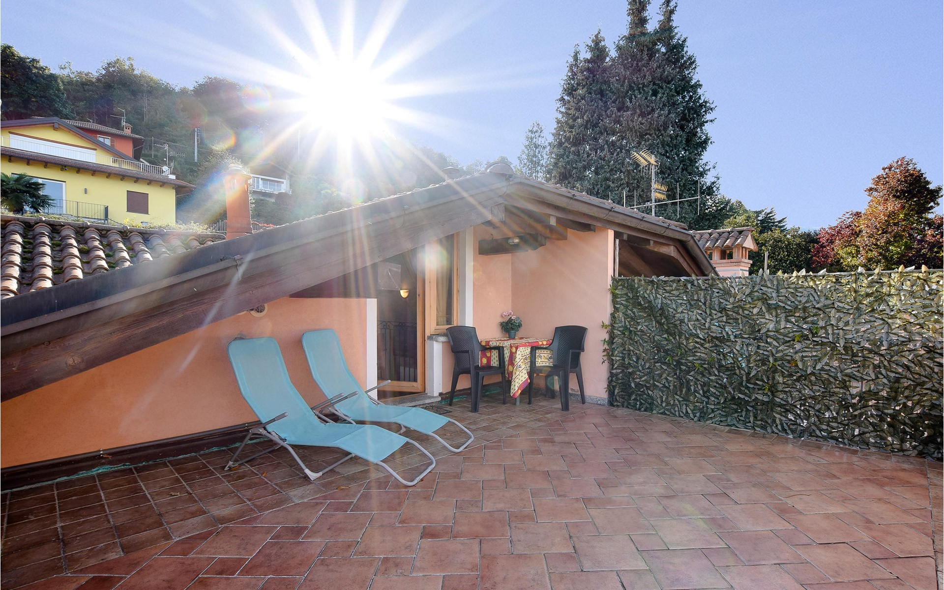 Ontspan buiten op het terras met tuinmeubilair terwijl de kinderen en uw huisdier veilig spelen in de omheinde tuin.