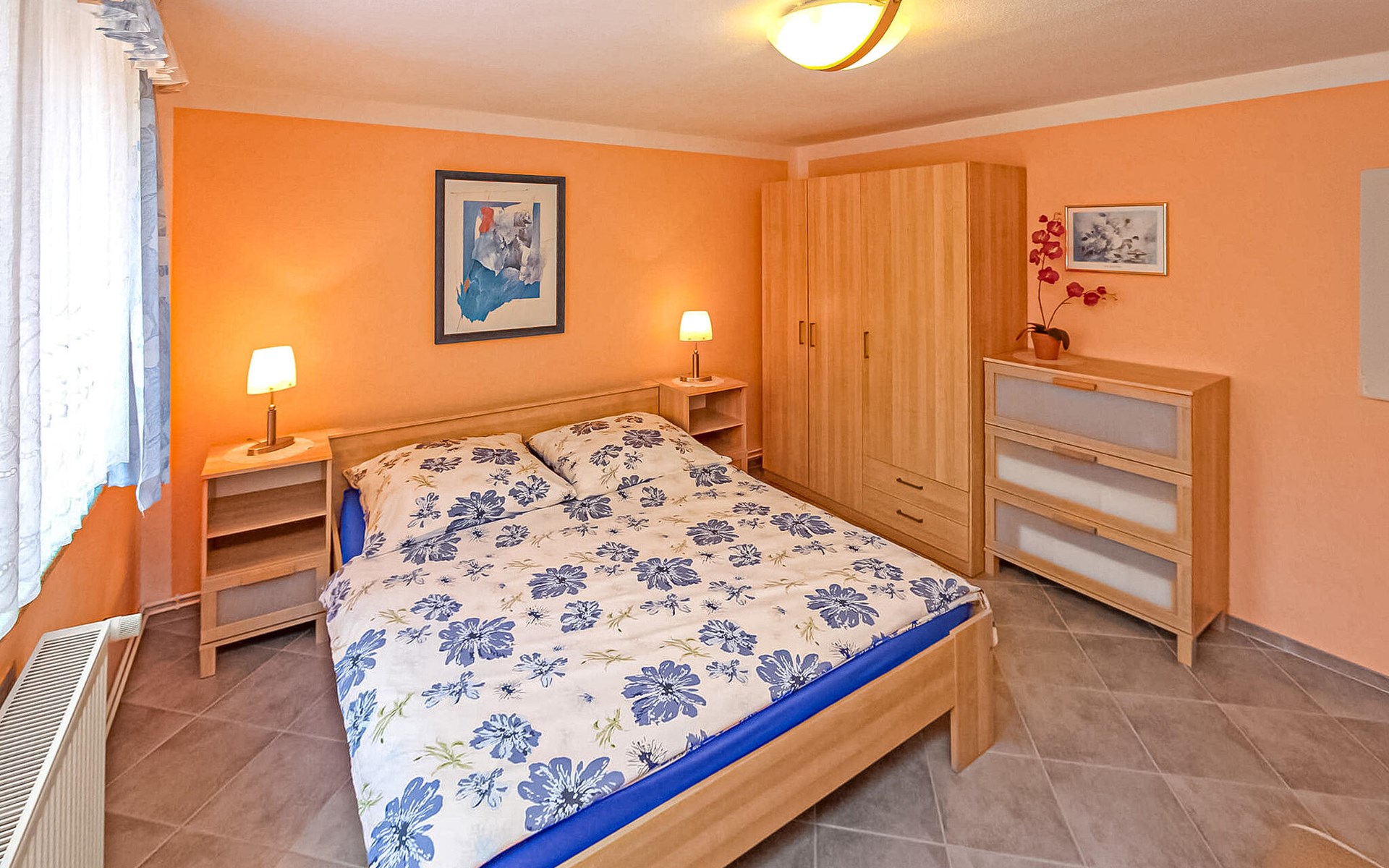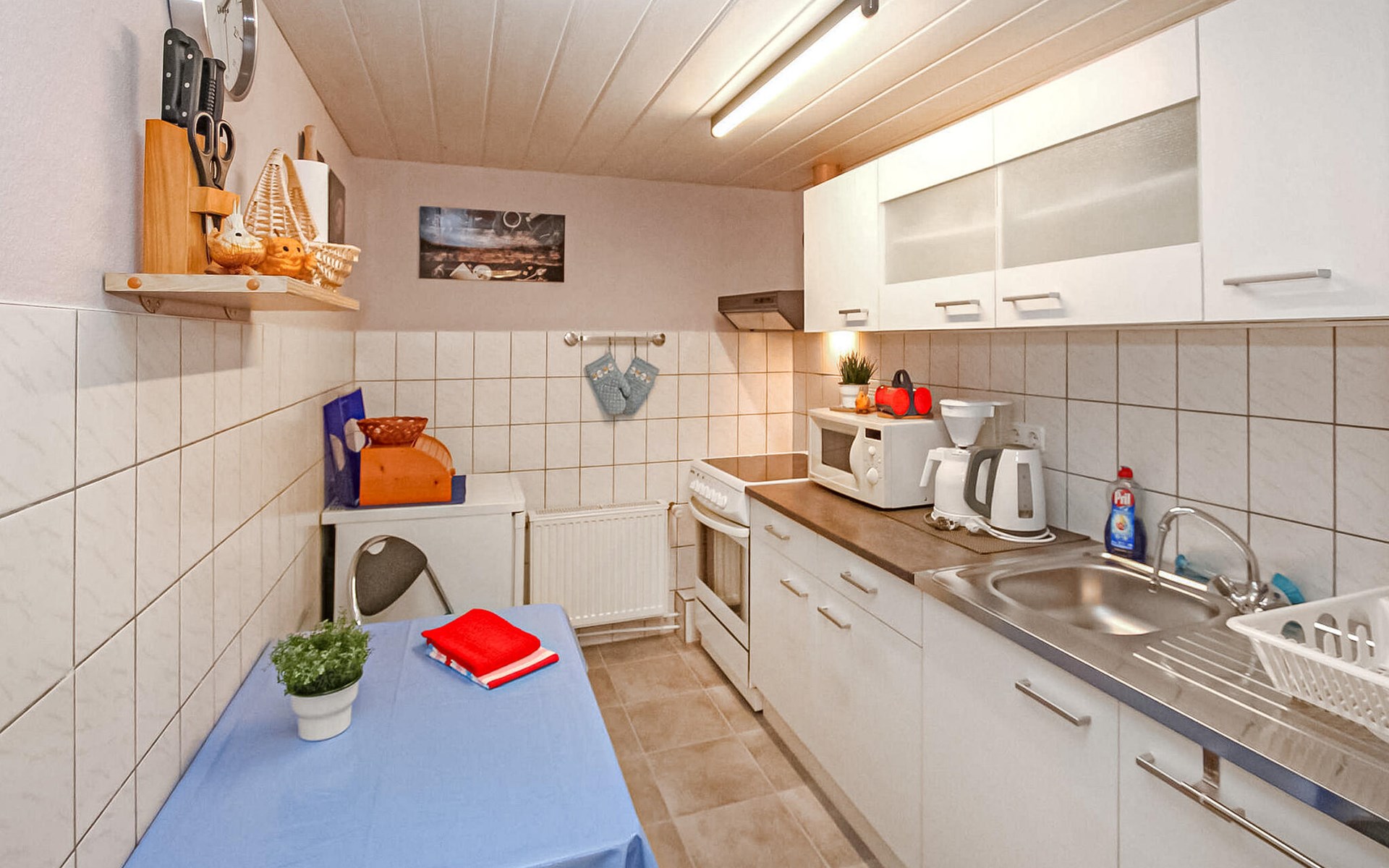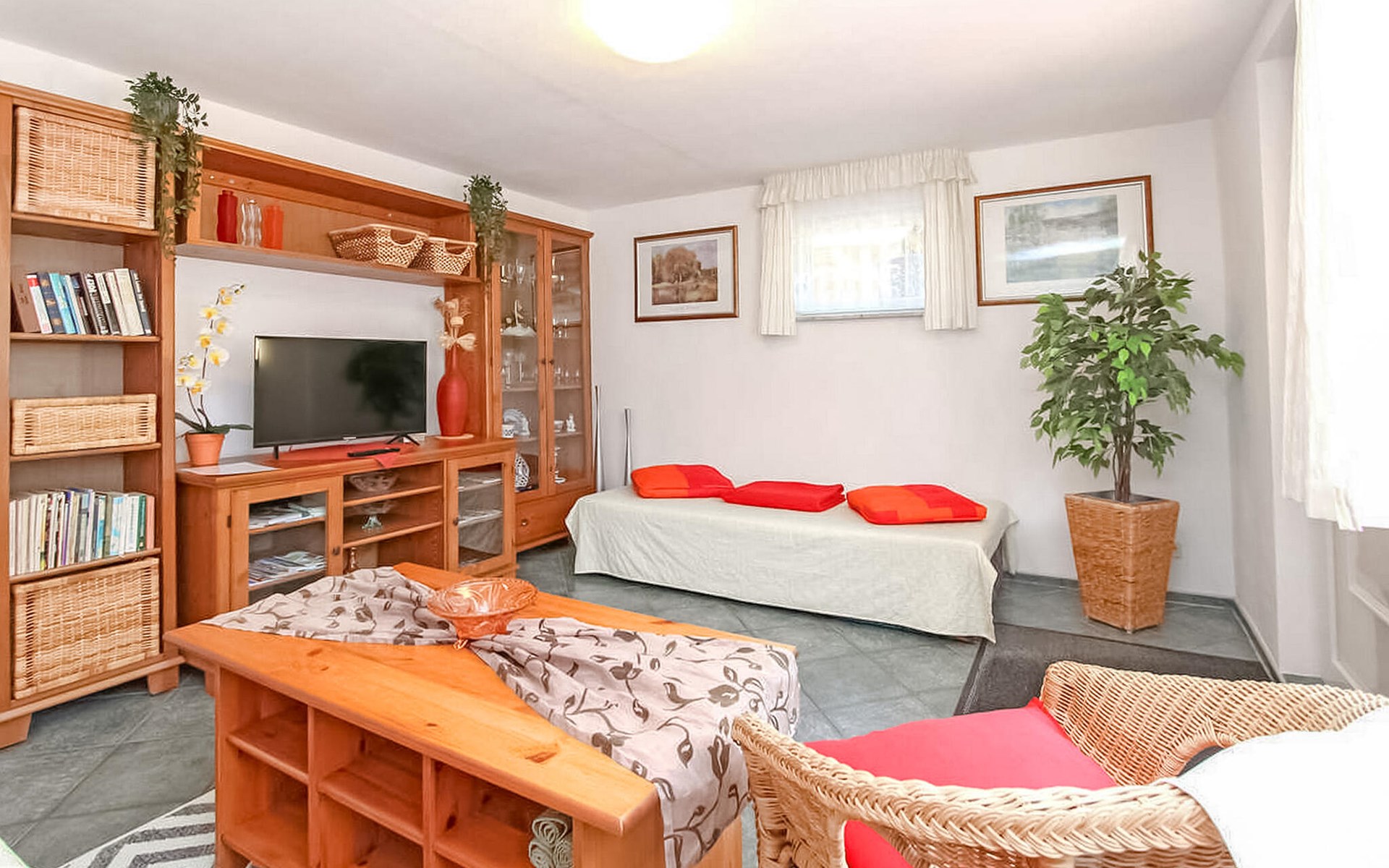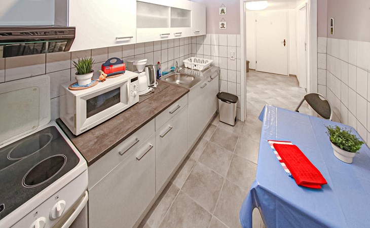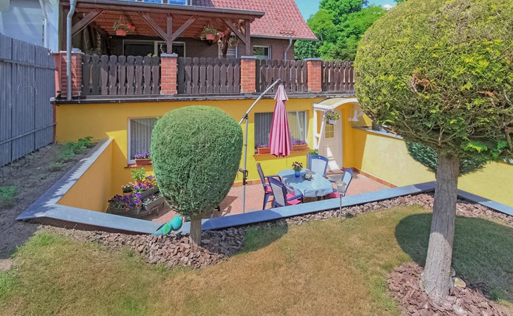 De vakantiewoning bevindt zich apart in de kelder van een woongebouw op het 1200 vierkante meter grote, goed onderhouden woonhuis van de eigenaar op een centrale locatie, ca. 400 m van de Fleesensee. Ca. 1,5 km naar het openbare zwembad Fleesensee. Restaurants en winkels in een straal van ca. 200 m. De vakantiewoning is voorzien van: Woonkamer (gestoffeerde meubels, zithoek, tv, radio, slaapbank), slaapkamer (tweepersoonsbed, slaapbank), keuken (elektrisch fornuis met oven, koelkast met vriesvak, magnetron, eettafel, divers keukengerei), douche/toilet, centrale verwarming, gemeubileerd terras, barbecue, fietsenstalling en parkeerplaats, eindschoonmaak, beddengoed, handdoeken, energie en water zijn bij de totale prijs inbegrepen. Ter plaatse te betalen: Toeristenbelasting, W-LAN 5 EUR/week, oplaadpunt e-bike 1,50 EUR/dag en fiets.