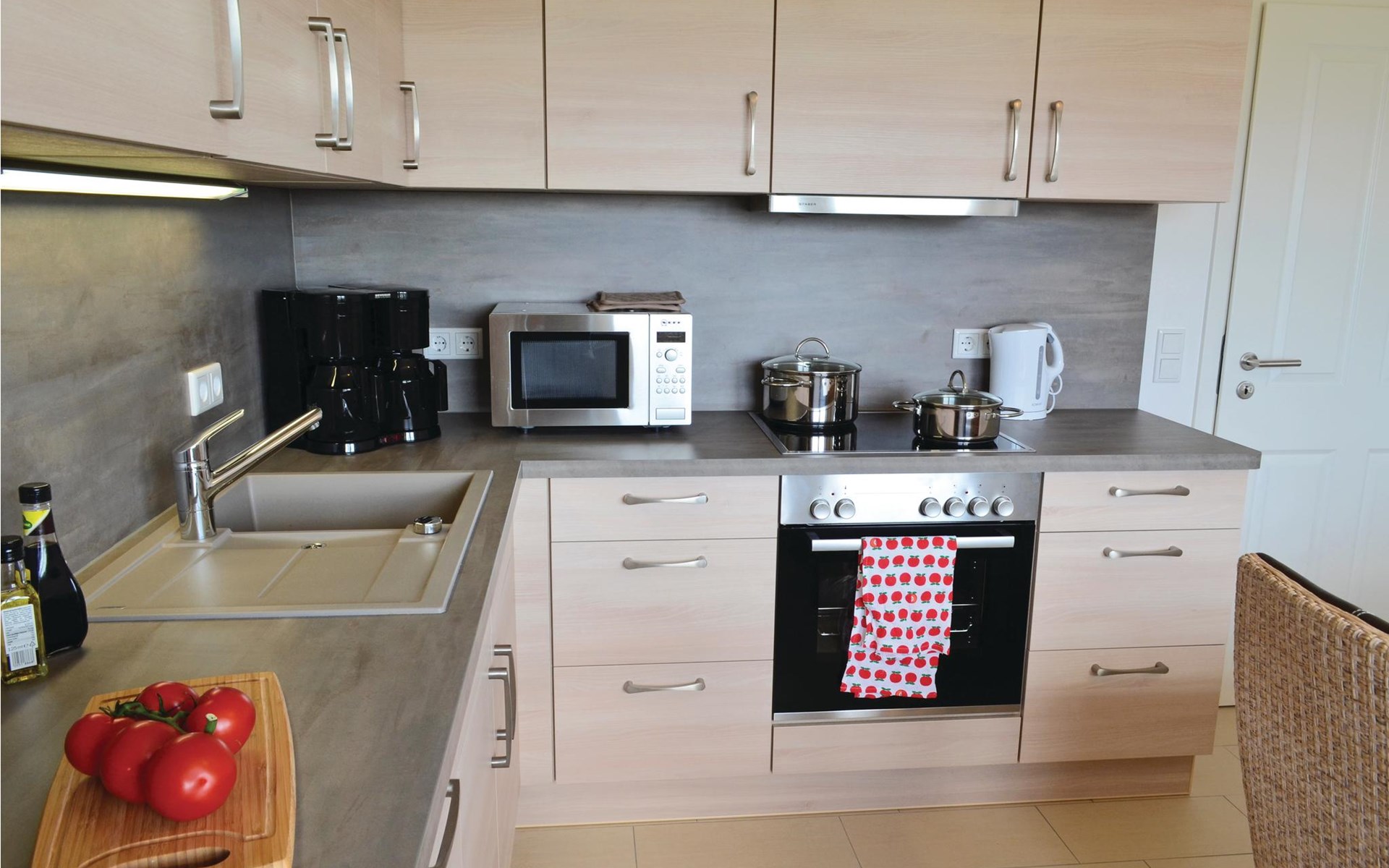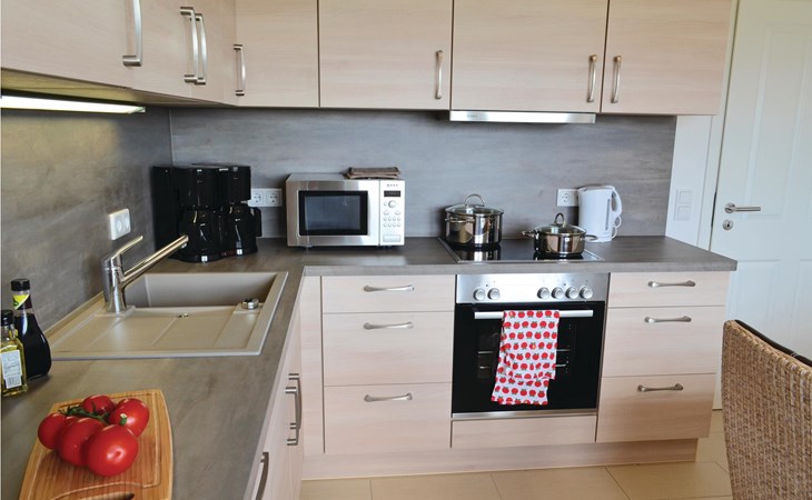 In de winter kun je na lange wandelingen opwarmen in de privésauna met een fantastisch uitzicht over het platteland. De aparte keuken is modern en volledig uitgerust. Hier kun je gemakkelijk voor 12 personen koken, en dankzij de vaatwasser hoeft niemand zich zorgen te maken over de afwas.