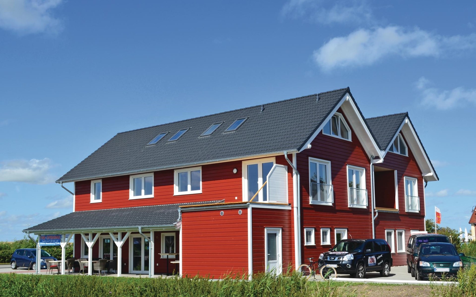 Er is een restaurant op de begane grond van het huis - als je geen zin hebt om zelf te koken, ga je gewoon naar beneden en laat je anderen voor je koken! Het restaurant heeft ook een klein buitenterras aan dezelfde kant als het balkon van de vakantiewoning en slaapkamers 2 - 5.