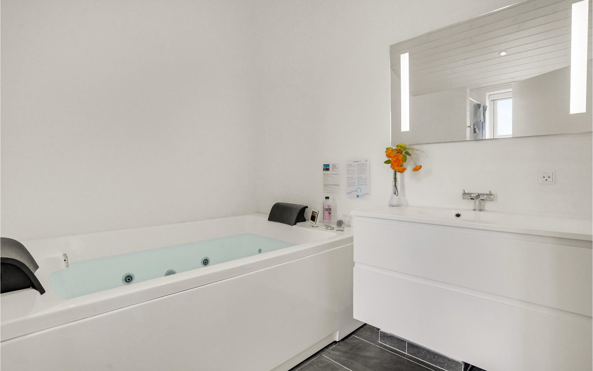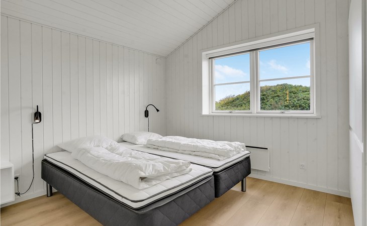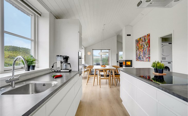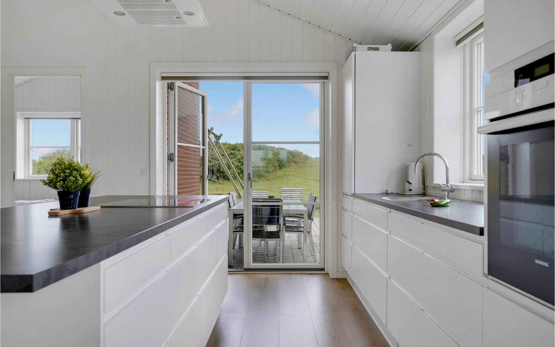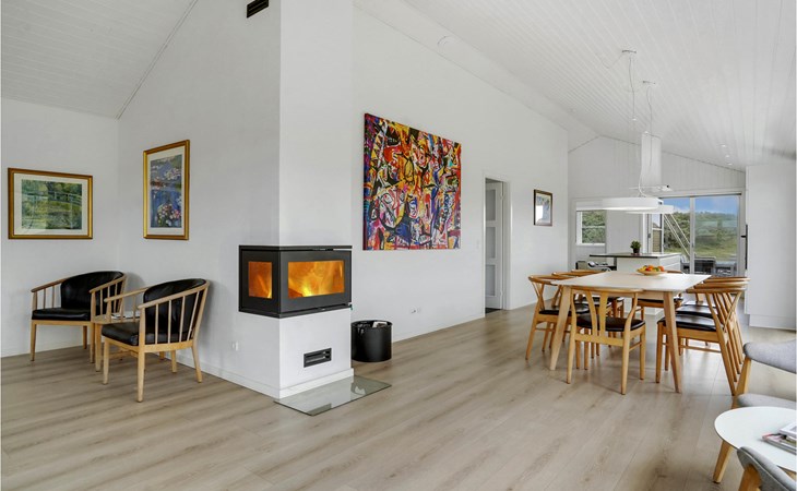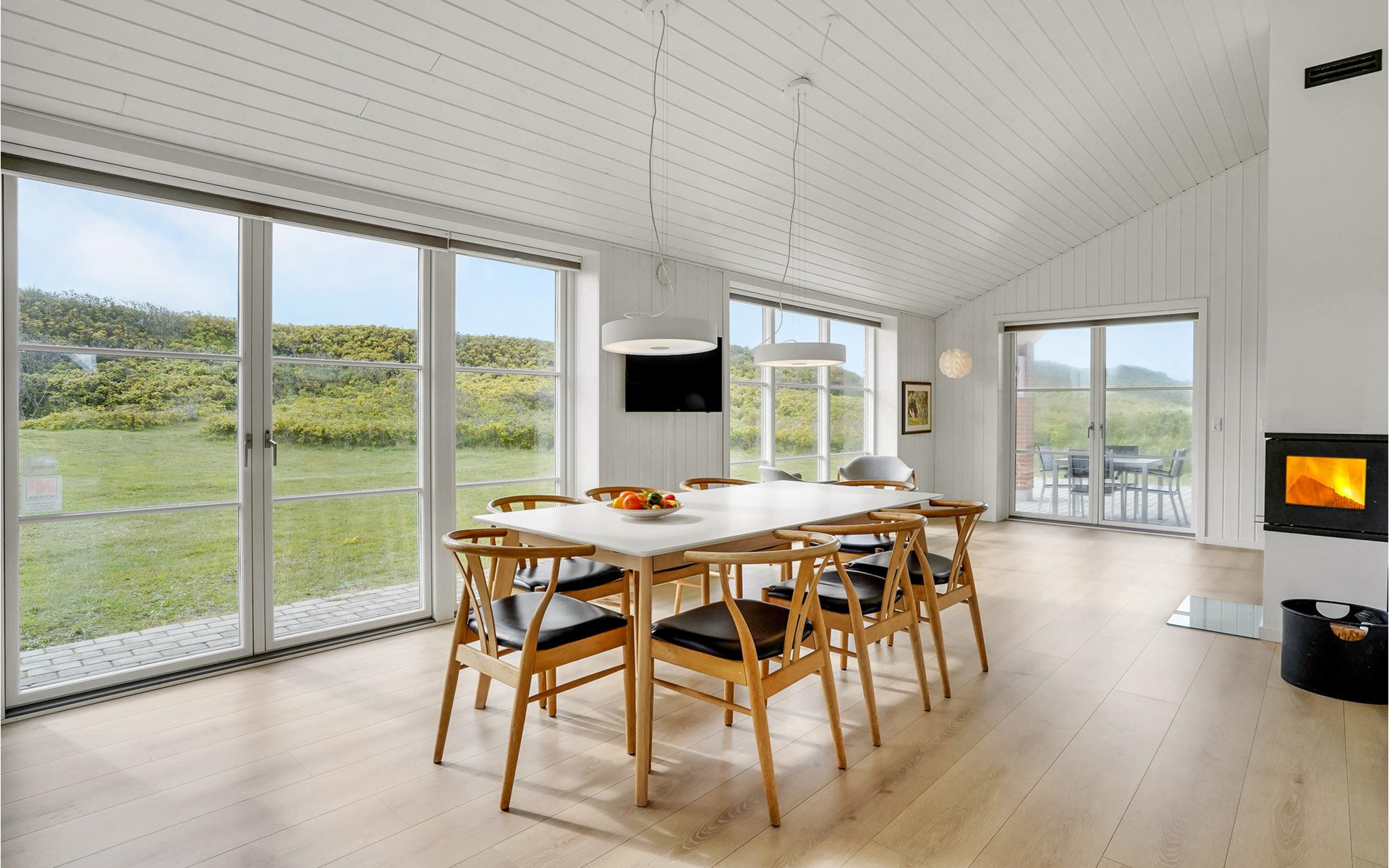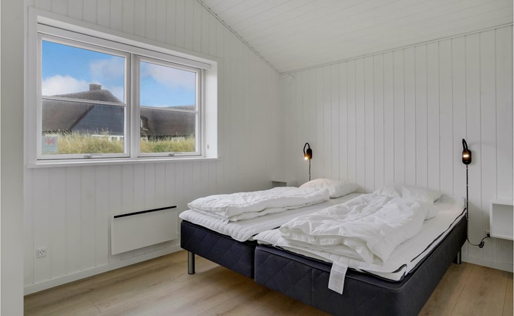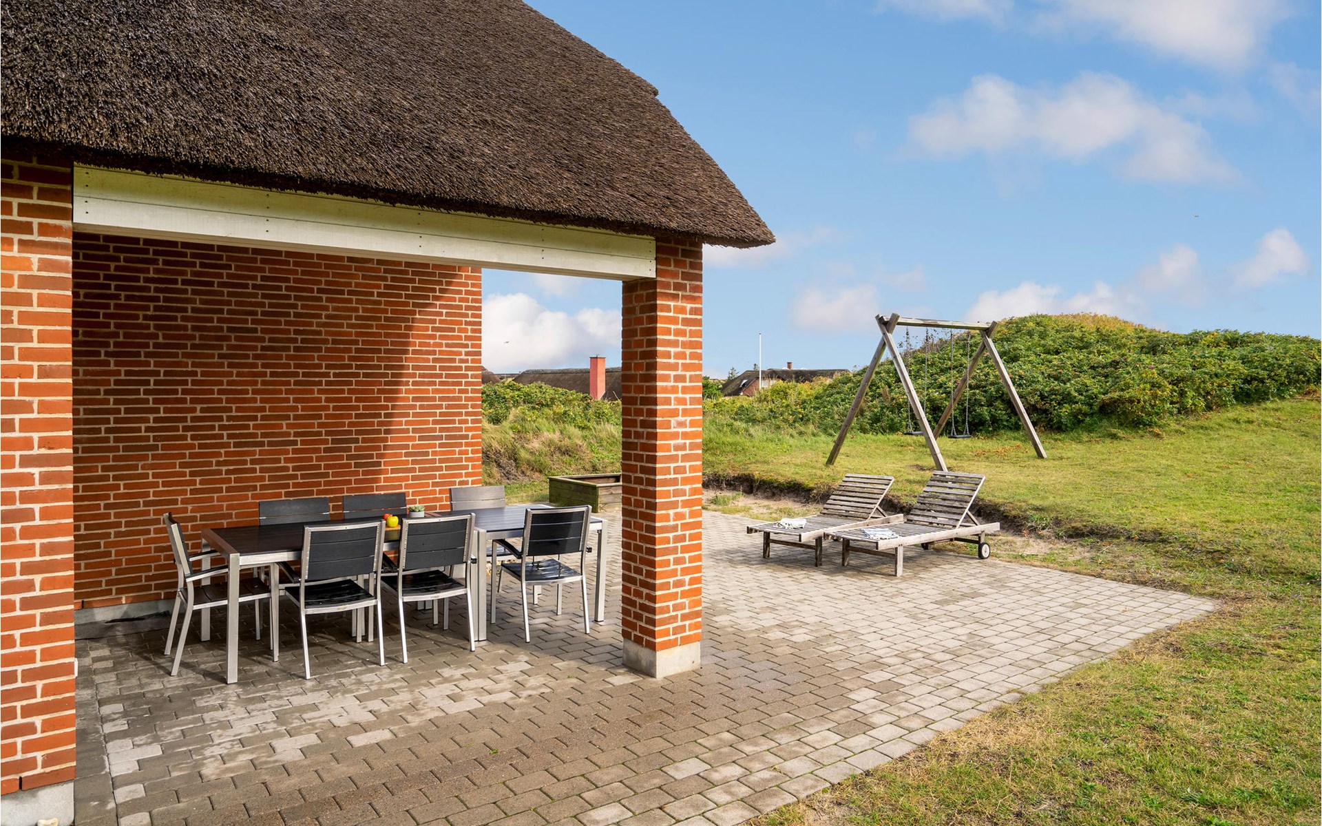 Fantastisch luxe vakantiehuis waarbij door en door aan kwaliteit en design is gedacht. Afgewerkt in het seizoen 2018. Het is een stenen huis met een rieten dak en ligt op een van de mooiste percelen van Blåvand, net achter de duinen en met de Noordzee als buur. Het lichte huis biedt een fantastisch uitzicht op de duinen direct buiten het raam vanuit de woonkamer met open keuken. De open haard zorgt voor de juiste vakantiesfeer met drie glazen zijden. Het huis heeft drie badkamers, waarvan één met directe toegang tot de ene slaapkamer. Buiten heeft u verschillende mooie terrassen tot uw beschikking, zowel open als overdekt.