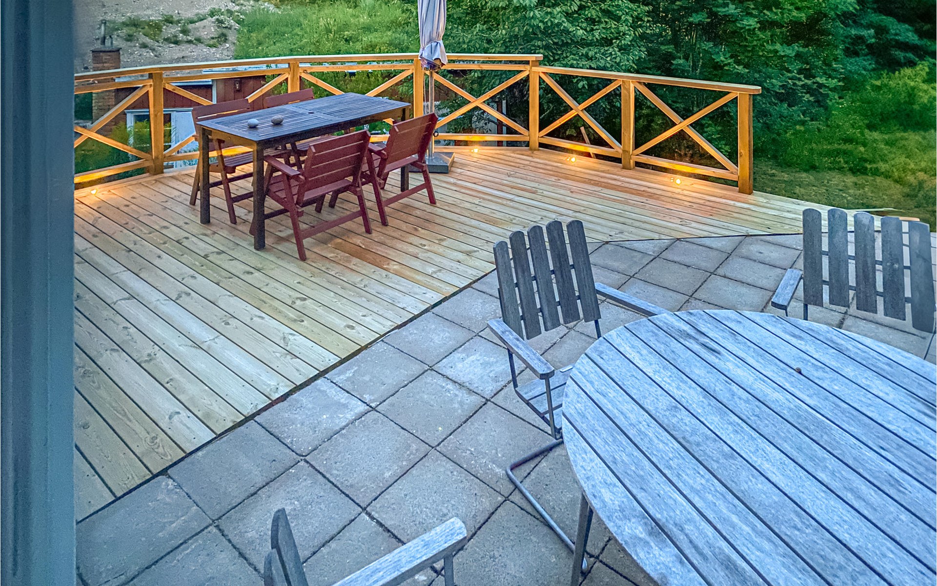 De natuurlijke idylle aan de oevers van het Sommenmeer biedt je niet alleen een schilderachtige achtergrond, maar ook talloze mogelijkheden voor ontspannende dagen in de natuur. Begin je ochtend met een kopje koffie op het ruime terras terwijl je geniet van het panoramische uitzicht op het betoverende meer, dat een vredige rust uitstraalt. Of neem een verfrissende duik direct vanaf je eigen aanlegsteiger. Profiteer van de charmante keuken in oudere stijl om samen te koken en te dineren aan de eettafel met uitzicht op het meer. De ruime buitenruimte van het huis nodigt je uit om actief te ontspannen. Leef je uit op het grote natuurperceel met vele speelmogelijkheden. Speel samen een spelletje Kubb of beproef je geluk bij het vissen met een boottochtje op het meer. De terrassen bieden de ideale setting voor barbecues of gewoon om te genieten van de rust van de natuur.