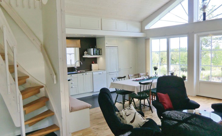 Dit mooie en bijzondere Smålandse vakantiehuis ligt in Vetlanda. Het is een ruim huis met een open plattegrond en hoge plafonds. Buiten zijn er heerlijke plekken waar u in alle rust kunt eten.