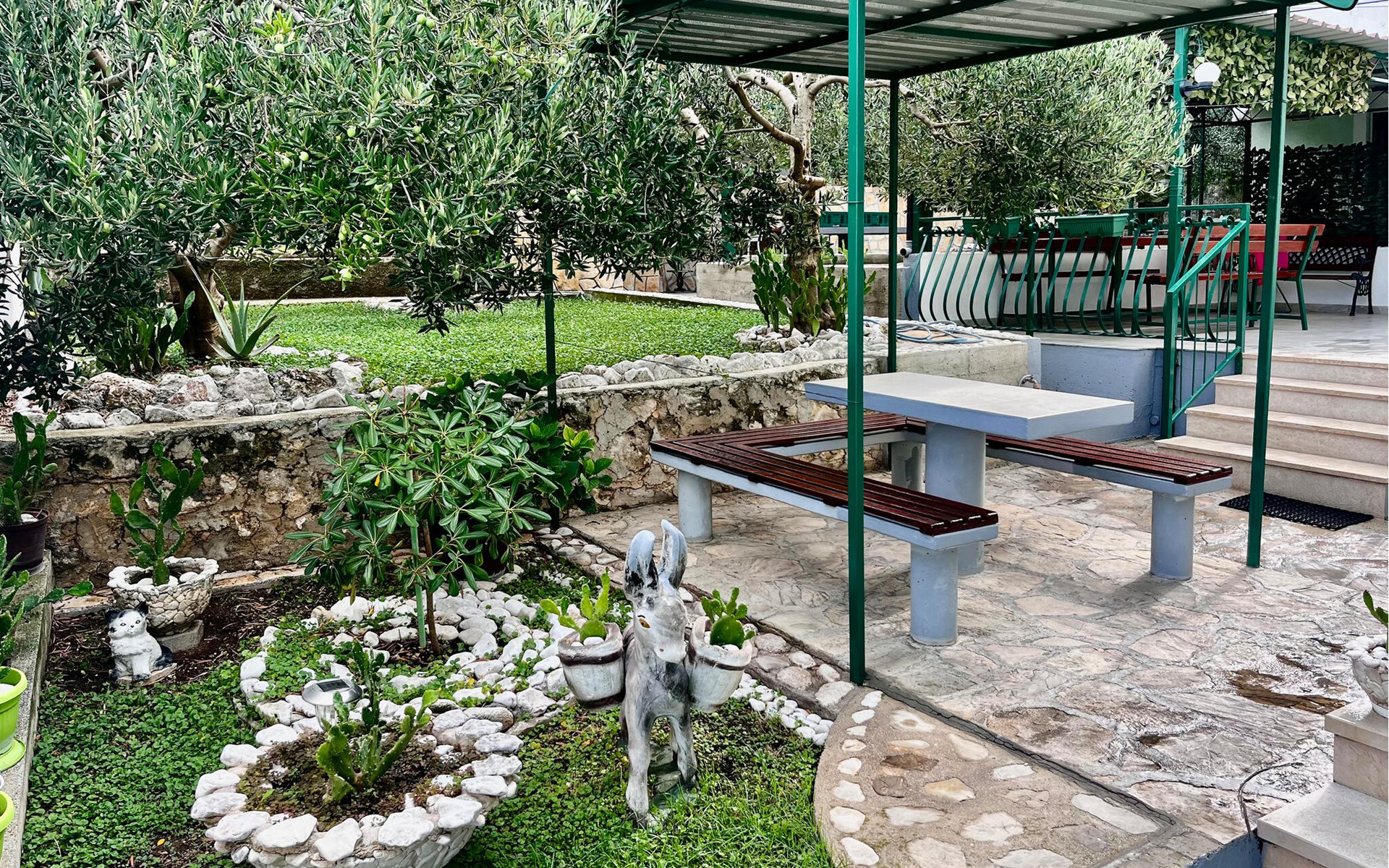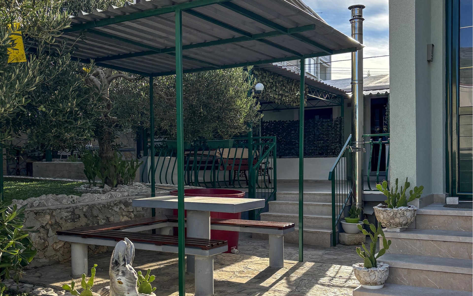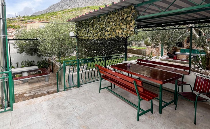 Stap op het overdekte balkon en geniet van het weidse uitzicht over de daken naar de glinsterende zee. Nip van je ochtendkoffie in de zachte zeebries of sluit de dag af met een glas wijn. Je vindt schaduwrijke plekjes in de liefdevol aangelegde tuin met olijfbomen en stenen muren. Gebruik het terras met zitjes en de gemetselde barbecue voor gezellige uurtjes in de buitenlucht.